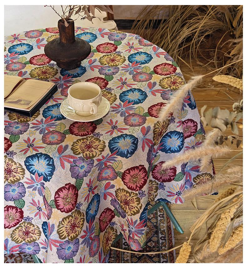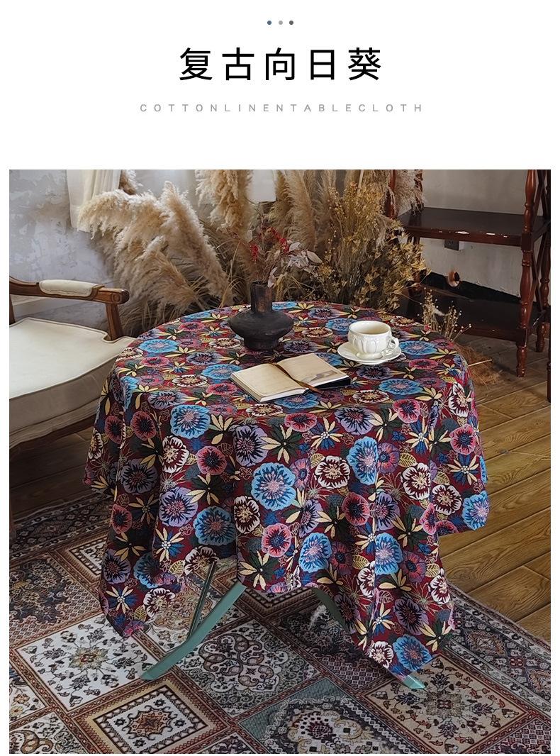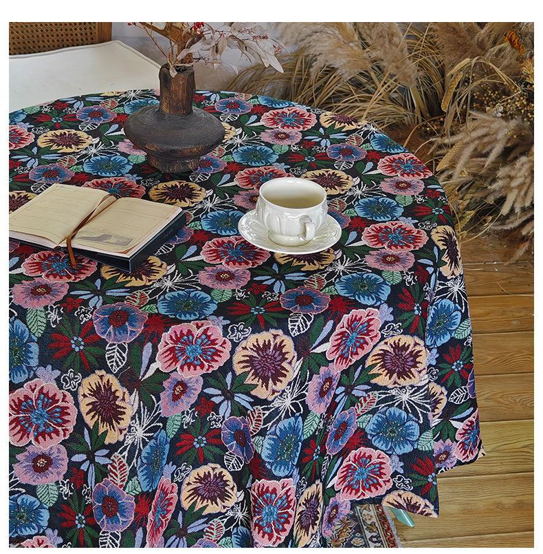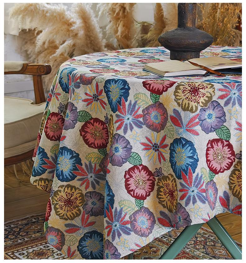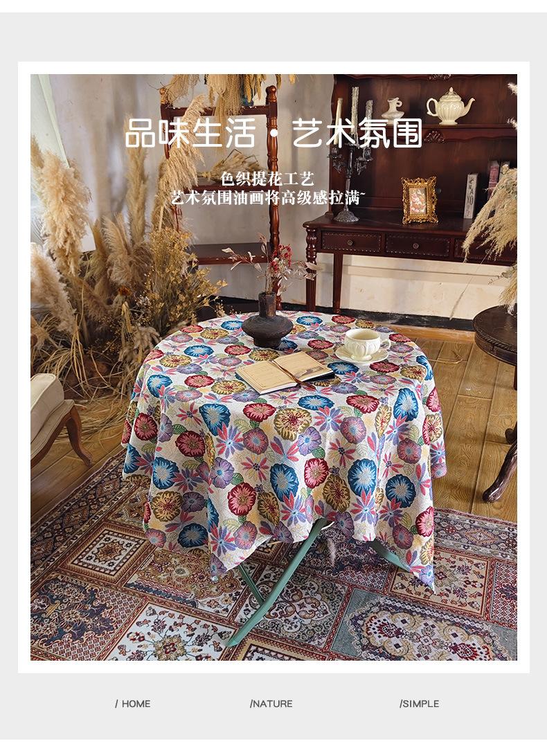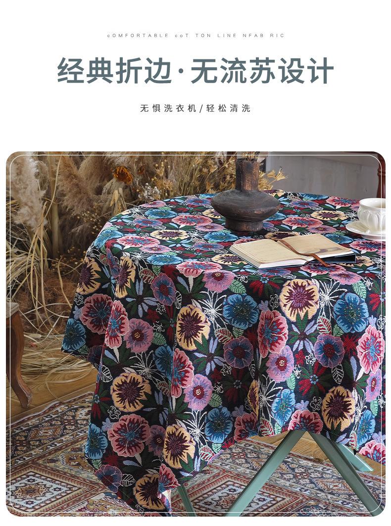 Mantel de Tela Retro Americano Cuadrado Mesa Redonda Cubierta de Mesa de Café Tela Estilo Pastoral Floral Grande Mantel Largo para Mesa de Comedor Tela Cubierta para el Hogar