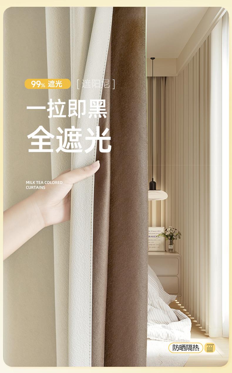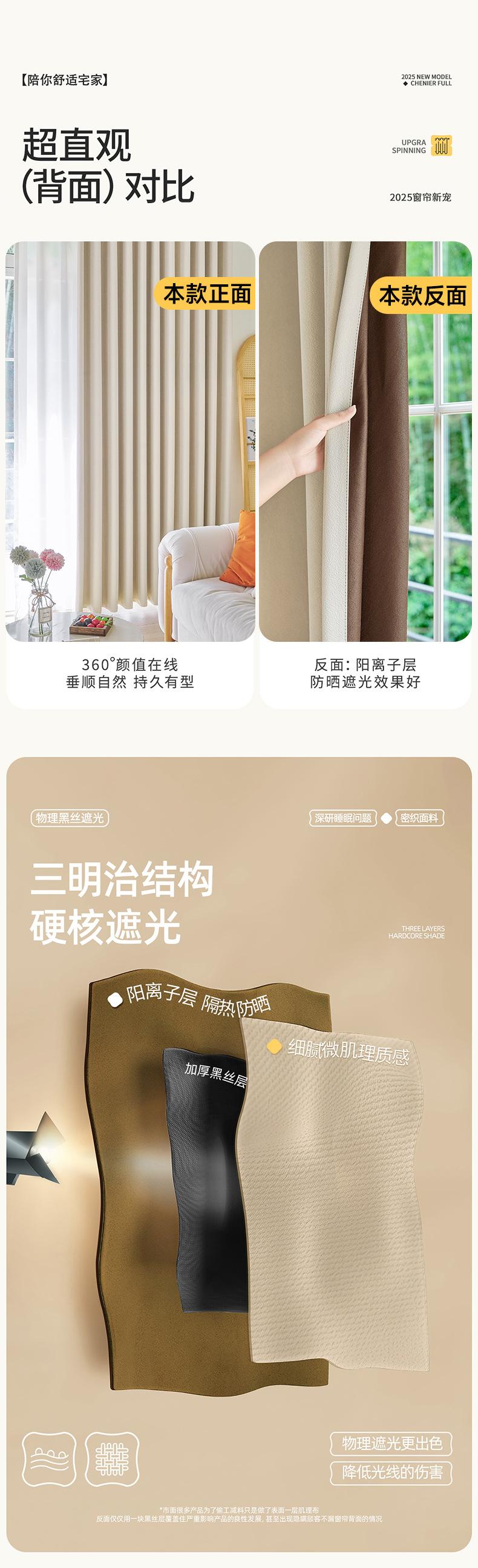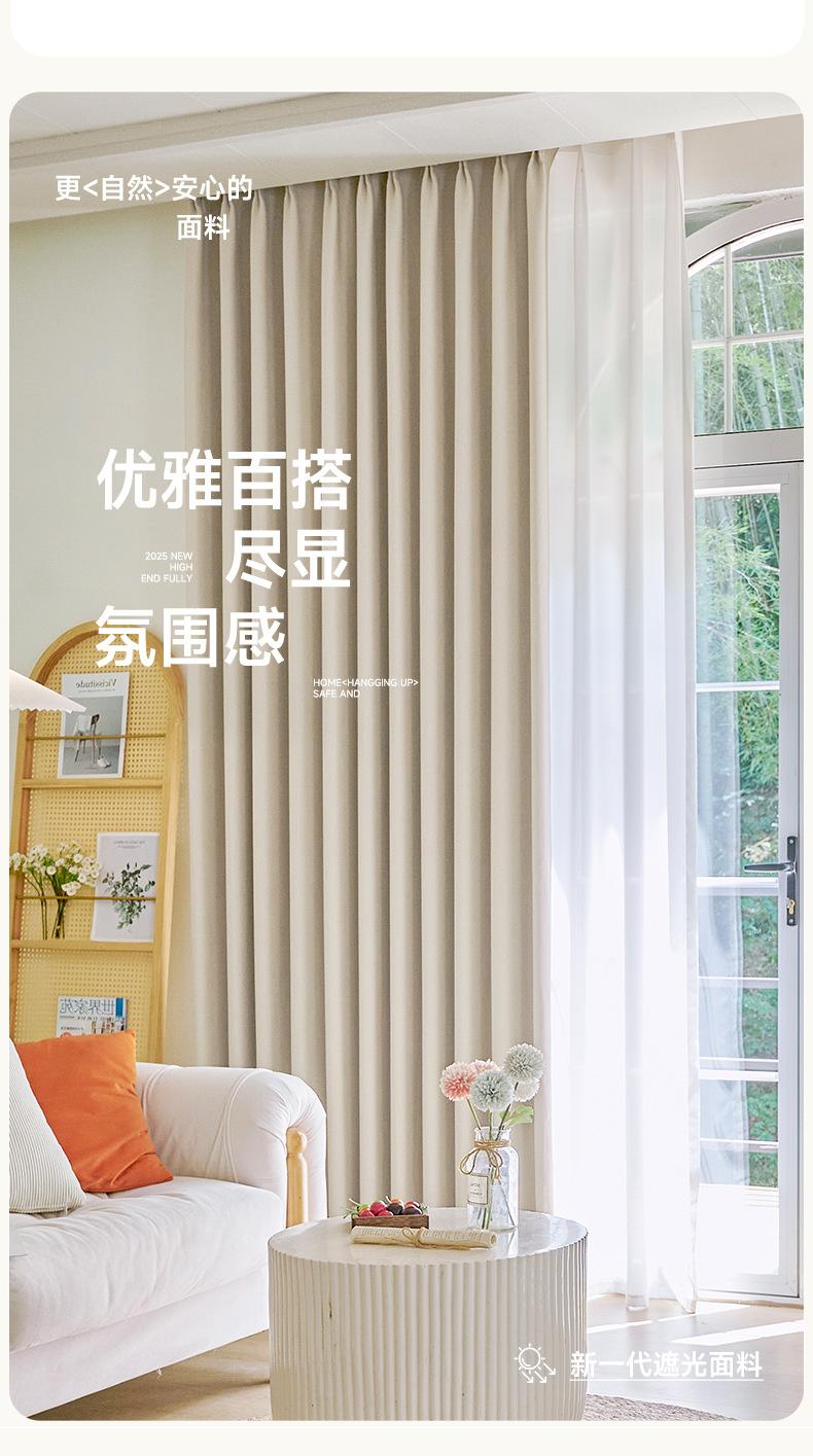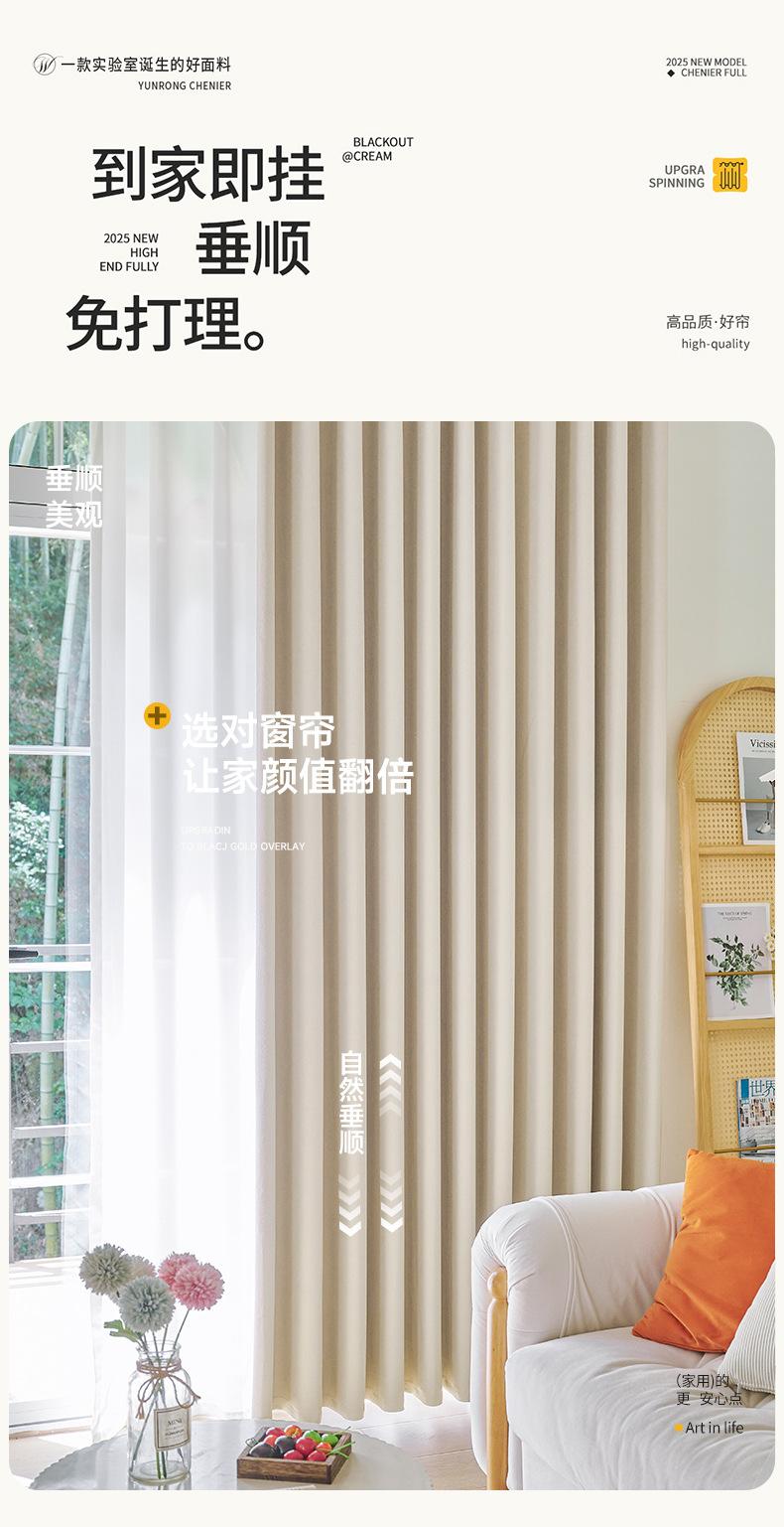 Cortinas de Chenilla Shaoxing Producto Terminado Blackout Sala de Estar Dormitorio de Alta Gama Minimalista Estilo Crema Protección Solar Cortinas Keqiao