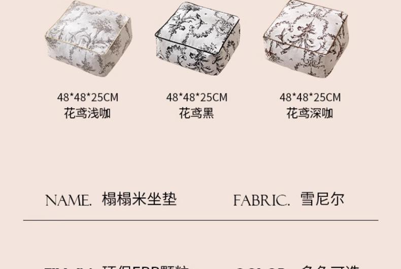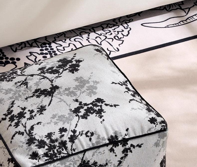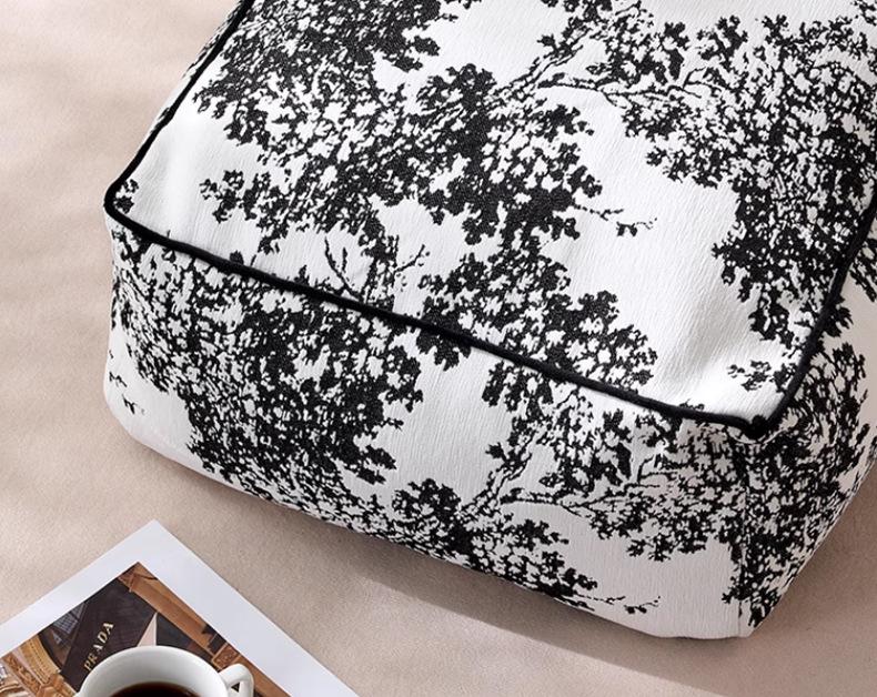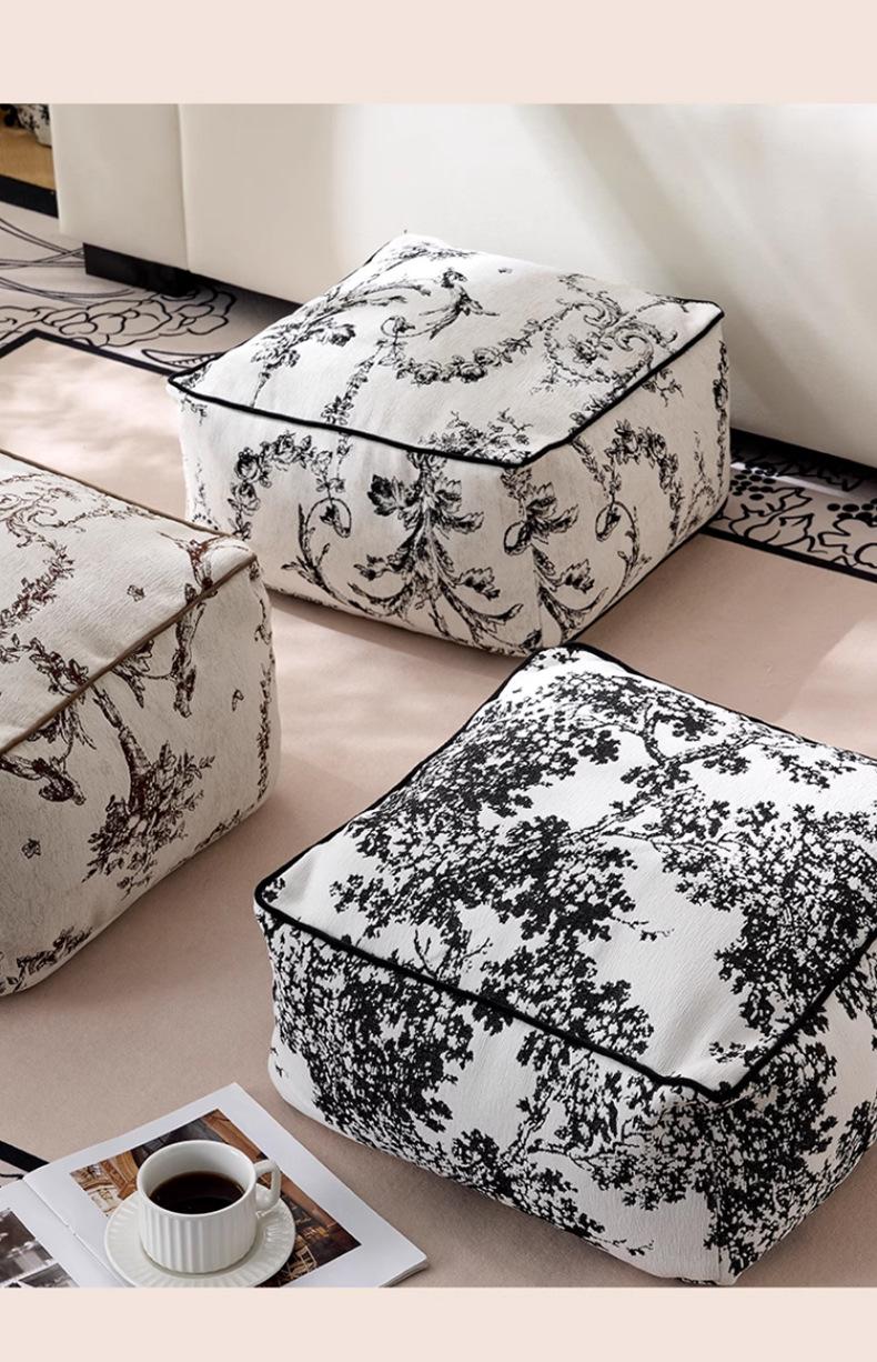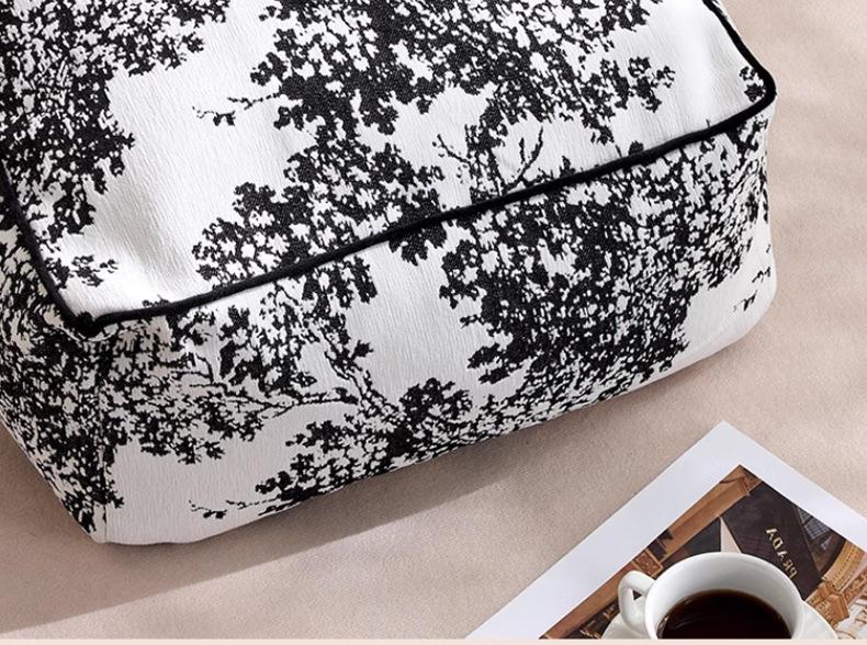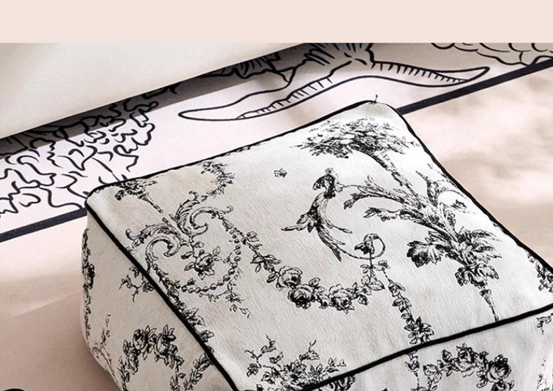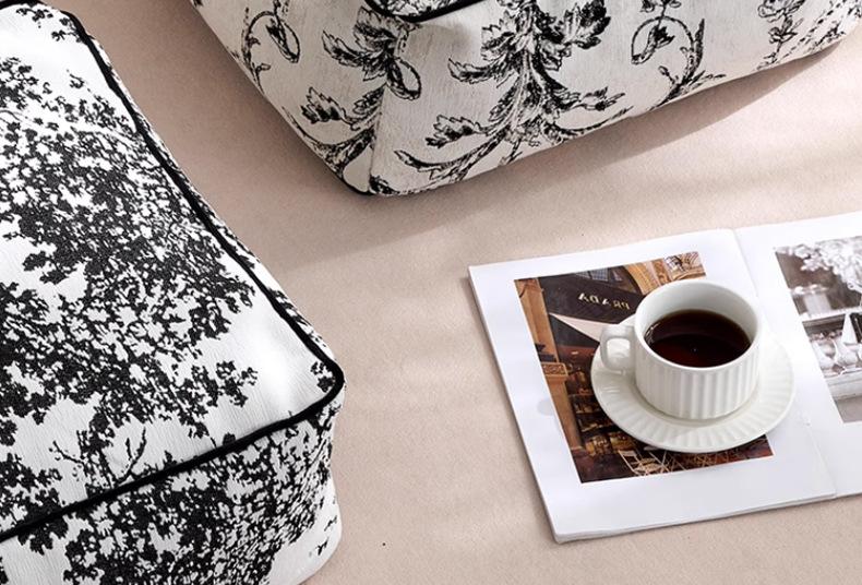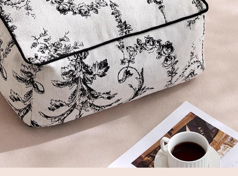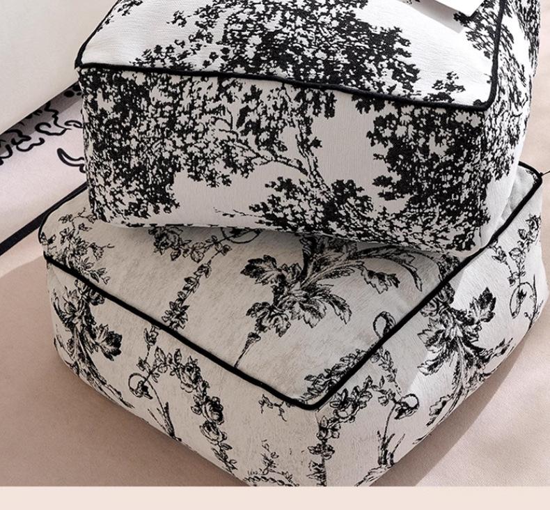 Futón Retro Francés Blanco y Negro Cojín de Asiento Extraíble y Lavable Cojín Perezoso Balcón Dormitorio Tatami