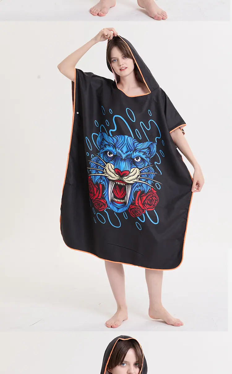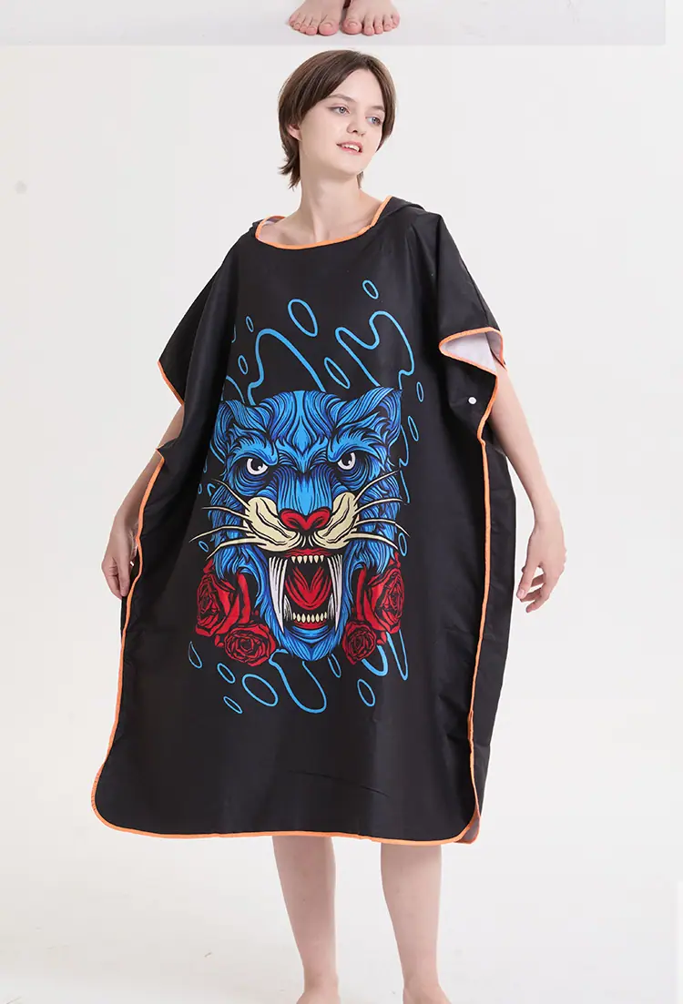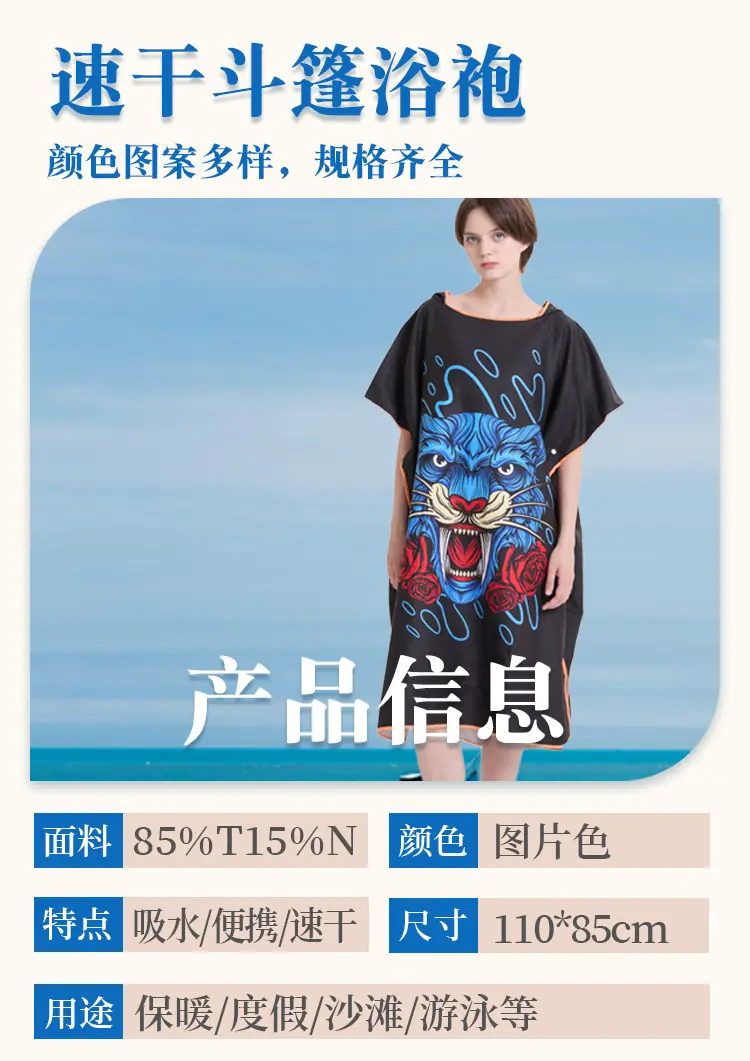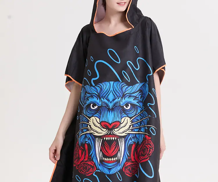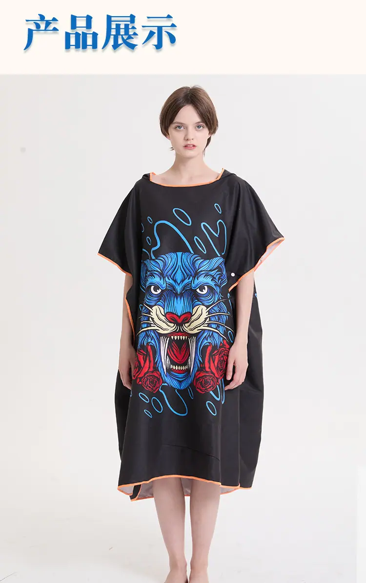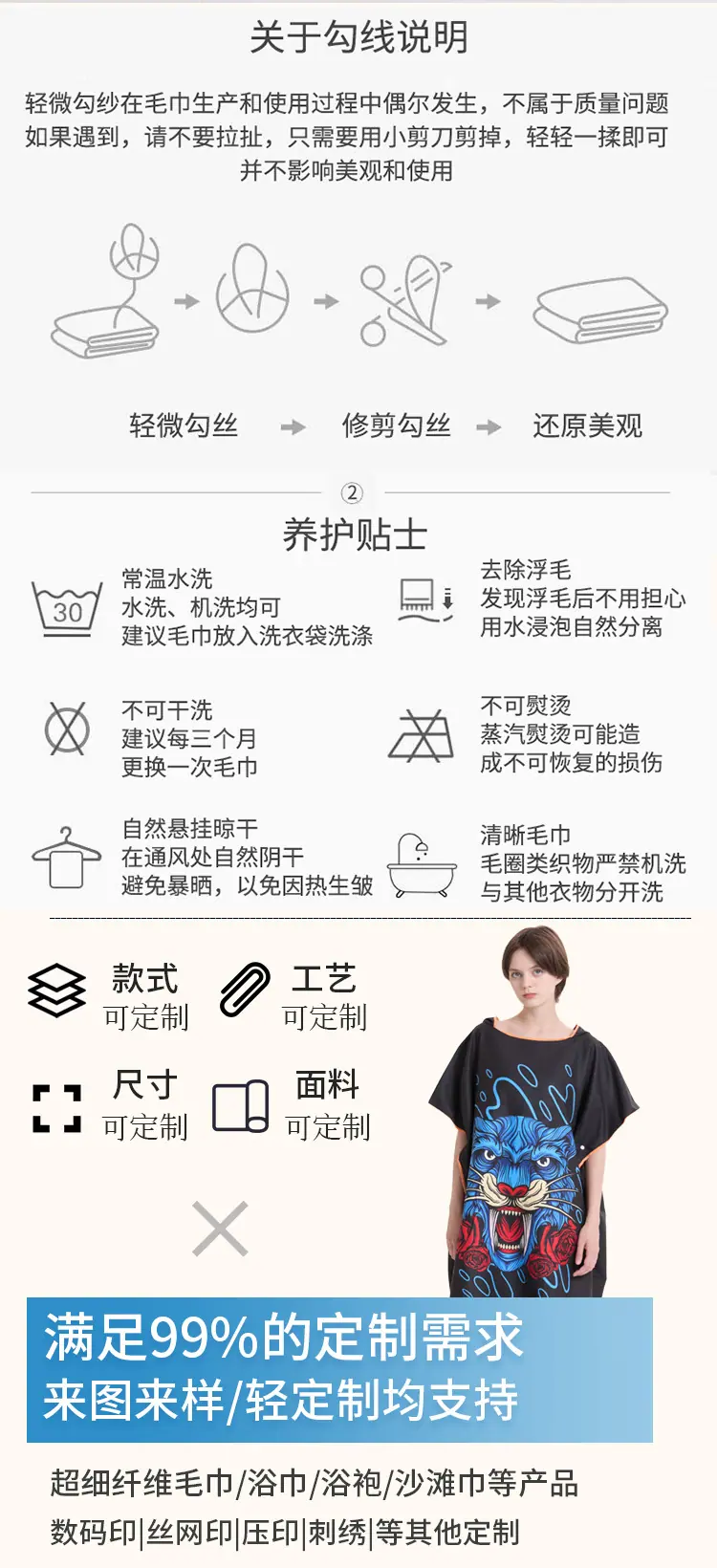 Venta al por mayor de fábrica toalla de baño con capa de terciopelo de doble cara de secado rápido cálida estampada superabsorbente para cambiar en la playa albornoz