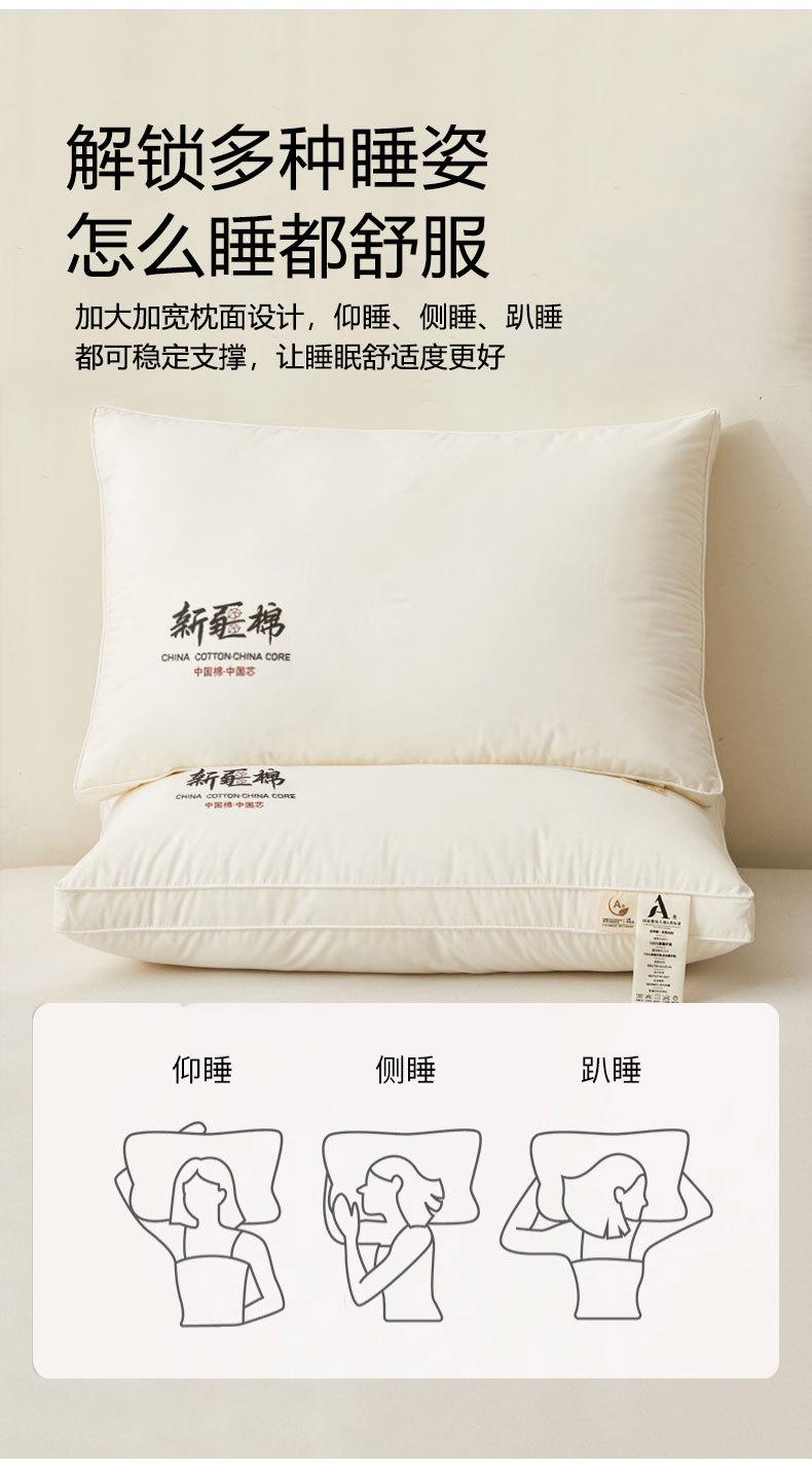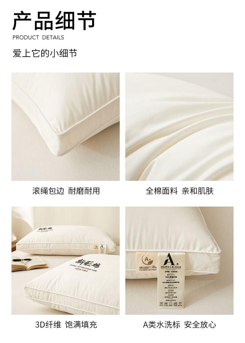 Almohada de Algodón Xinjiang Clase A Ayuda para el Soporte del Cuello Dormir Almohada para el Hogar Núcleo Uso Especial para Dormitorio de Estudiantes Suave que No se Colapsa Almohada Entera