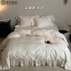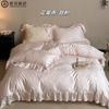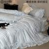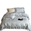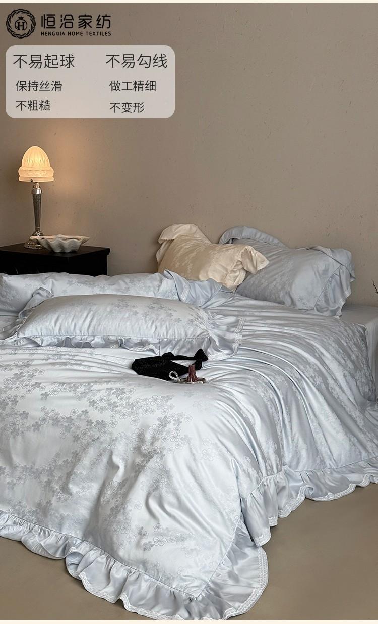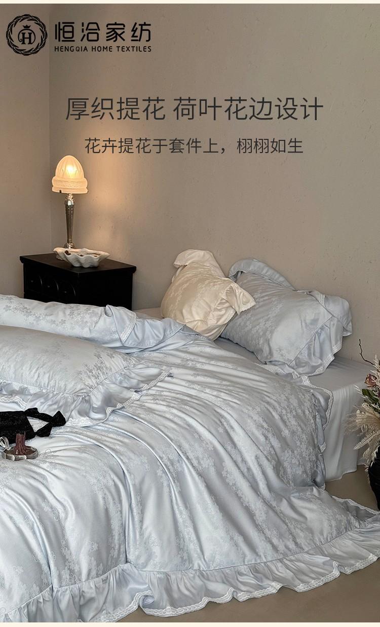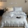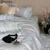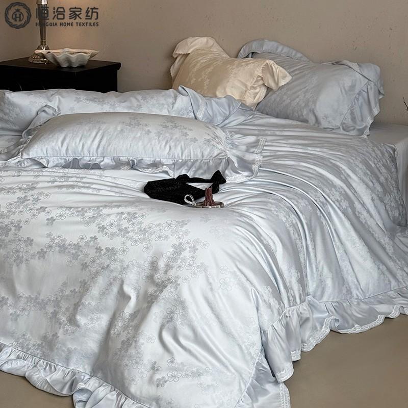 Compra Juego de cuatro piezas de algodón puro súper suave francés Floral fresco Jacquard grueso Todo algodón Funda nórdica Sábana de cama Ropa de cama Azul Blanco al por mayor en Joom.pro