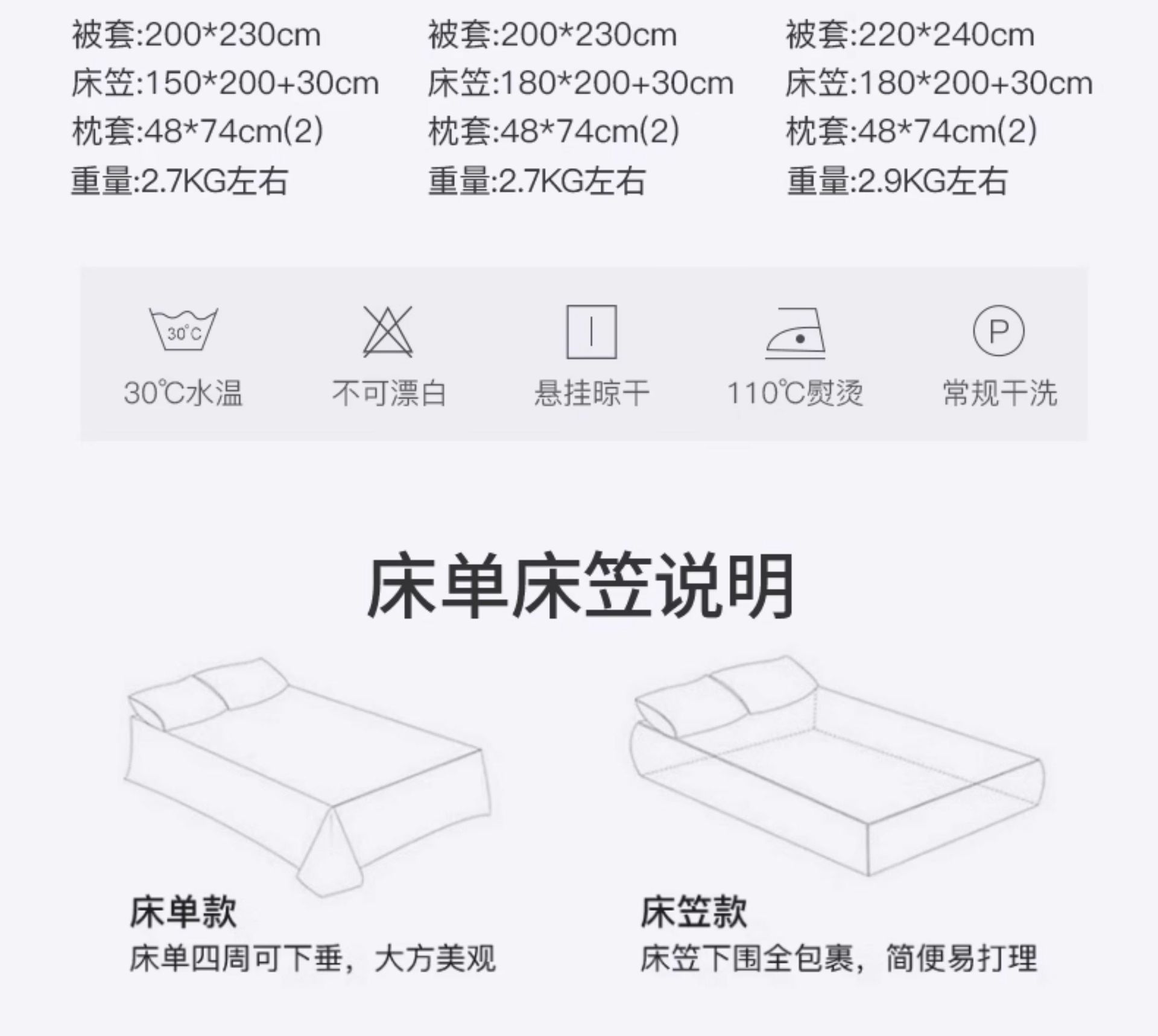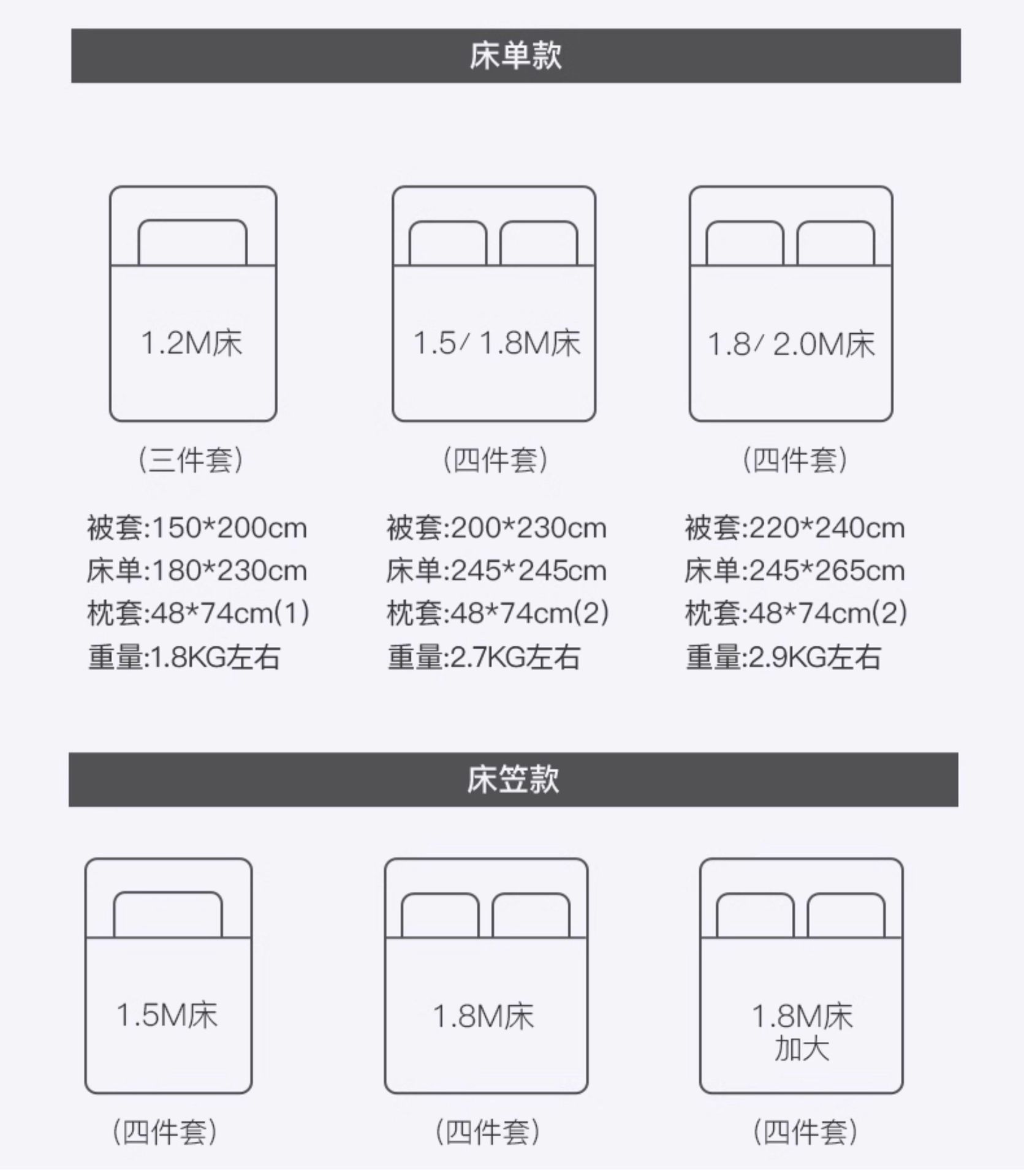 1.5m bed [sheet set of four] - suitable for 200x230 quilt, 1.8m bed [sheet set of four] - suitable for 200x230...