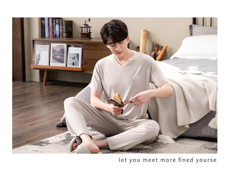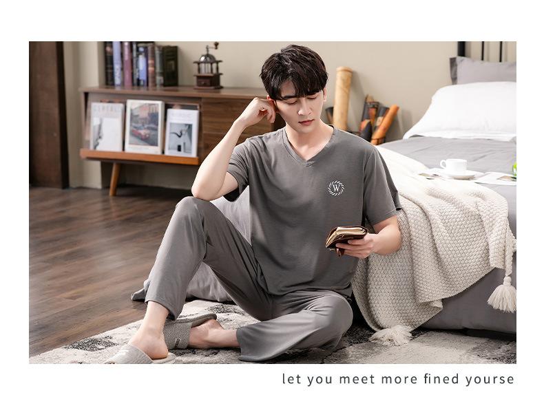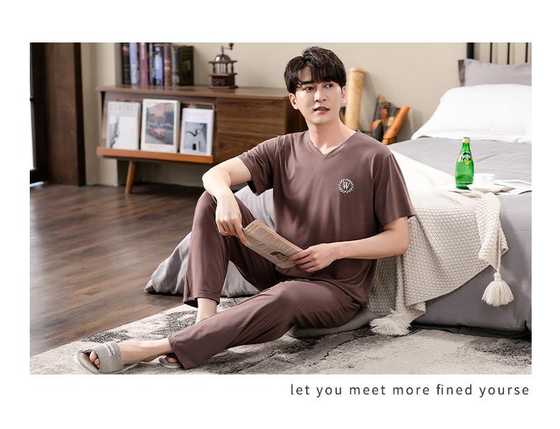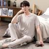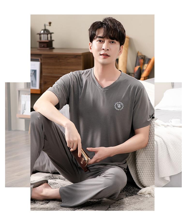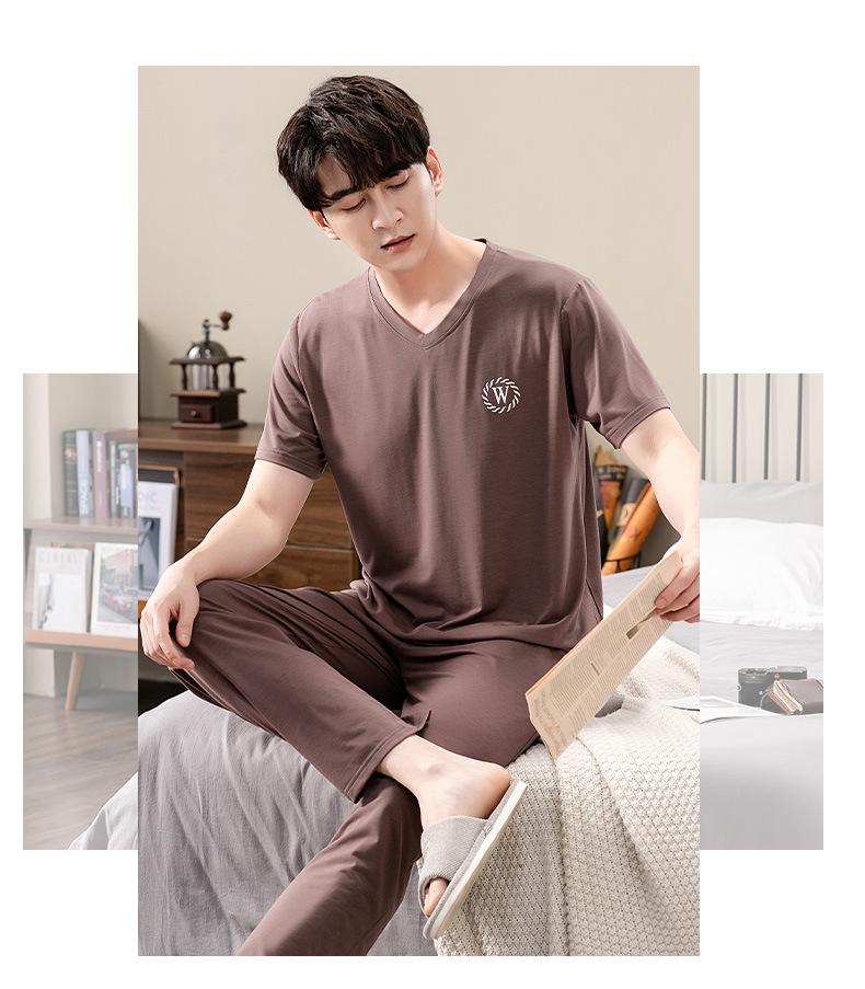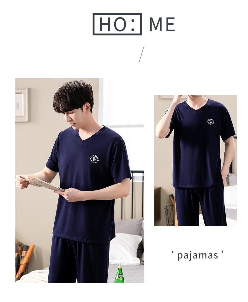 Pijama Modal para Hombre Verano Pantalones de Manga Corta Ropa para el Hogar Simple Casual Pura para Jóvenes Ropa de Verano