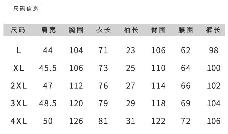 4XL: 95.00 kg-110.00 kg, 3XL: 85.00 kg-95.00 kg, XXL: 75.00 kg-85.00 kg, XL: 65.00 kg-75.00 kg, L: 50.00 kg-65.00 kg