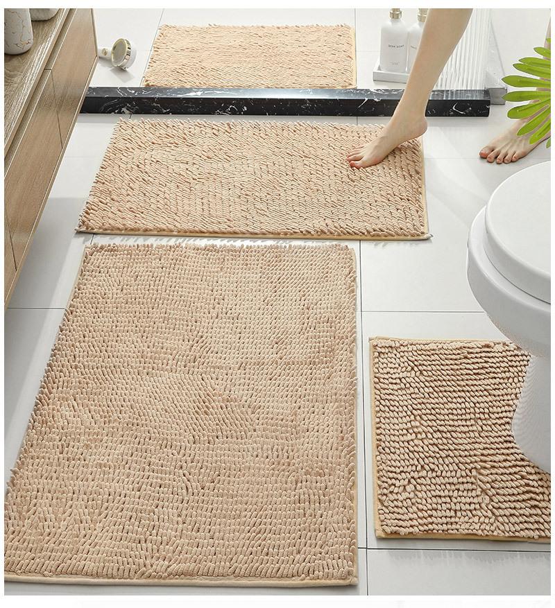 Alfombra de Piso Absorbente para Baño Transfronteriza Alfombra Resistente a la Suciedad para Inodoro Baño Almohadilla para Pies Antideslizante Felpudo de Chenilla Juego de 4 Piezas