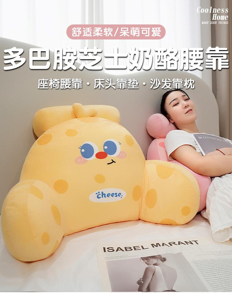 Soporte Lumbar de Queso de Dibujos Animados Cabecera Paquete Suave Cojín de Respaldo Cama Respaldo Grande Sofá Almohada Decorativa Dormitorio de Estudiantes Almohada de Lectura