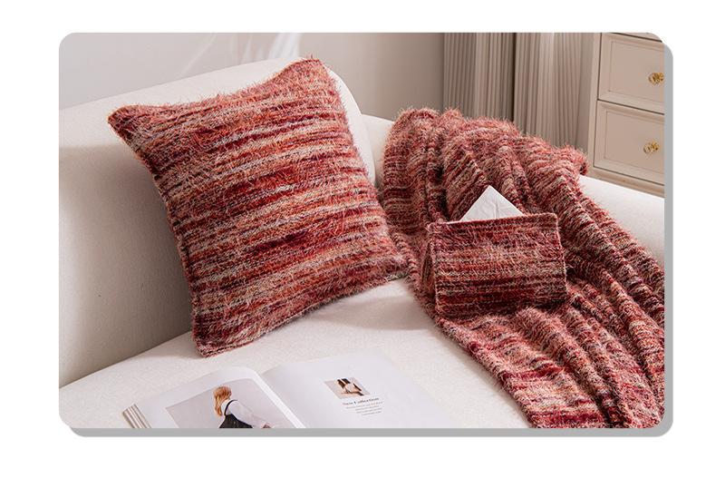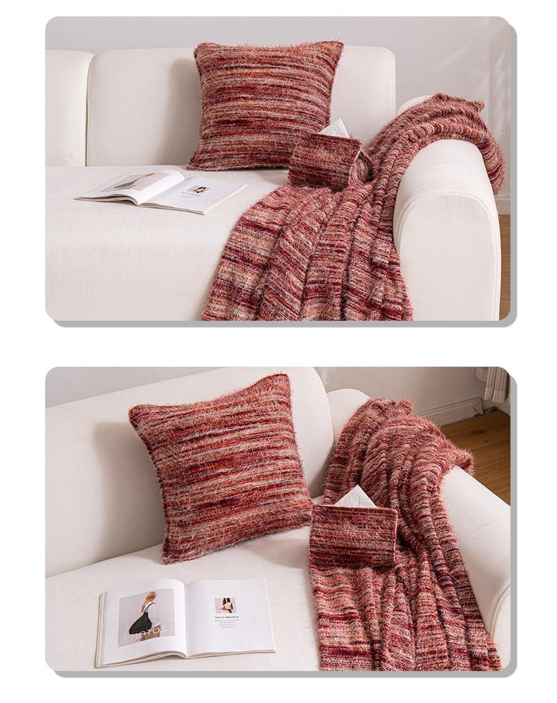 45*45cm pillowcase, an entire pillowcase plus pillow insert, Velvety Warm Sunset Glow Throw Blanket 150*110, tissue box