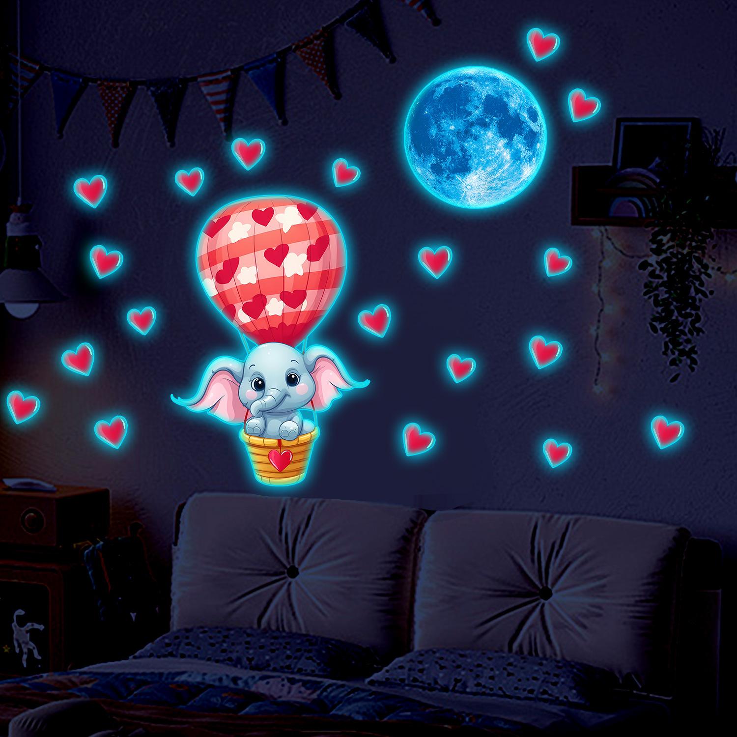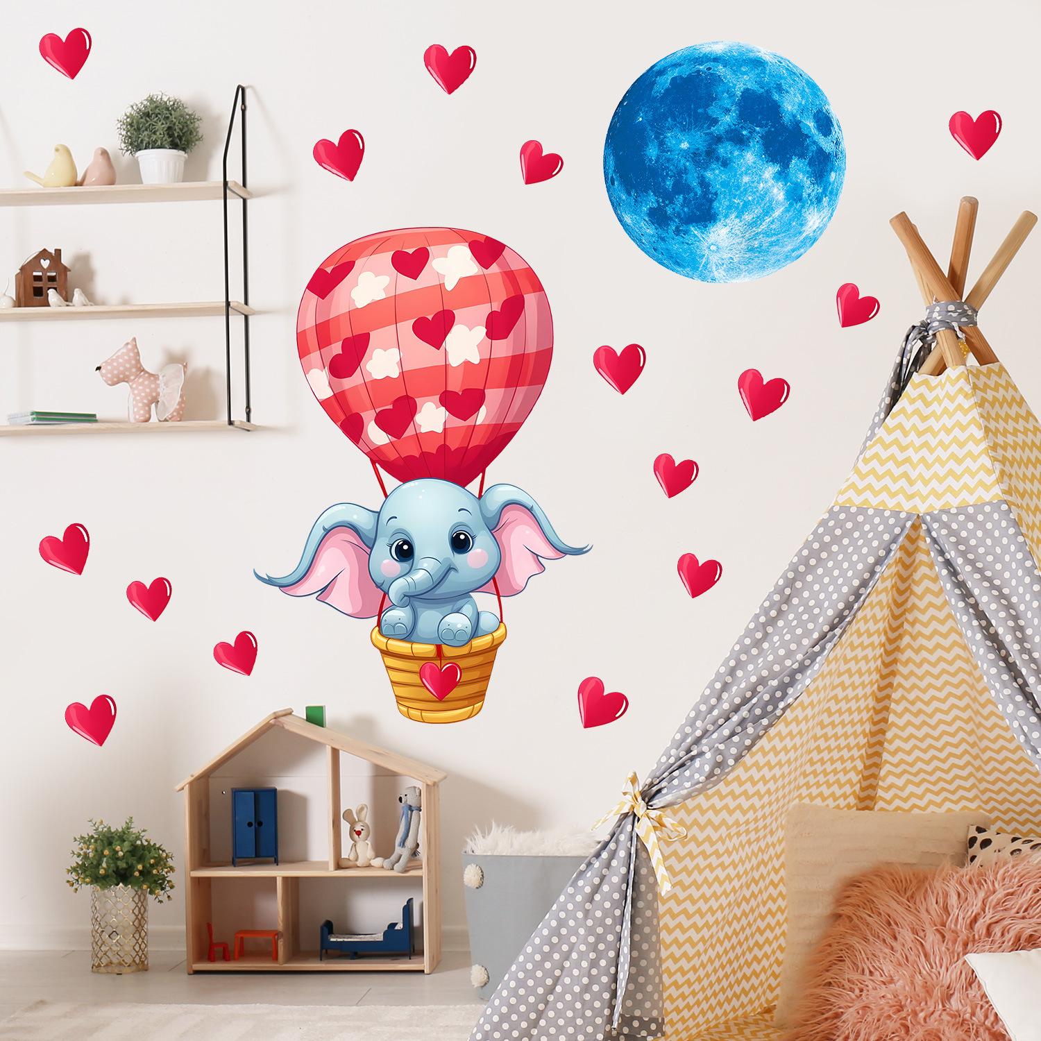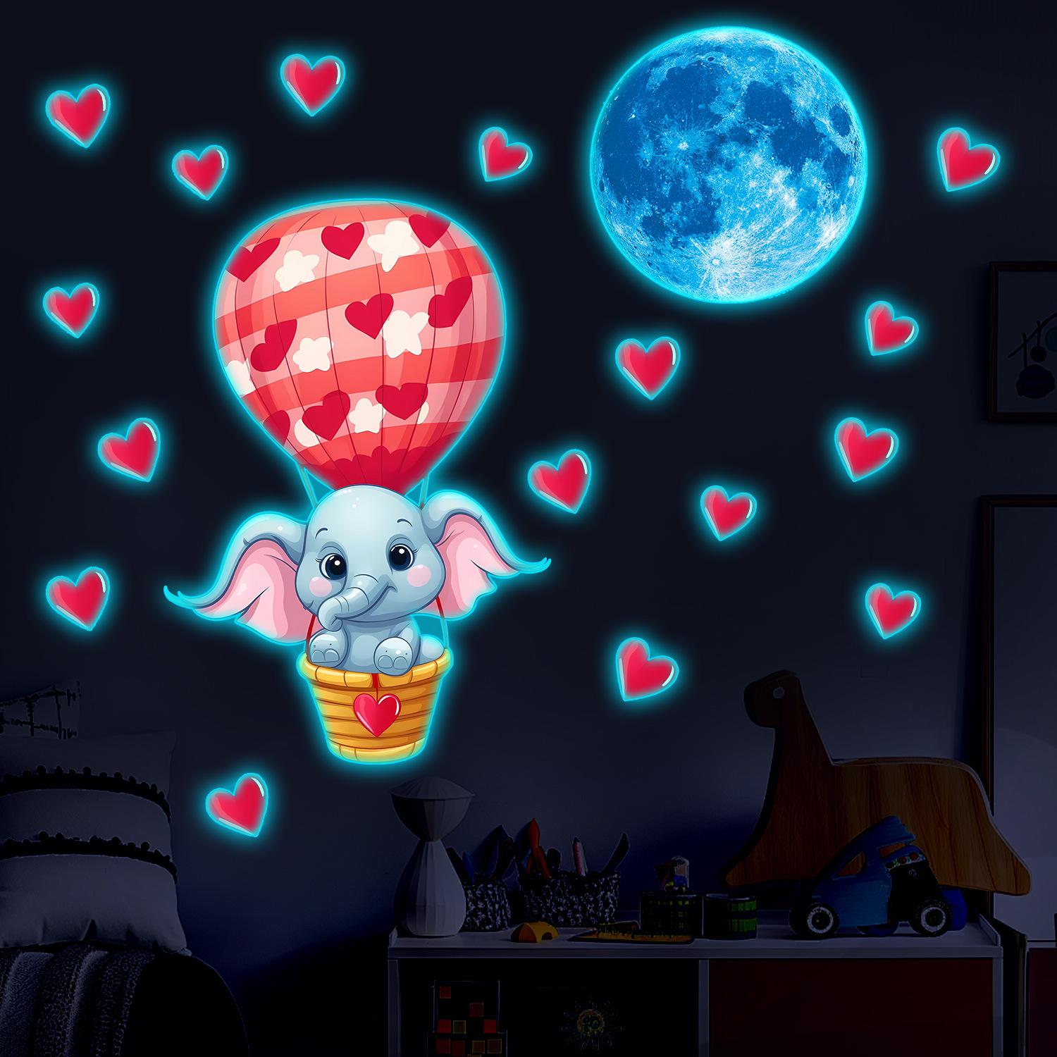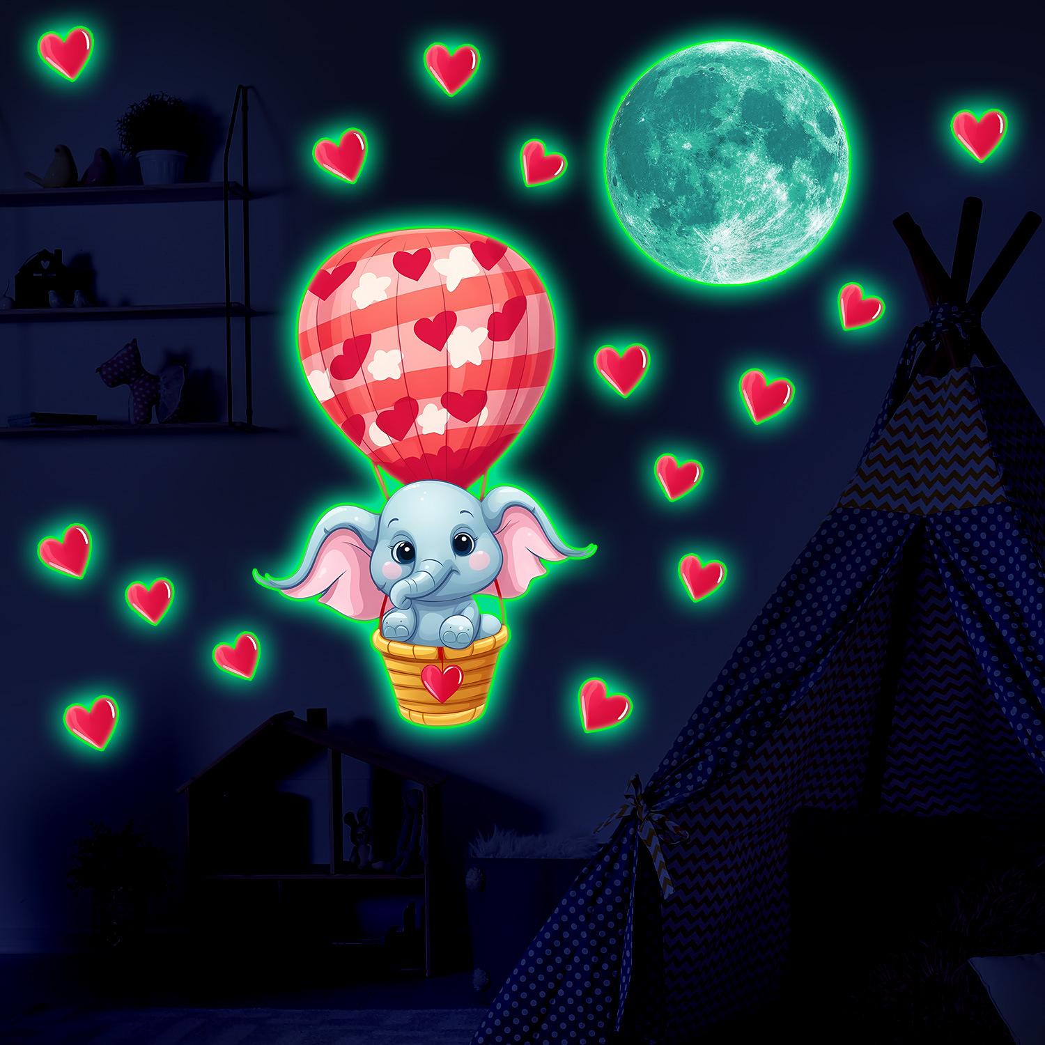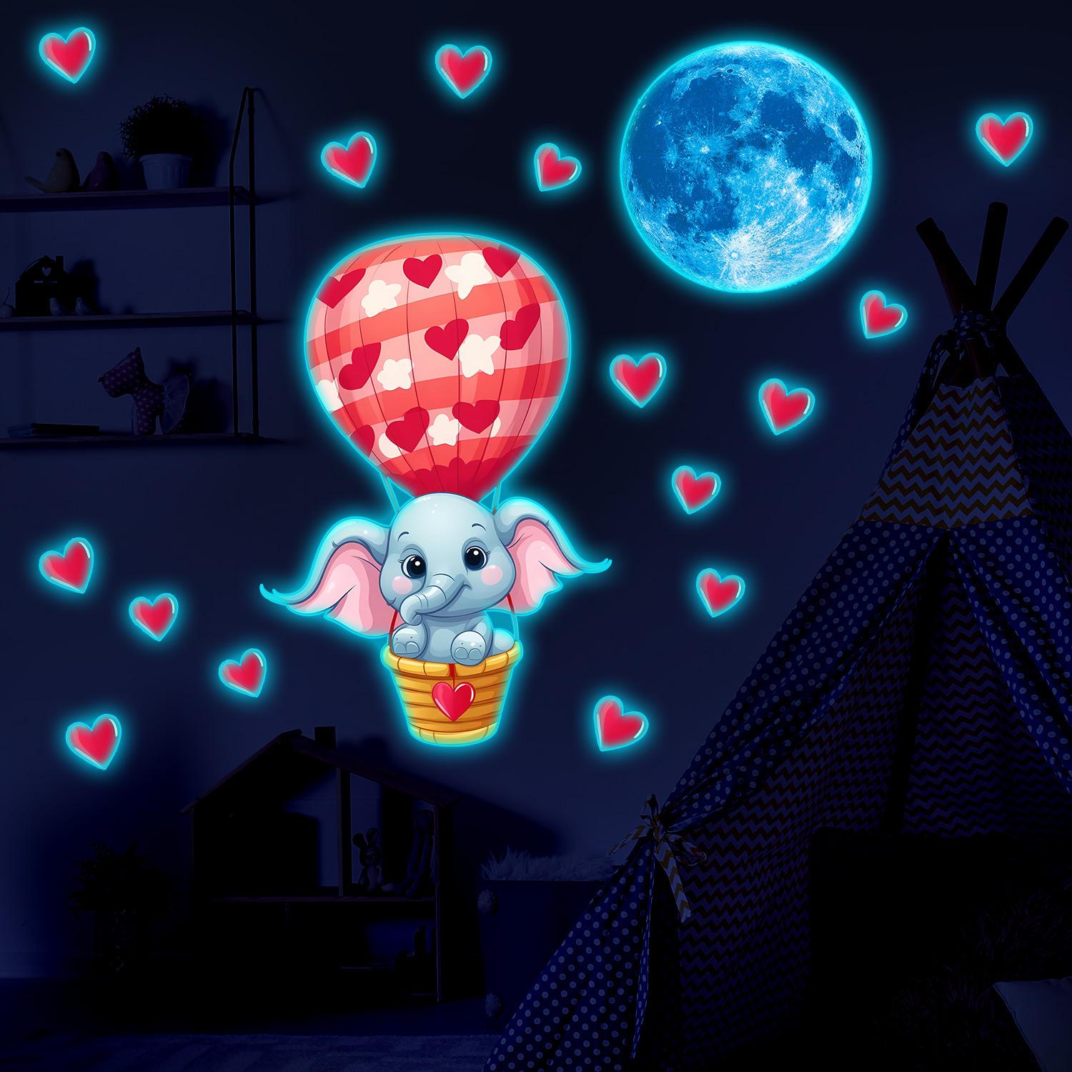 Globo Aerostático Luminoso Transfronterizo Elefante Habitación Infantil Sala de Estar Corazón Planeta Decoración Adhesivos Arreglo Pegatinas de Pared para el Hogar