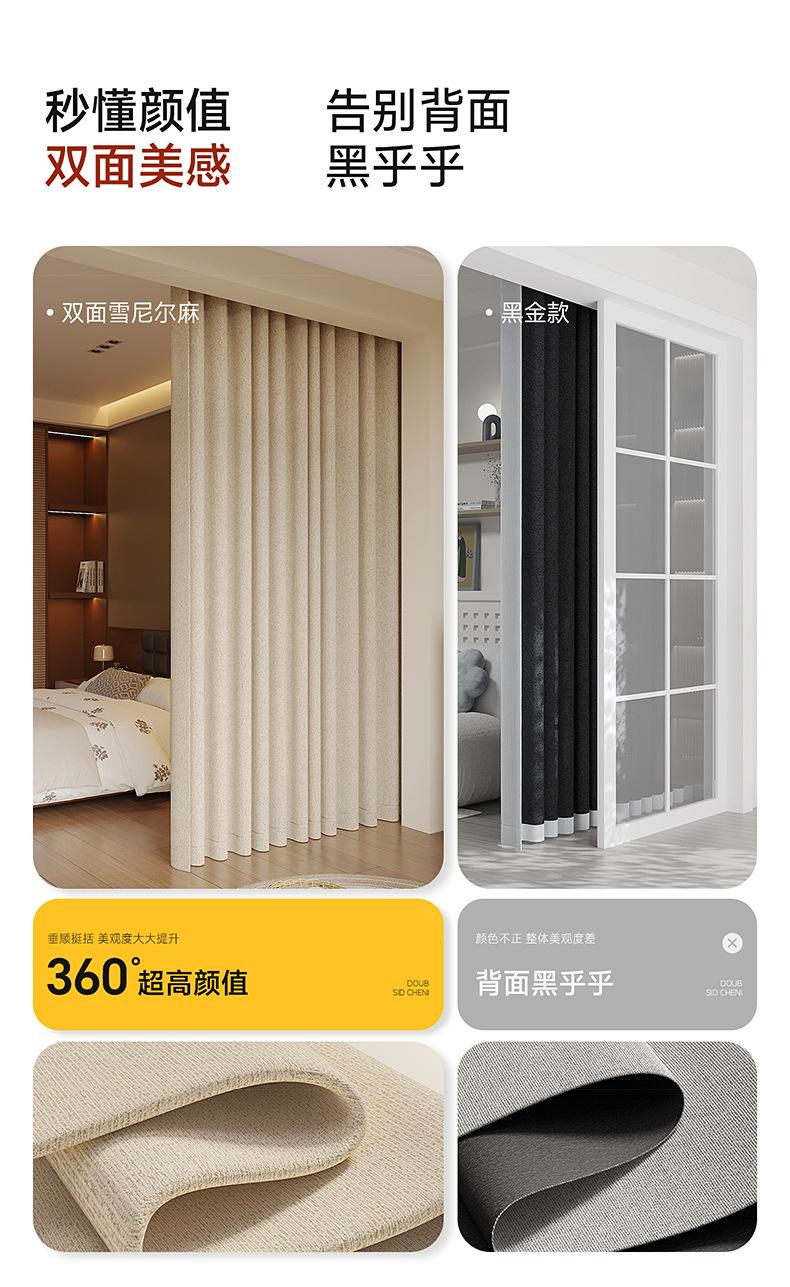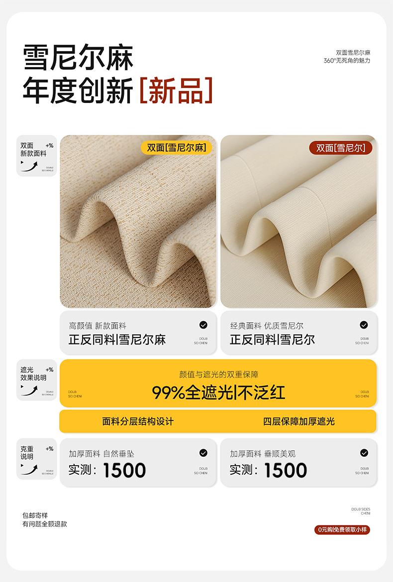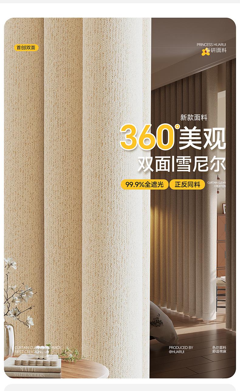 Cortinas de chenilla de doble cara producto terminado blackout total estilo minimalista crema sala de estar dormitorio gama alta cortinas Shaoxing Keqiao