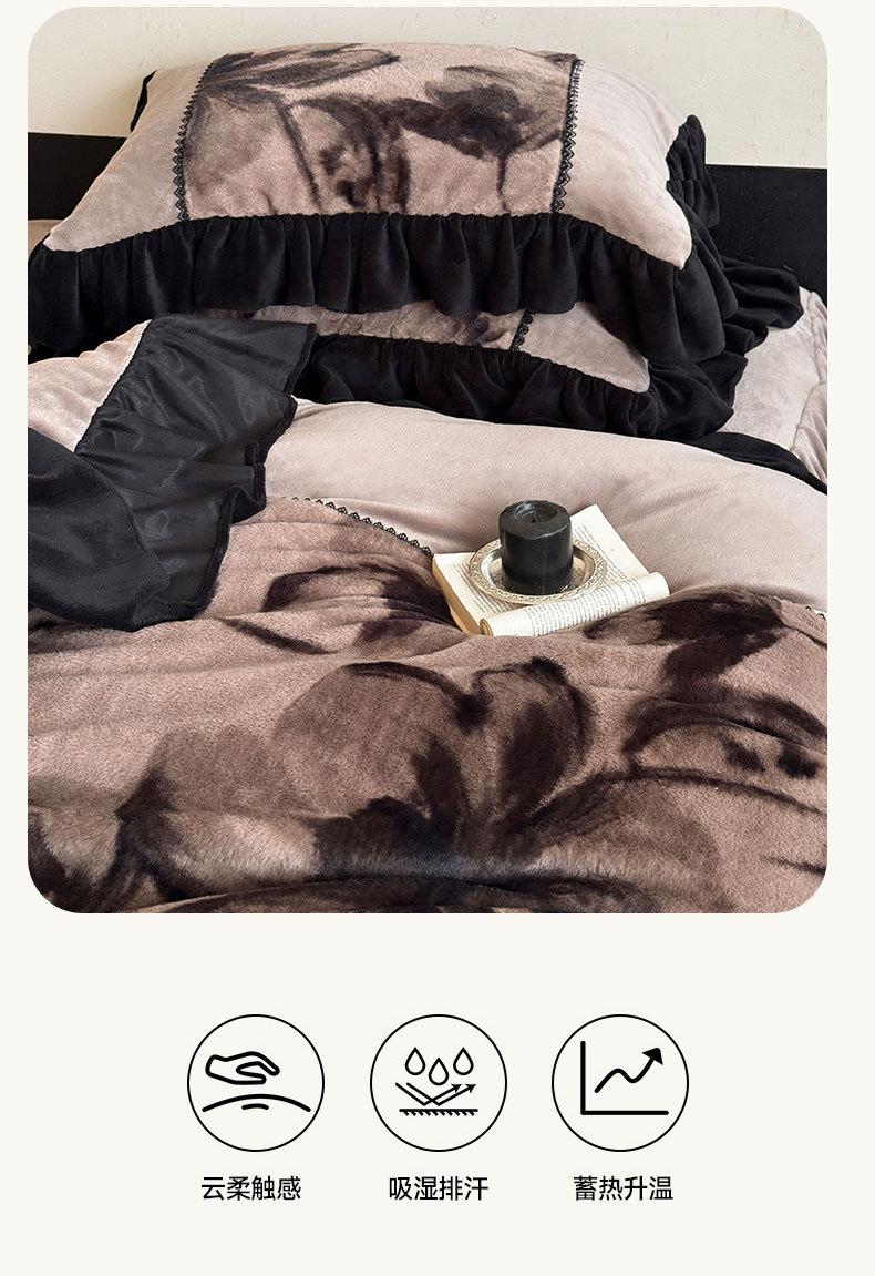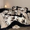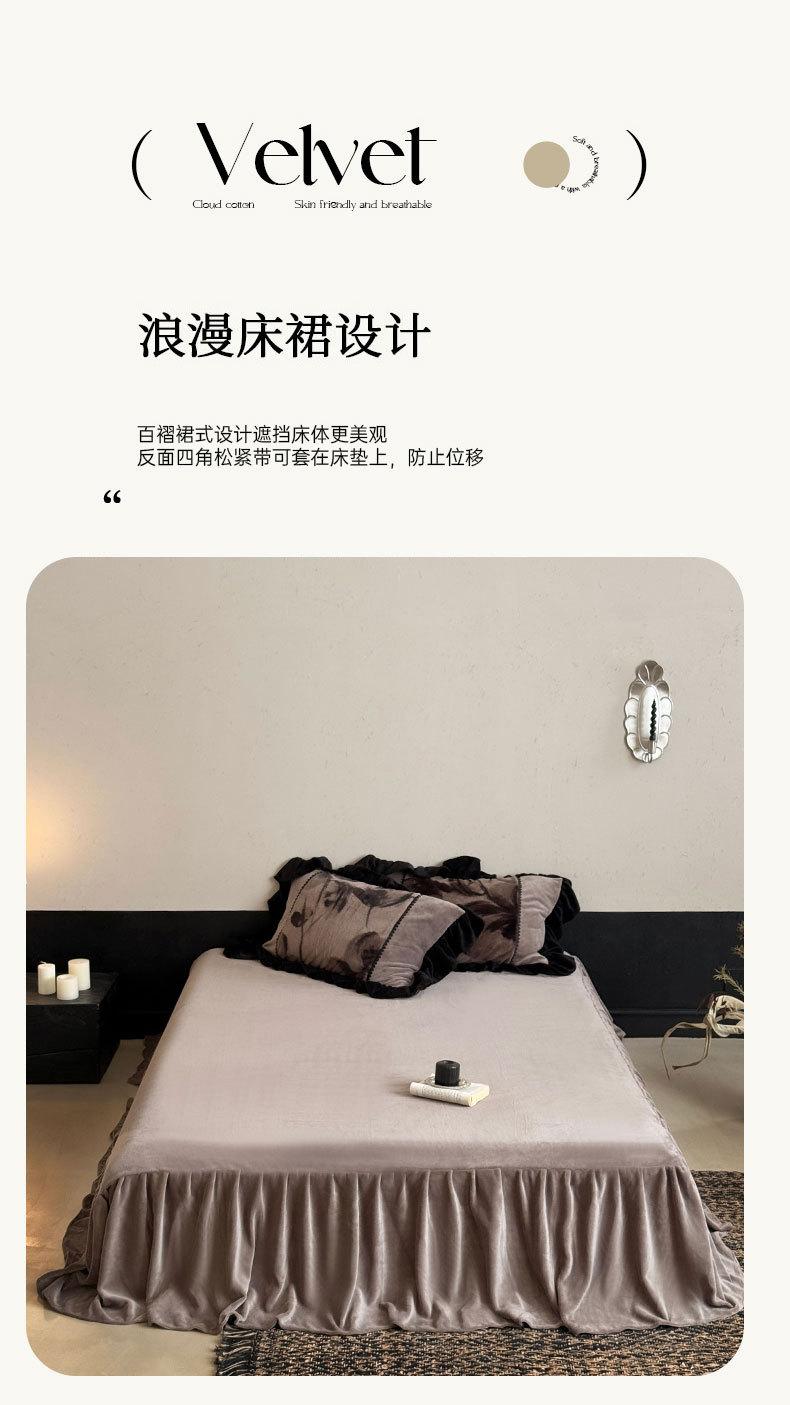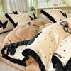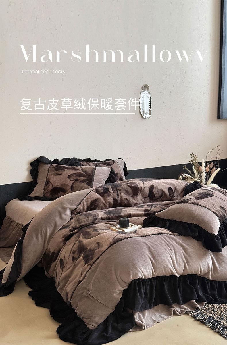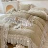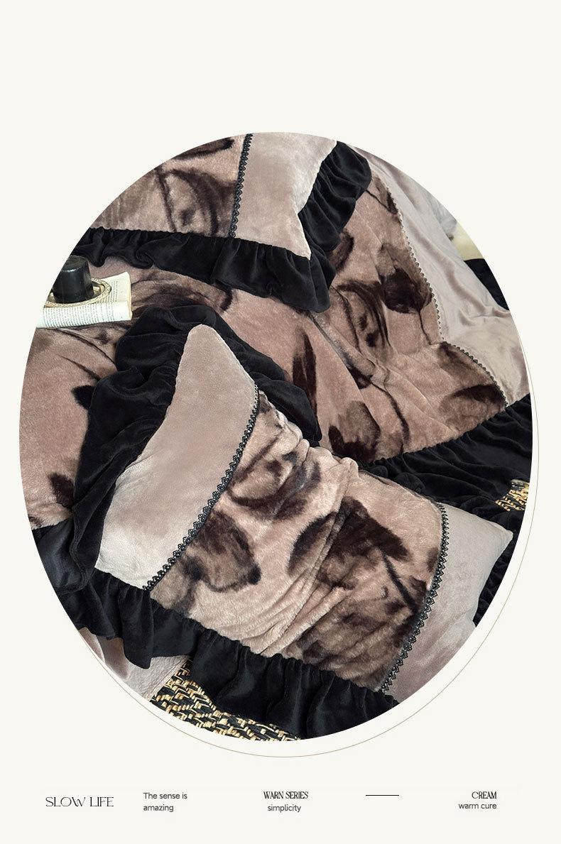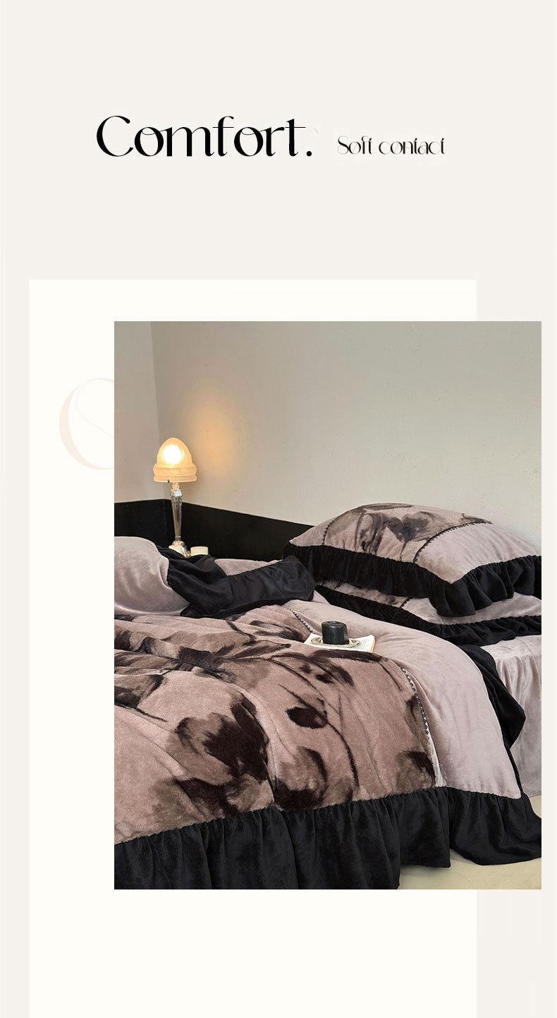 Clase A Retro Terciopelo de Piel Sintética Terciopelo de Leche Retro Encaje Francés Ropa de Cama Juego de Cuatro Piezas Funda Nórdica más Sábana Bajera Ajustable de Terciopelo Estilo Falda de Cama