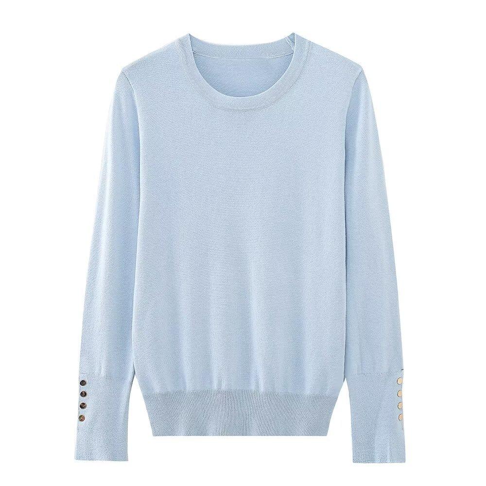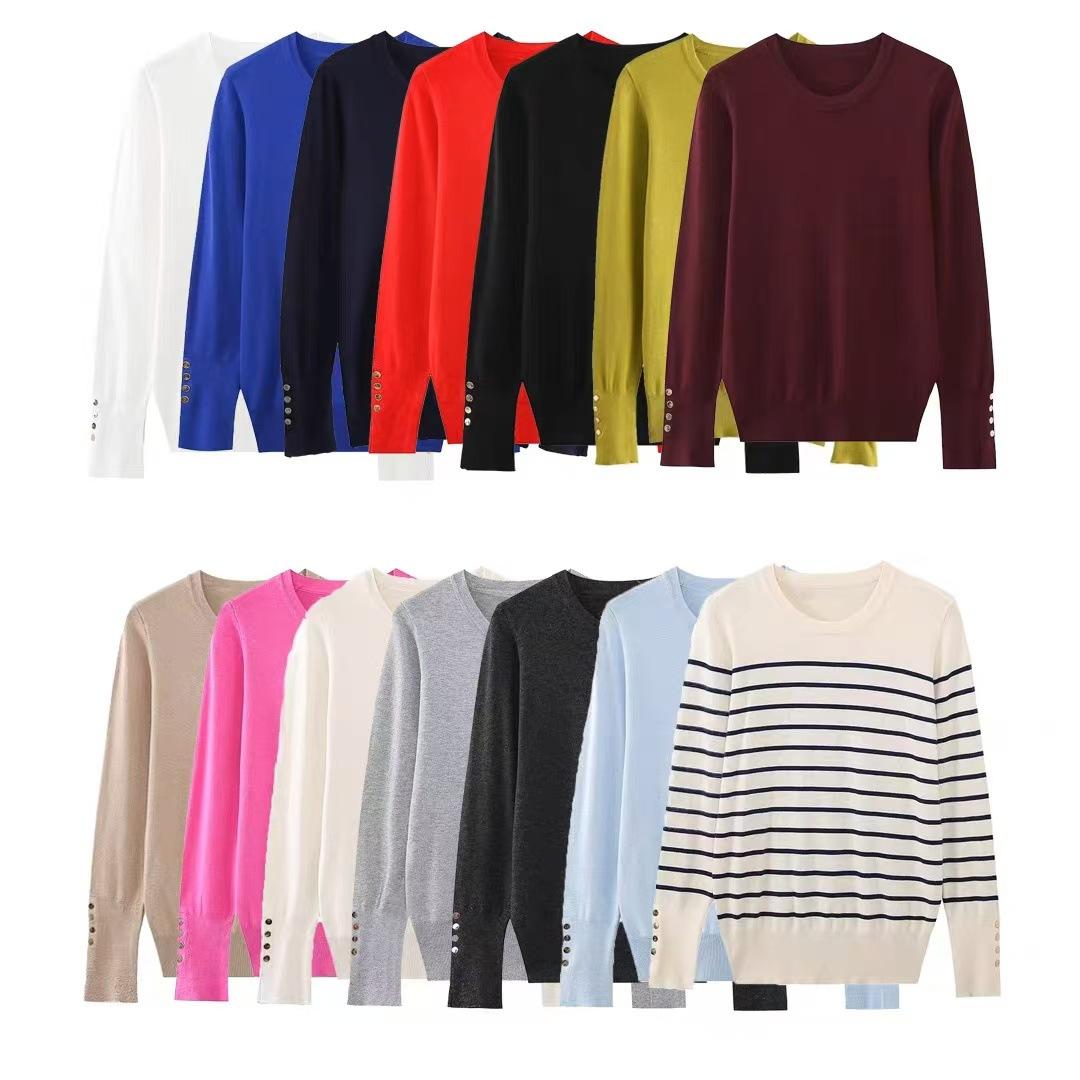 2024 otoño e invierno nueva moda simple cuello redondo suéter holgado de punto comercio exterior para mujer al por mayor