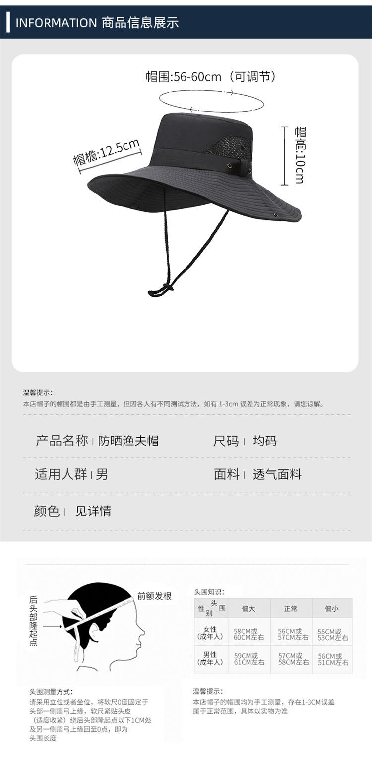 Sombrero para hombre Sombrero de sol de verano para exteriores Transpirable Sombrero de protección solar Sombrero para ciclismo de hombre Sombrero de pescador Sombrero de sol para montañismo y pesca