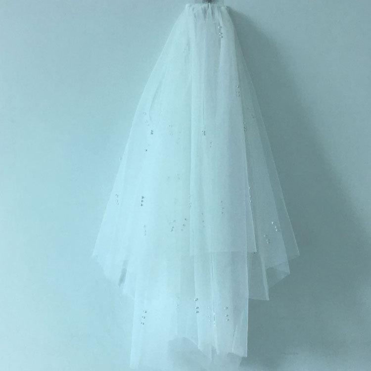 2020 Nuevo Velo de Novia Nuevo Velo de Hada Hecho a Mano con Cuentas Doble Capa Perla Velo para Foto de Viaje Accesorios para Vestido de Novia Celebridad de Internet para Mujer