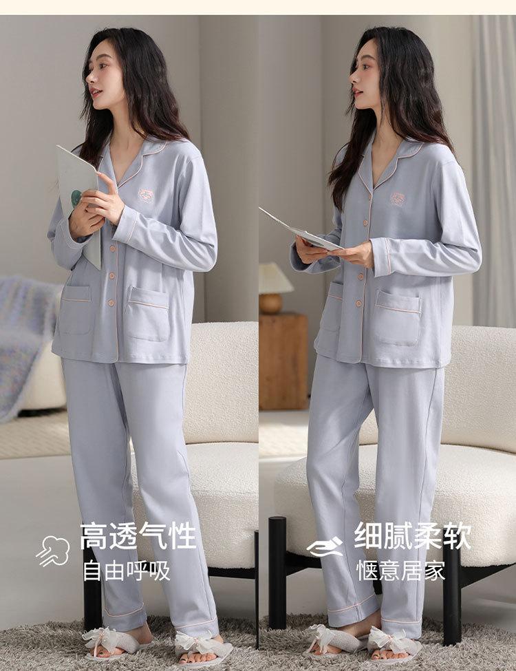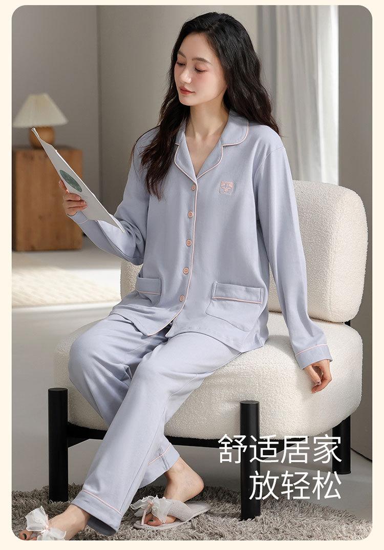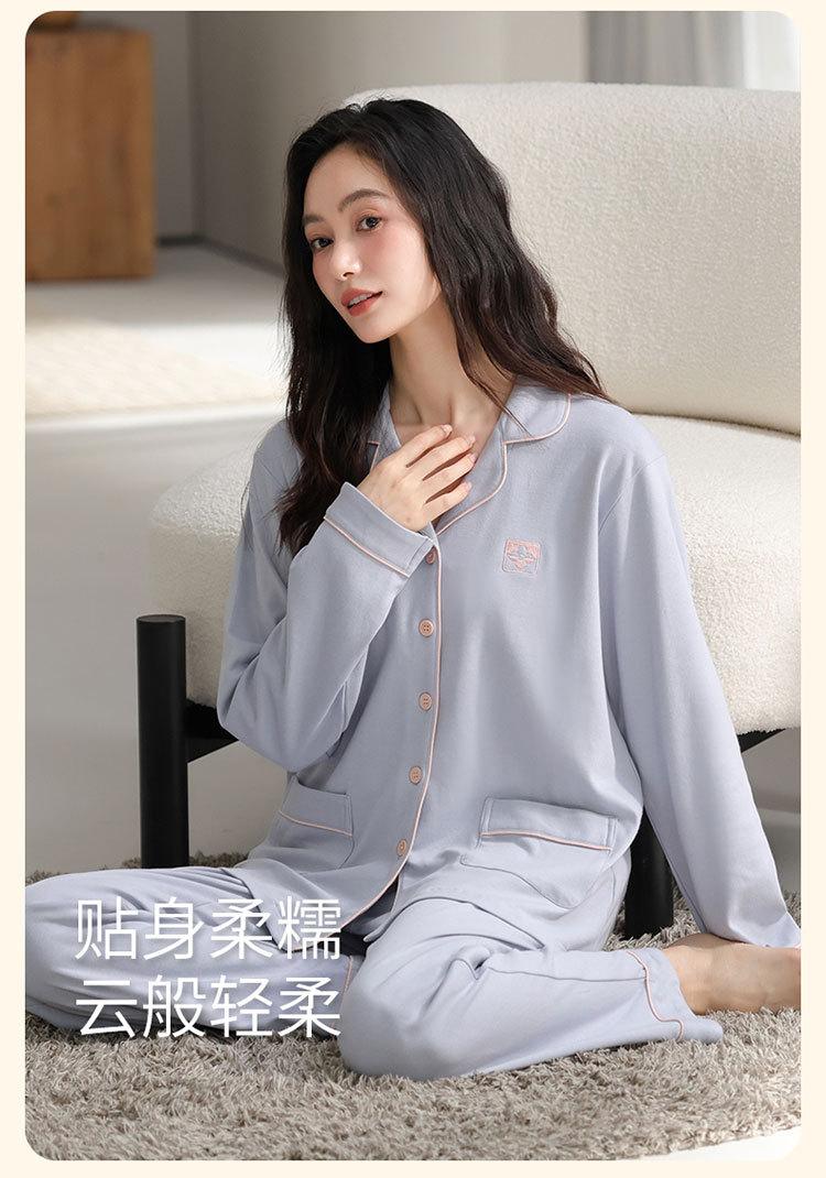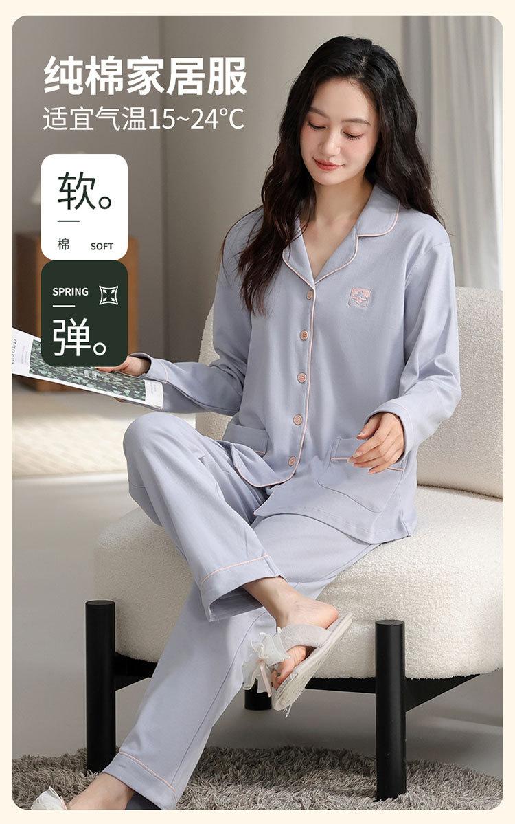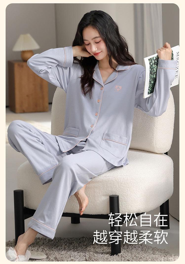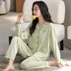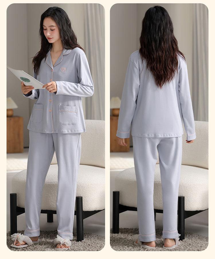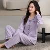 Pijama de algodón puro de alta calidad para mujer otoño e invierno nuevo manga larga casual simple cárdigan talla grande ropa para el hogar invierno