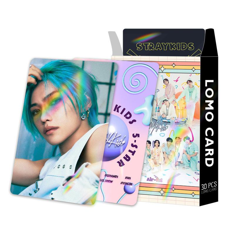 Tarjeta Flash Láser Straykids nuevo álbum Doble cara 30 tarjetas pequeñas Tarjeta LOMO soporte tarjeta de colección en caja