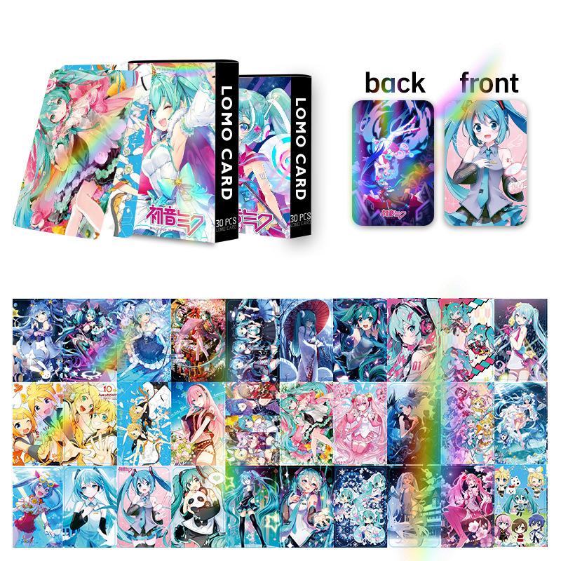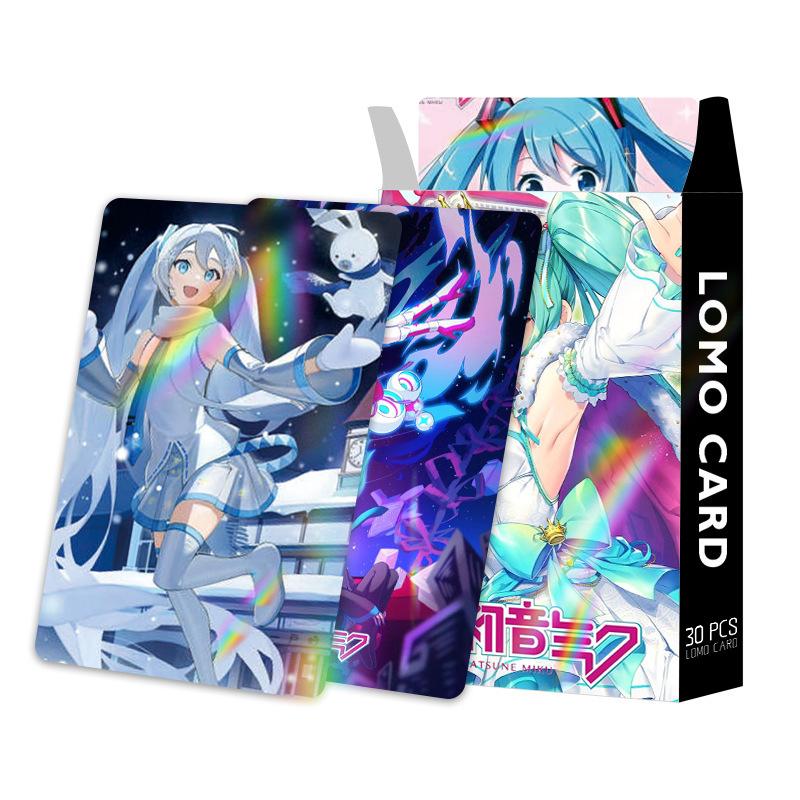 Tarjeta flash láser con sonido inicial, doble cara, 30 tarjetas pequeñas, tarjeta LOMO, animación, caja de periféricos, colección de tarjetas fotográficas, tarjeta de felicitación