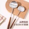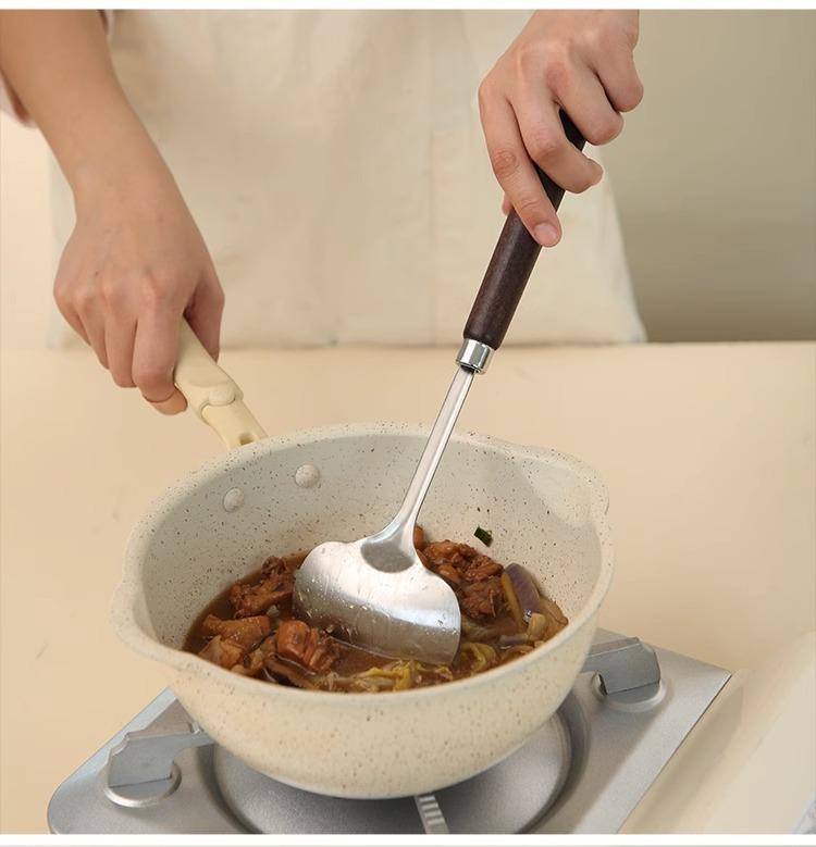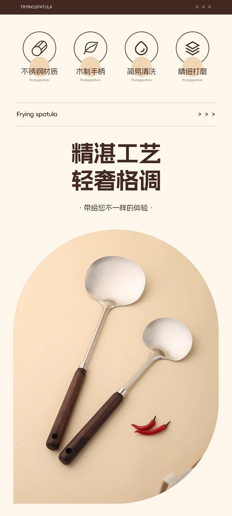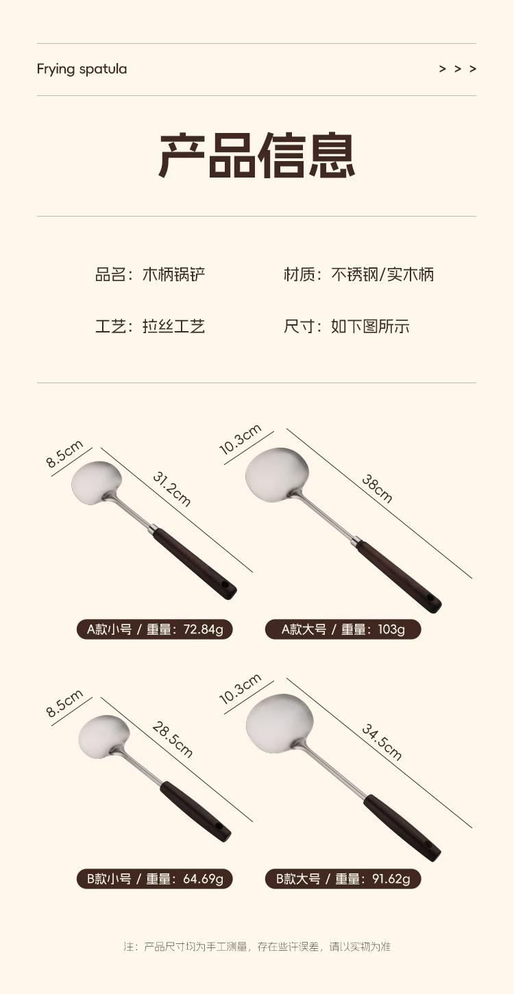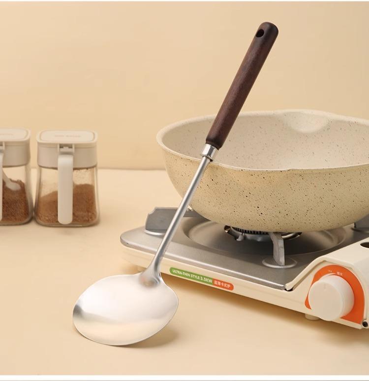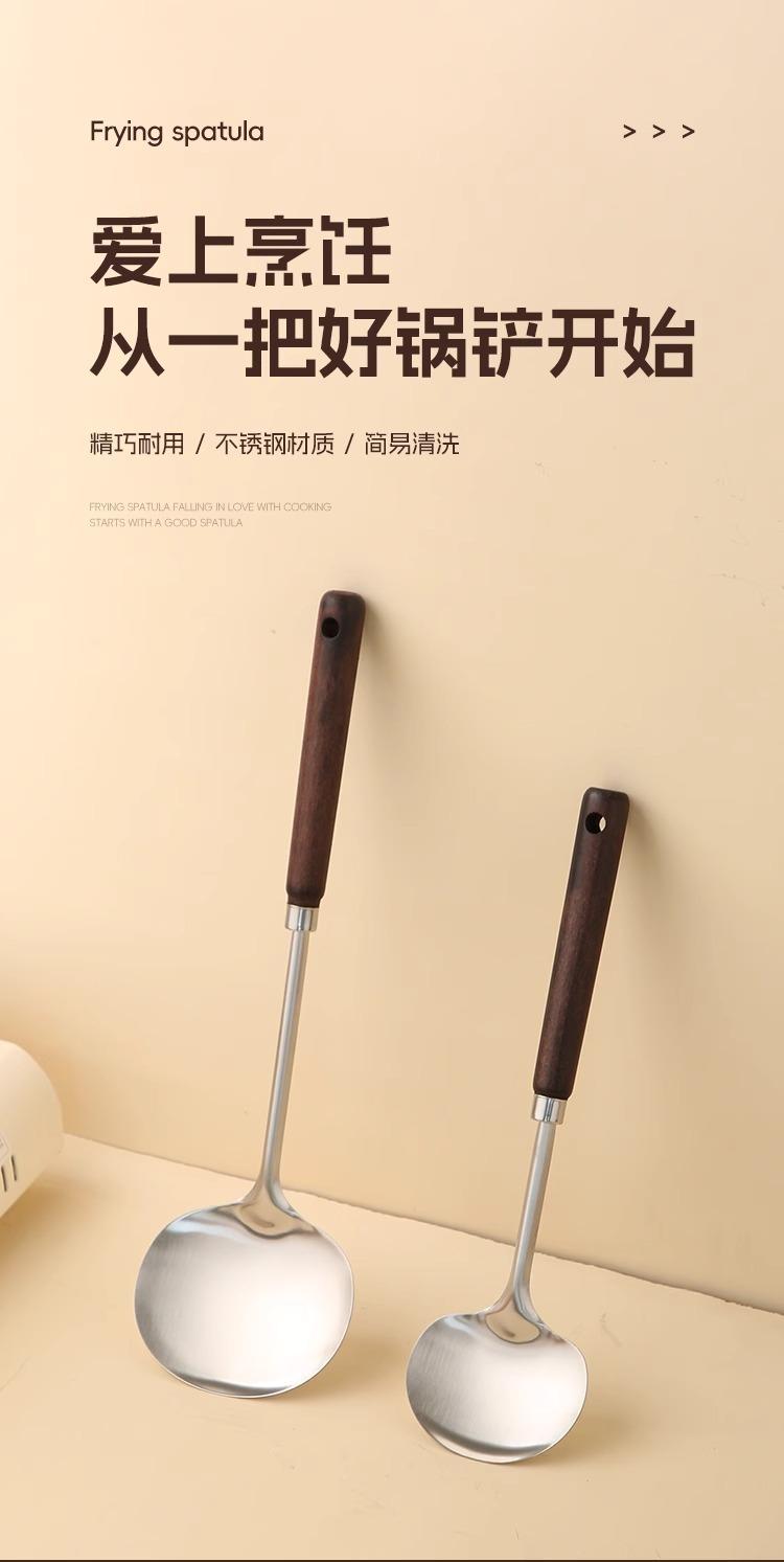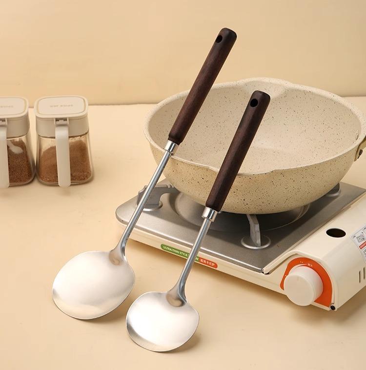 Pala de acero inoxidable para hongos, pala de madera maciza con mango largo, cuchara de cocina, juego de utensilios de cocina para el hogar, pala para manzanas