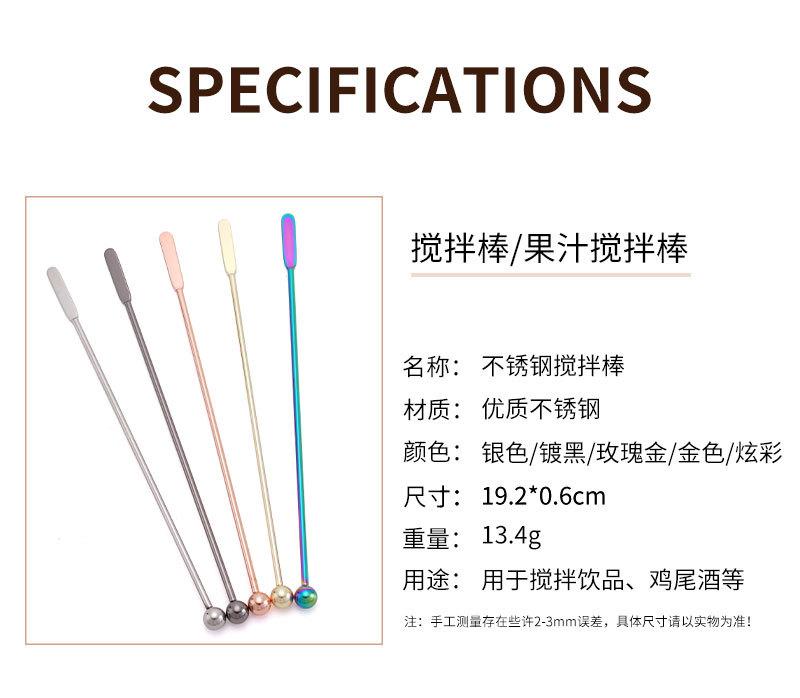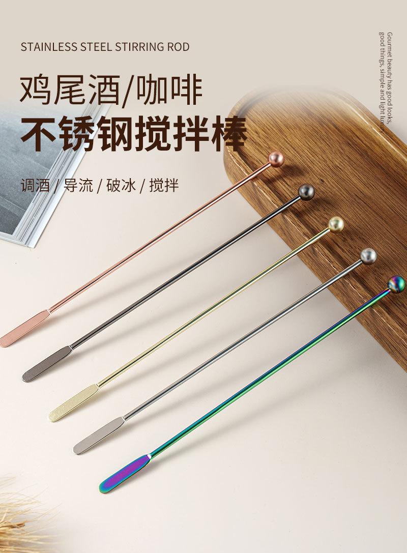 Cuchara de Bar de Acero Inoxidable con Extremo Plano para Cócteles, Bebidas, Café, Cuchara de Bar de Metal, Herramienta de Mezcla para Bar, Palo Removedor