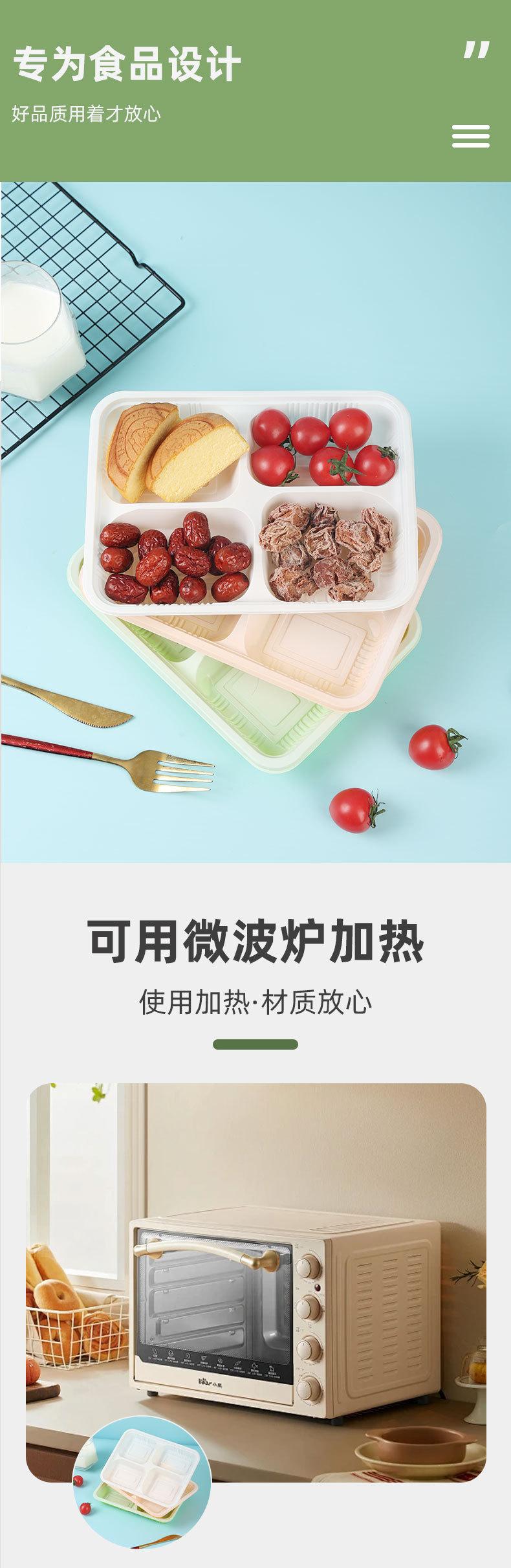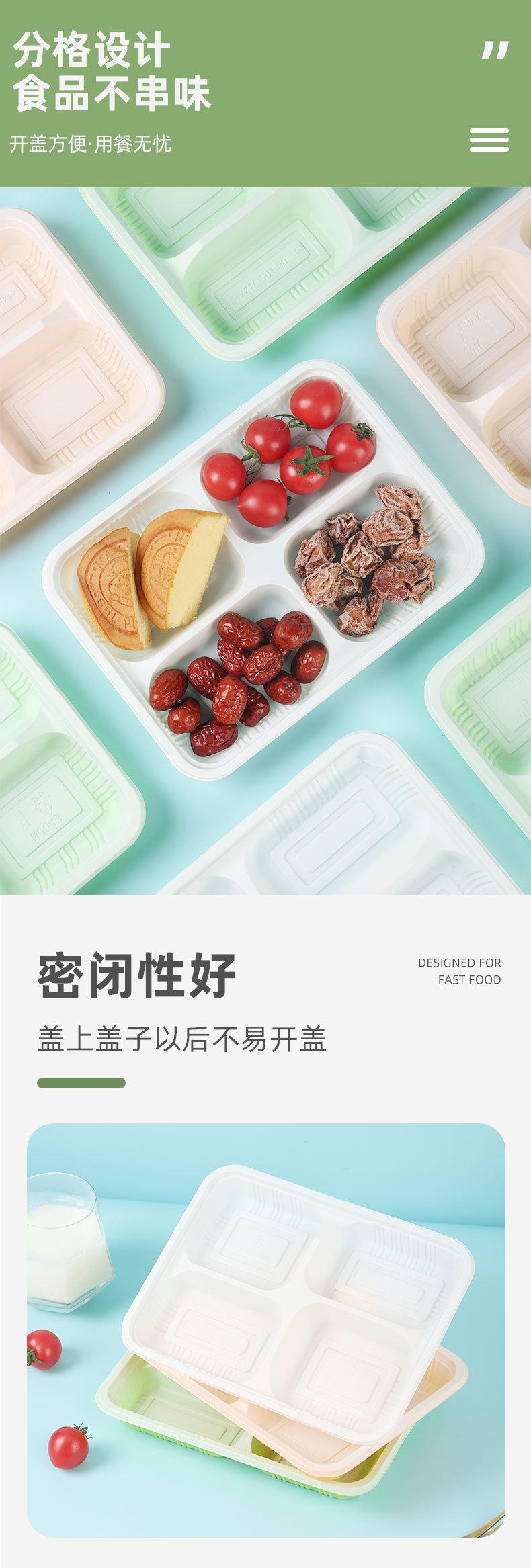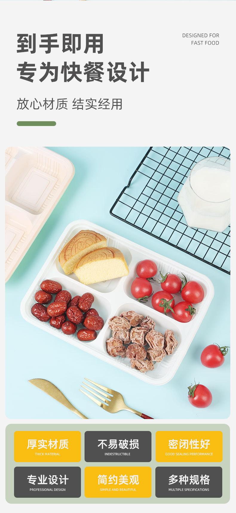 Lonchera desechable calentable de plástico de grado alimenticio, lonchera dividida tipo bento de cuatro compartimentos, caja para llevar