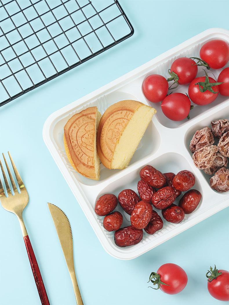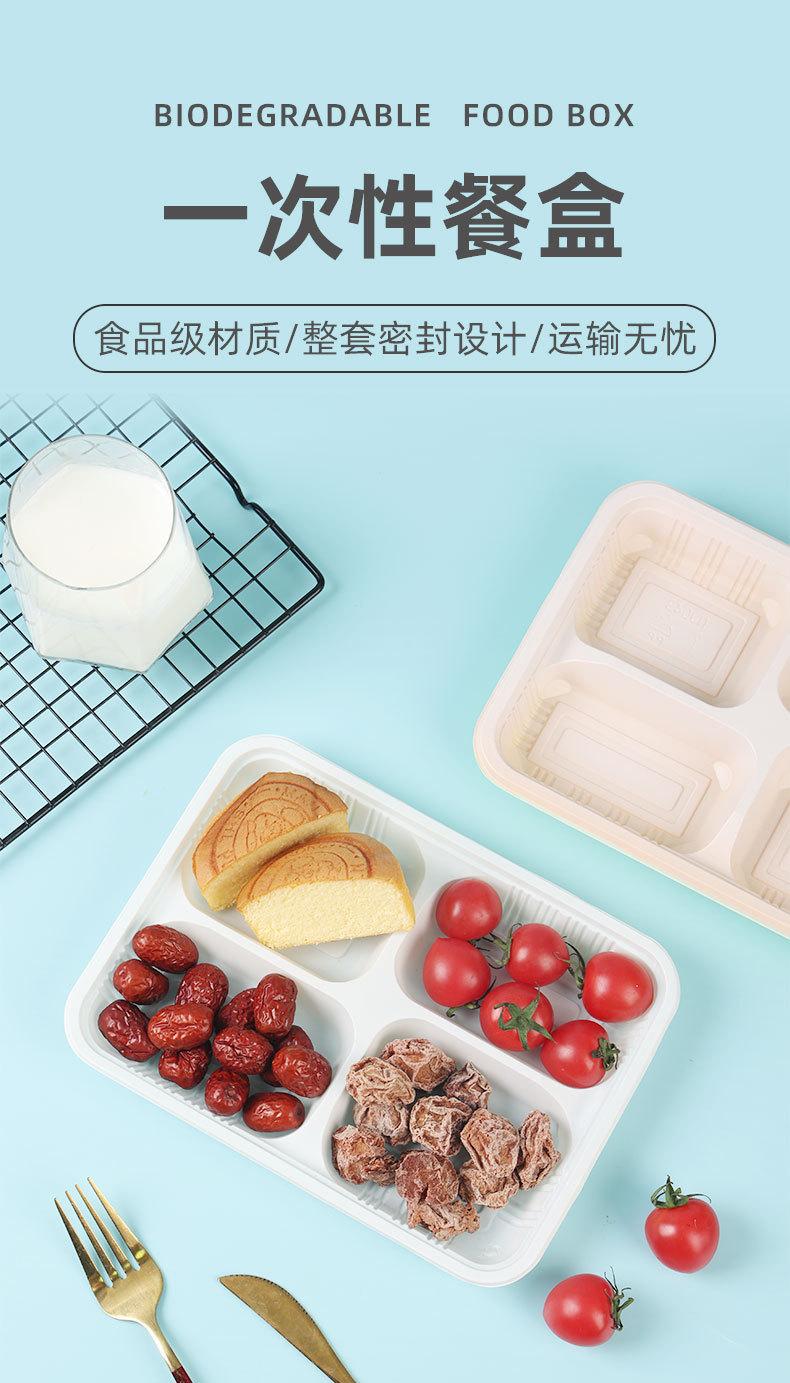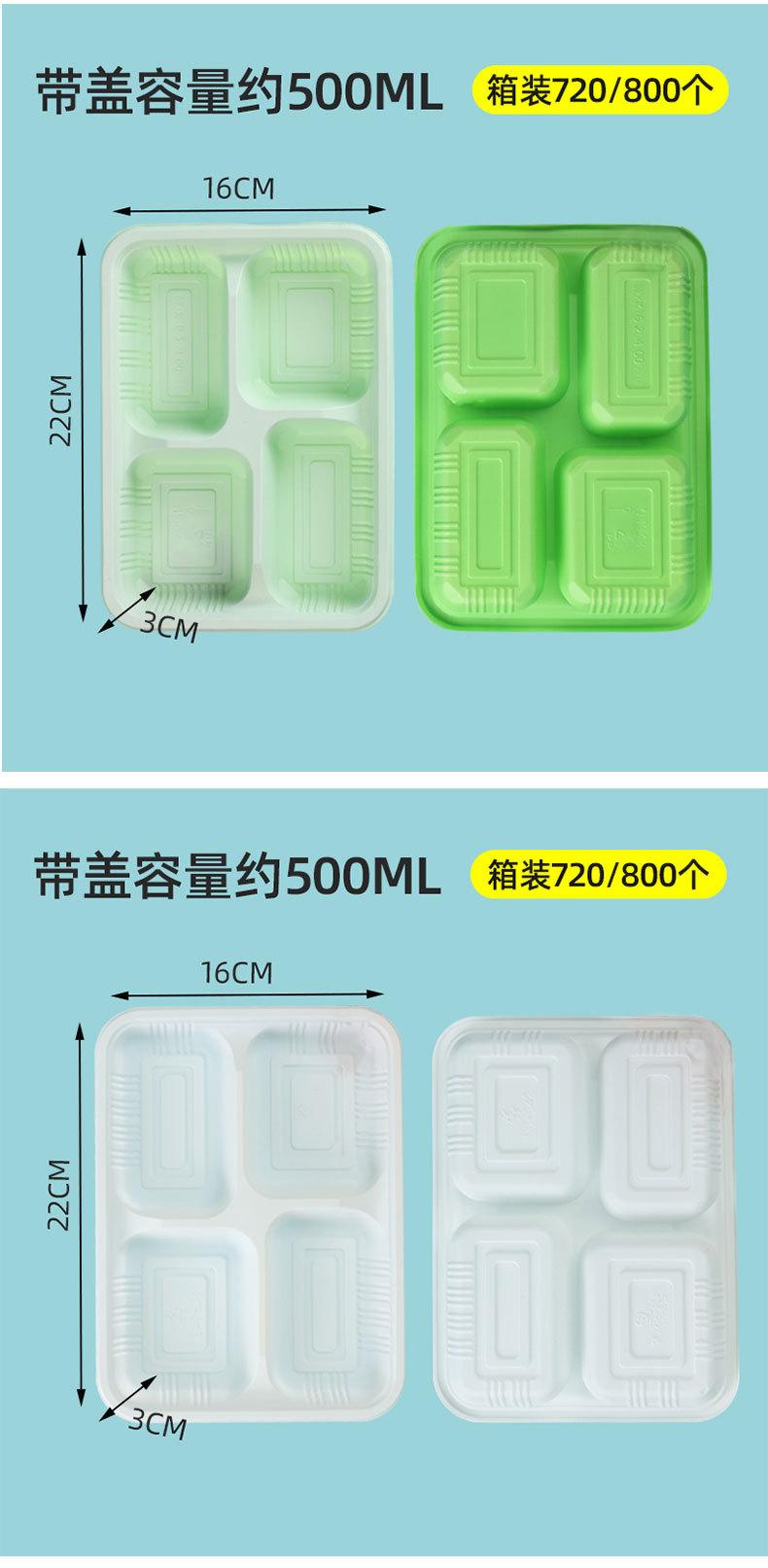 Lonchera desechable calentable de plástico de grado alimenticio, lonchera dividida tipo bento de cuatro compartimentos, caja para llevar
