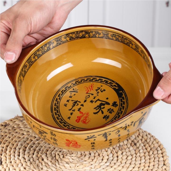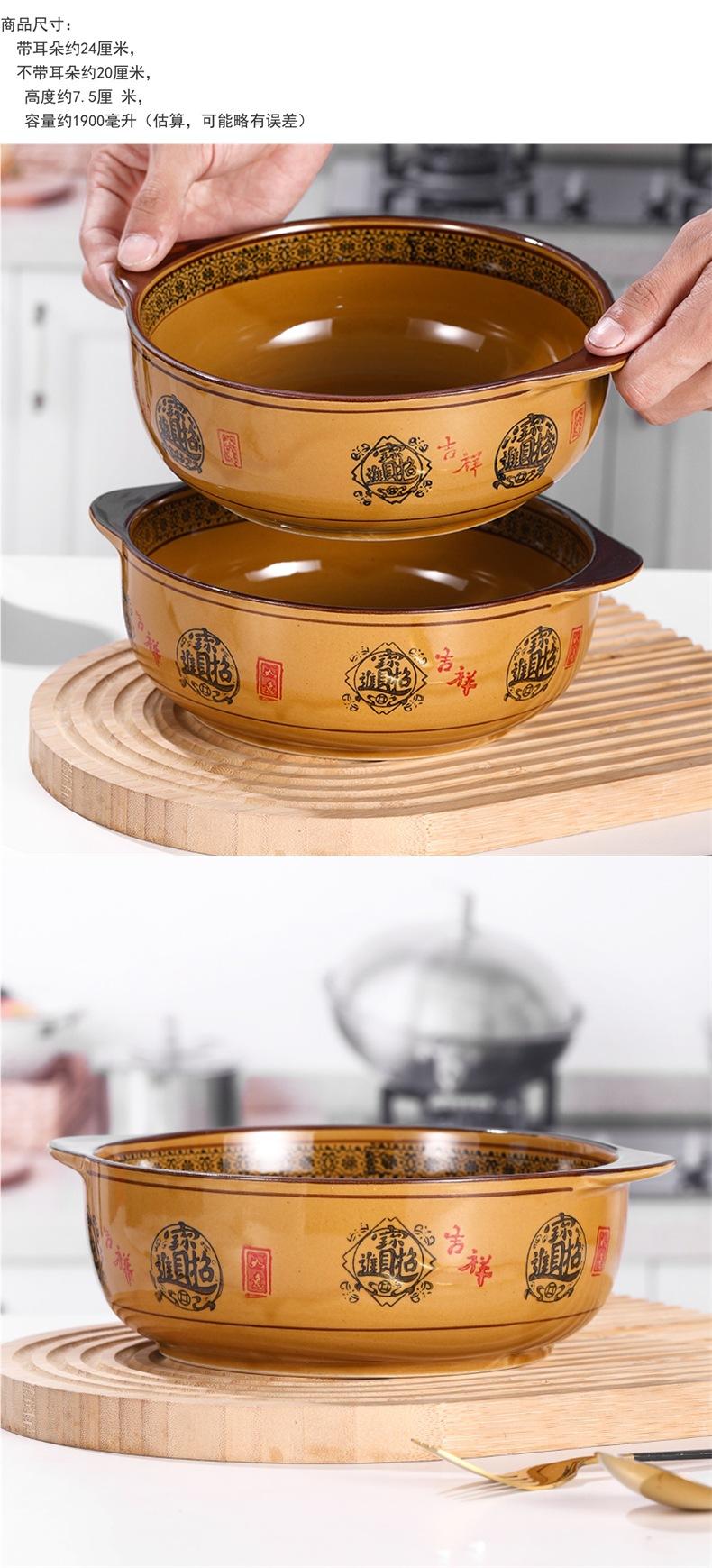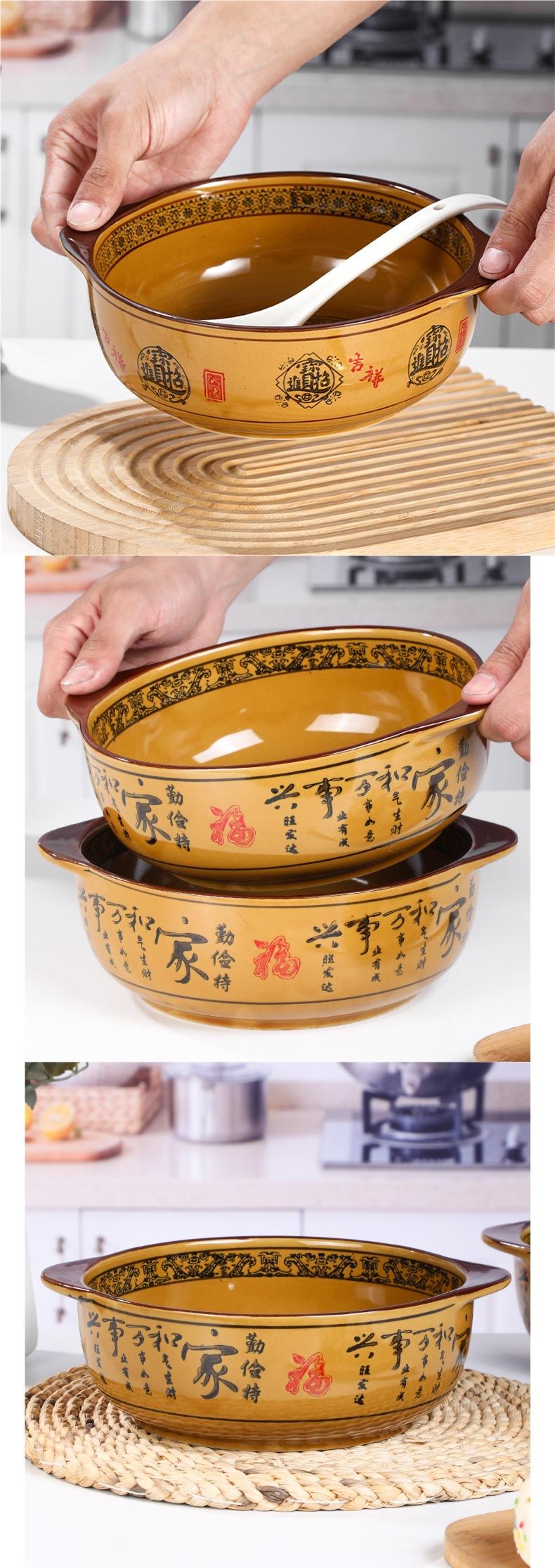 Tazón Grande de Sopa de Cerámica para Hogar Jinbao de 9.5 pulgadas con Doble Asa, Tazón para Pescado Hervido