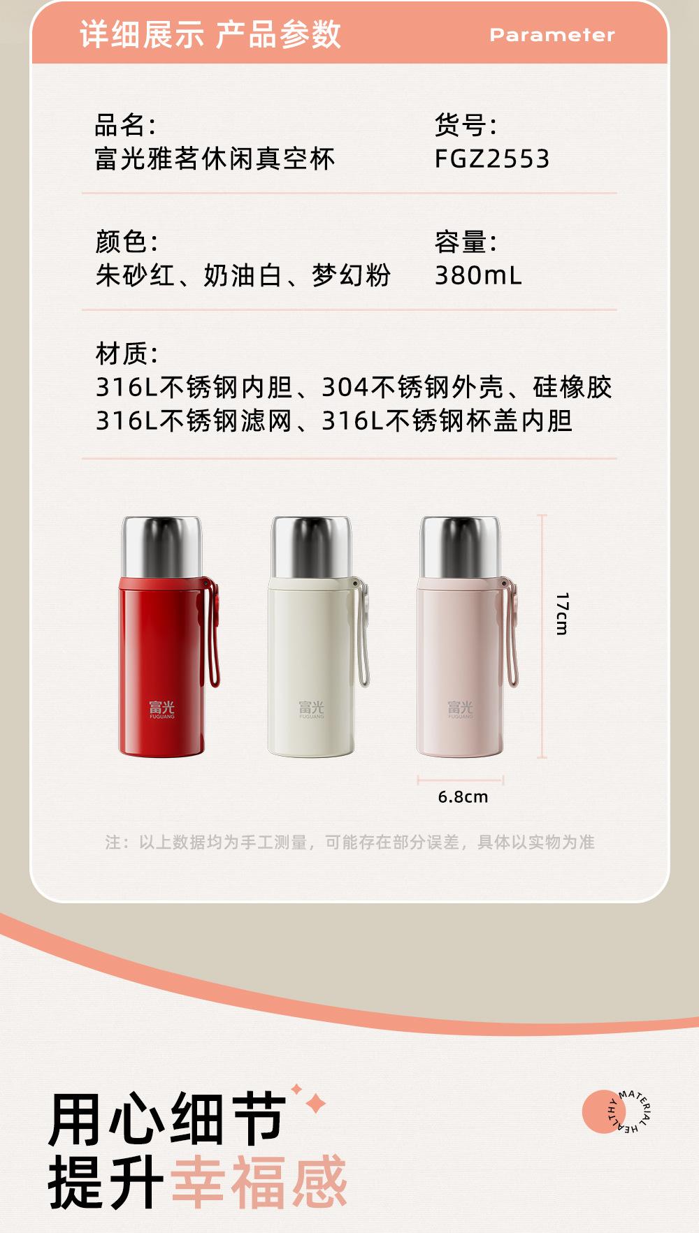 Creamy White 380ml [316L Stainless Steel], Dreamy Pink 380ml【316L Stainless Steel】, Cinnabar Red 380ml【316L St...