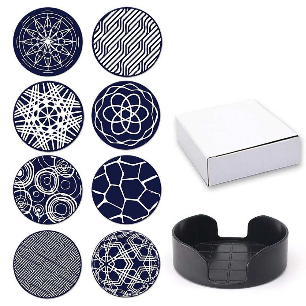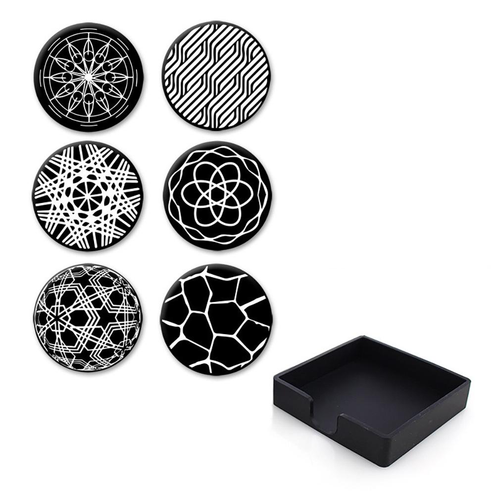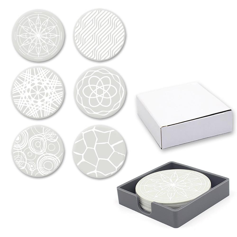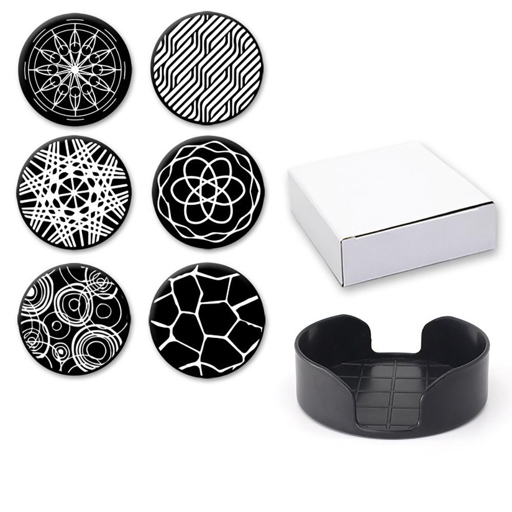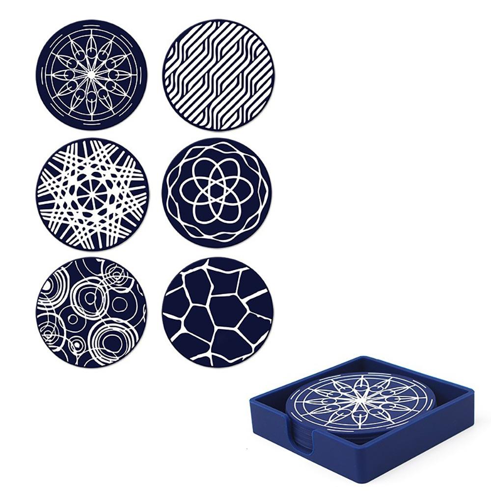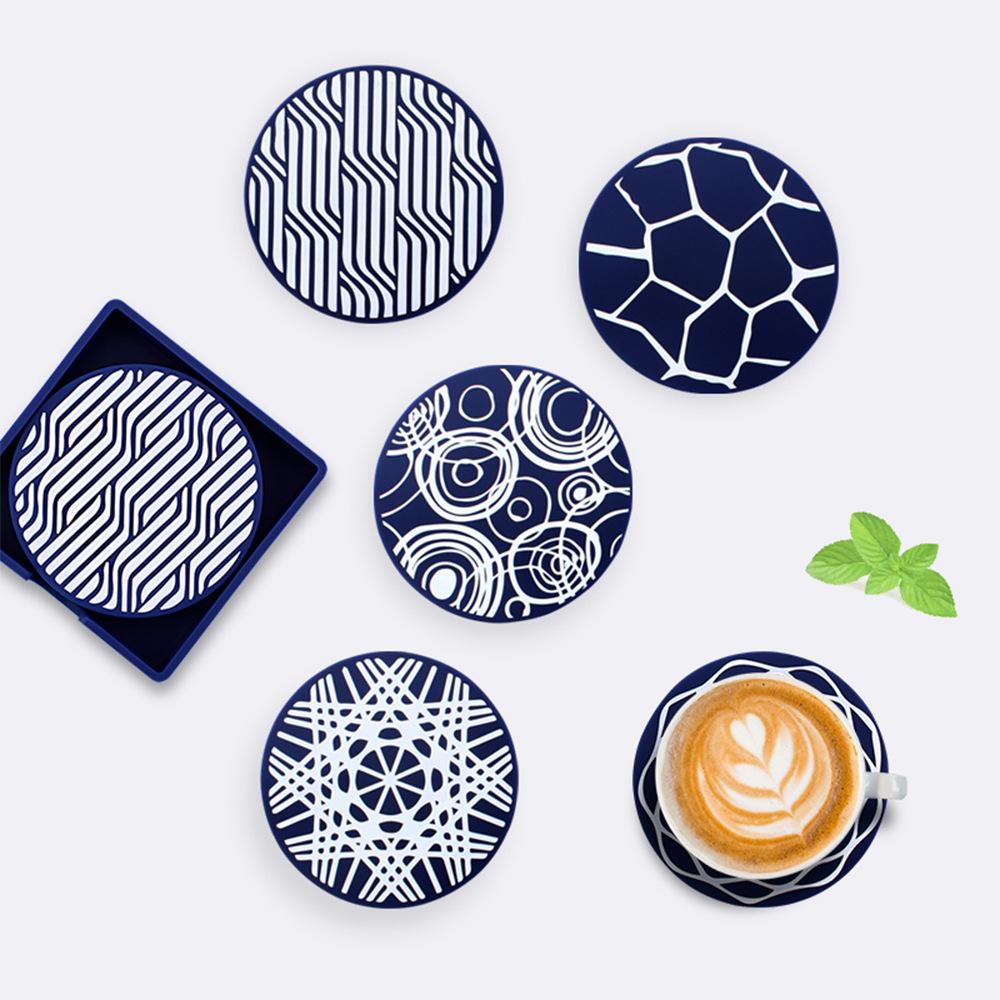 6 posavasos + 1 posavasos cuadrado + caja blanca,