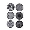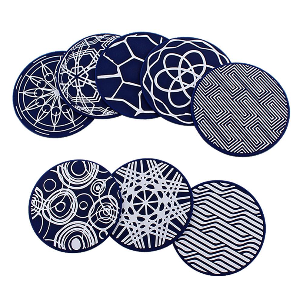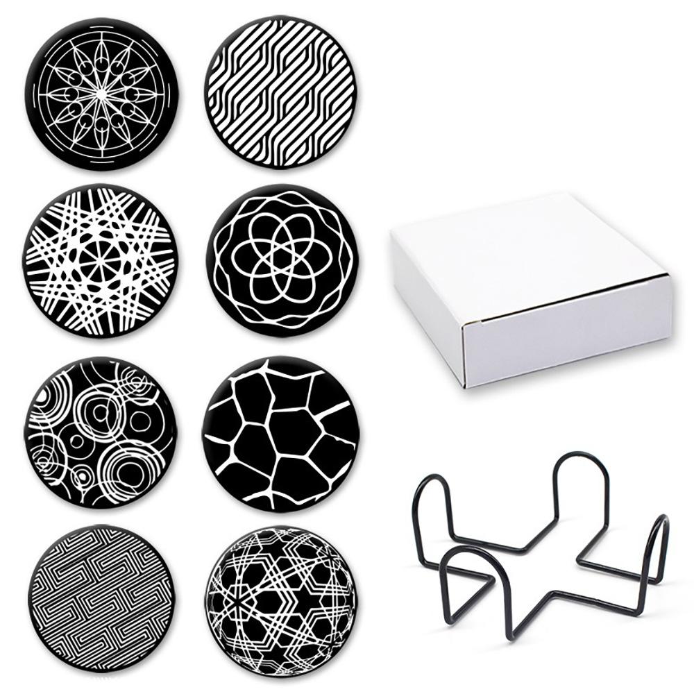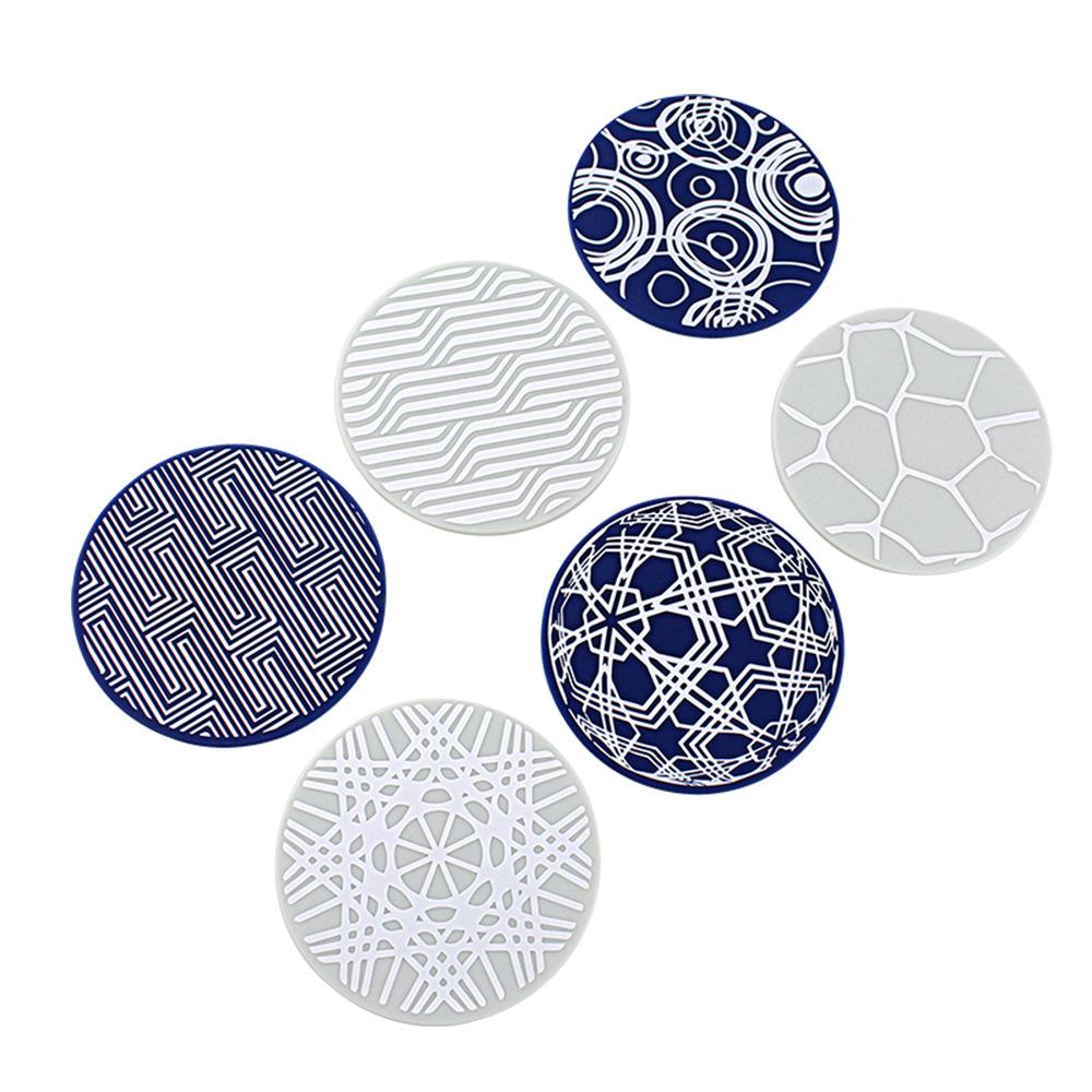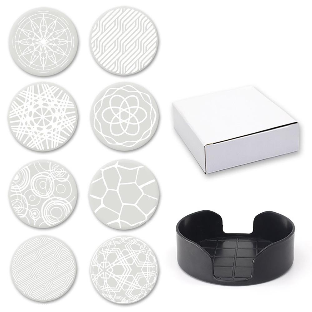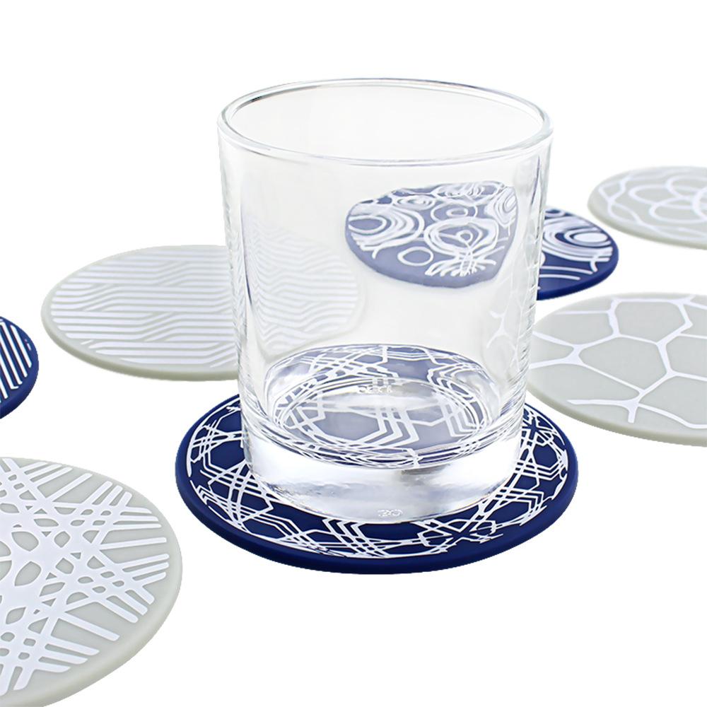 6 posavasos + 1 posavasos cuadrado + caja blanca,