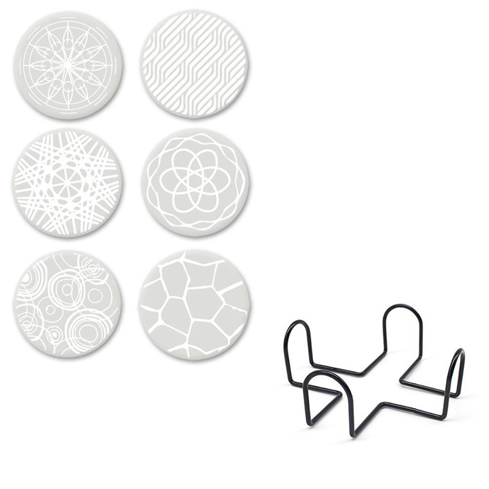 6 posavasos + 1 bandeja de plástico + embalaje en caja blanca: