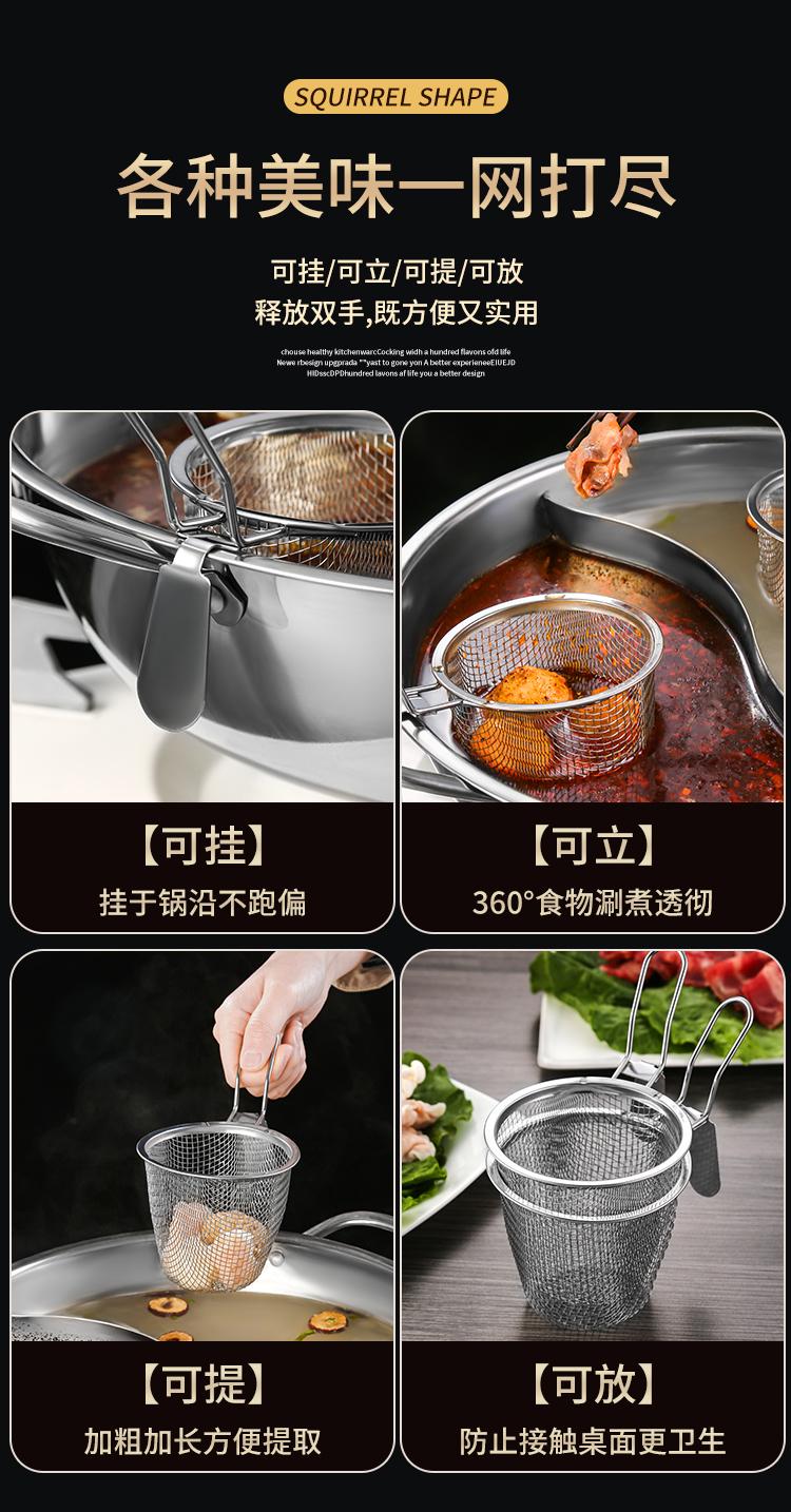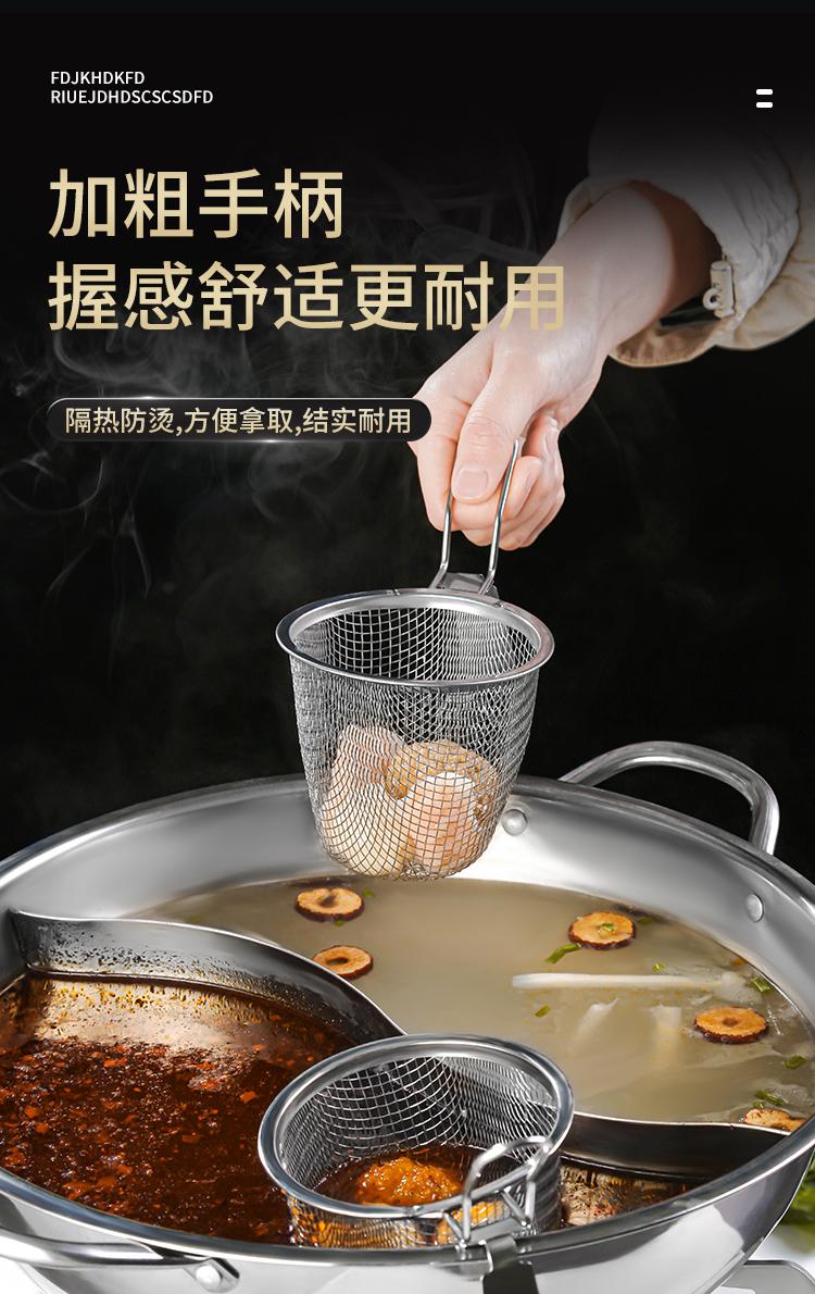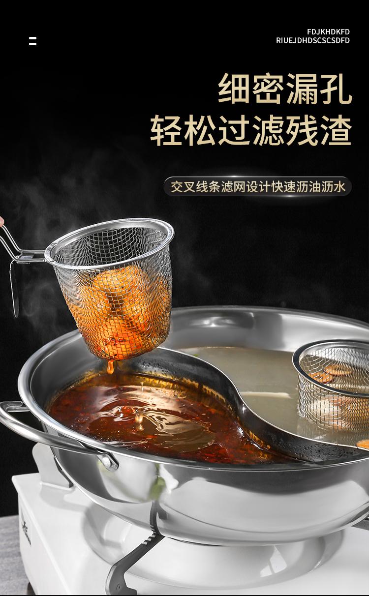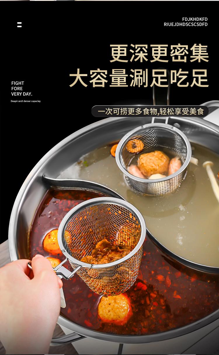 Colador para Olla Caliente de Acero Inoxidable para Hogar con Borde Colgante Malla Fina Valla para Polvo Cuchara Colador para Fideos de Cocina Filtro para Freír Cuchara Embudo