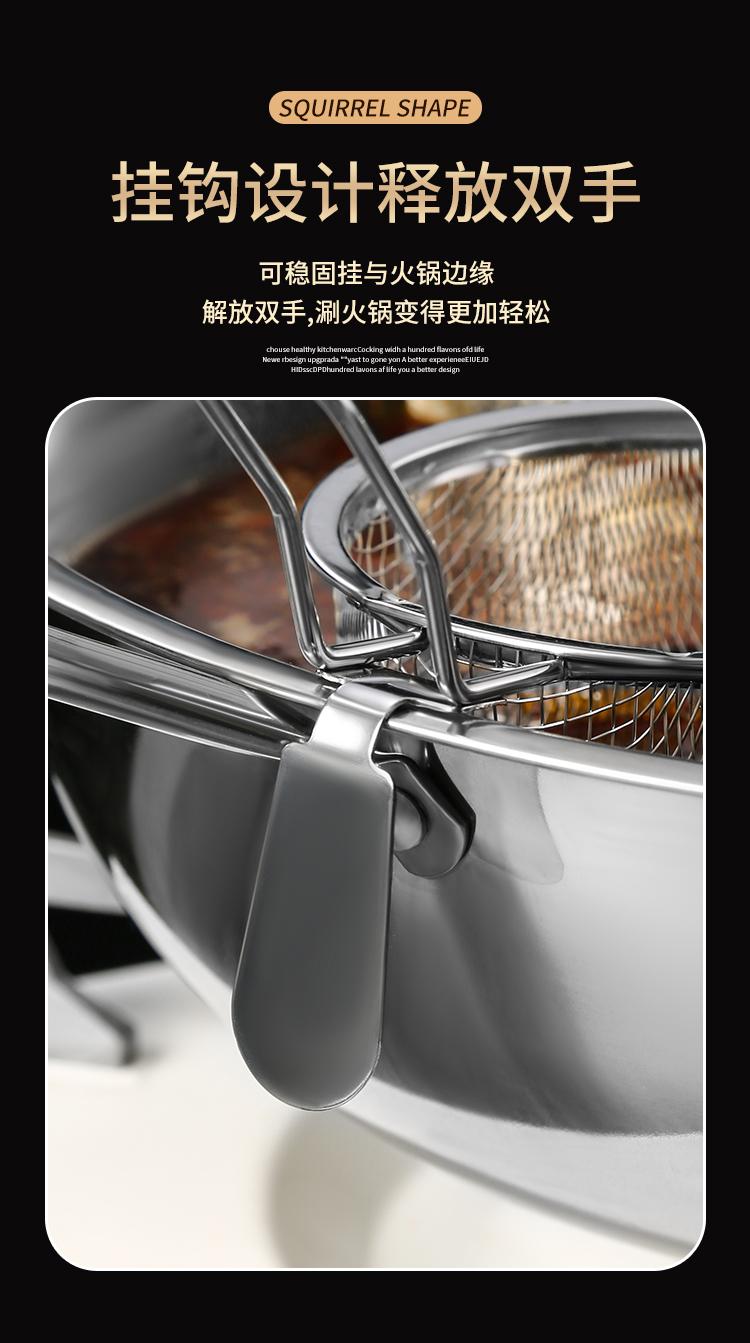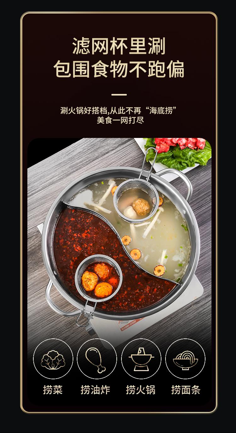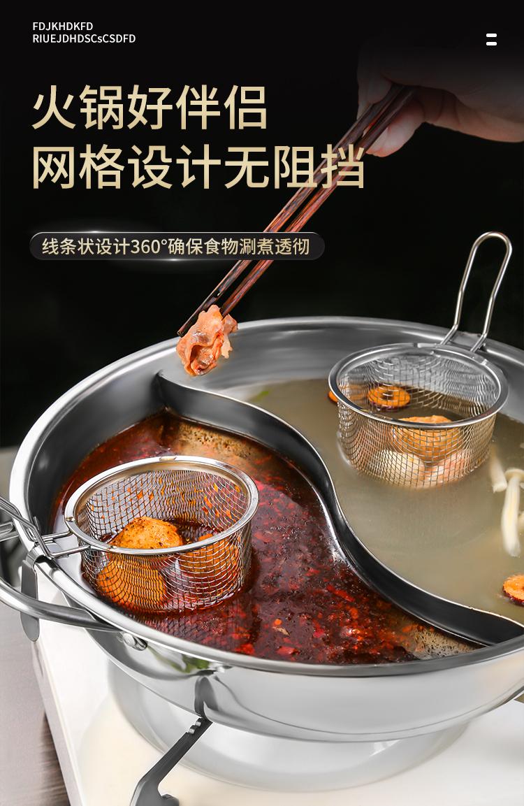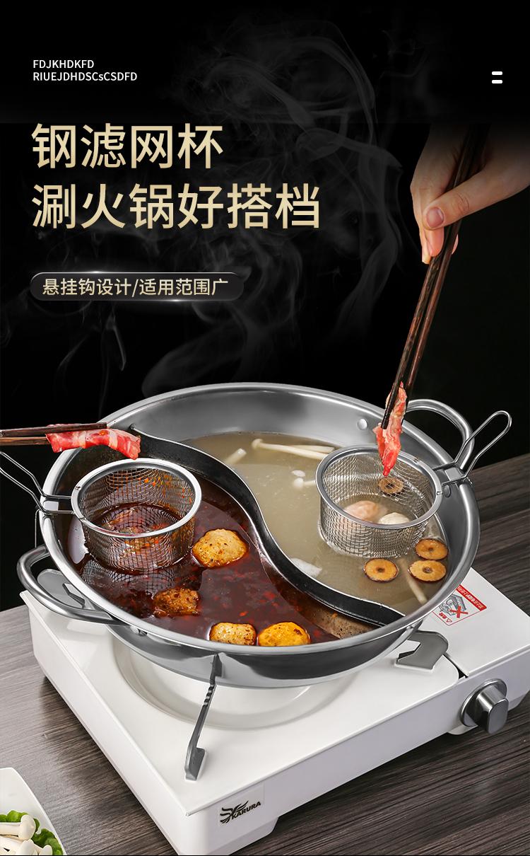 Colador para Olla Caliente de Acero Inoxidable para Hogar con Borde Colgante Malla Fina Valla para Polvo Cuchara Colador para Fideos de Cocina Filtro para Freír Cuchara Embudo