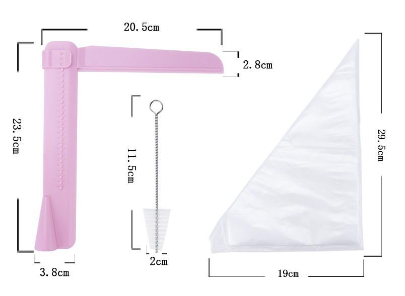 Lista de productos; (1 plato giratorio antideslizante para decorar) (50 boquillas para decorar) (3 mangas para decorar) (6 juegos de raspadores) (50 mangas desechables para decorar) (5 adaptadores de boquilla para decorar) (1 cepillo de limpieza) (1 tijeras para decorar)
