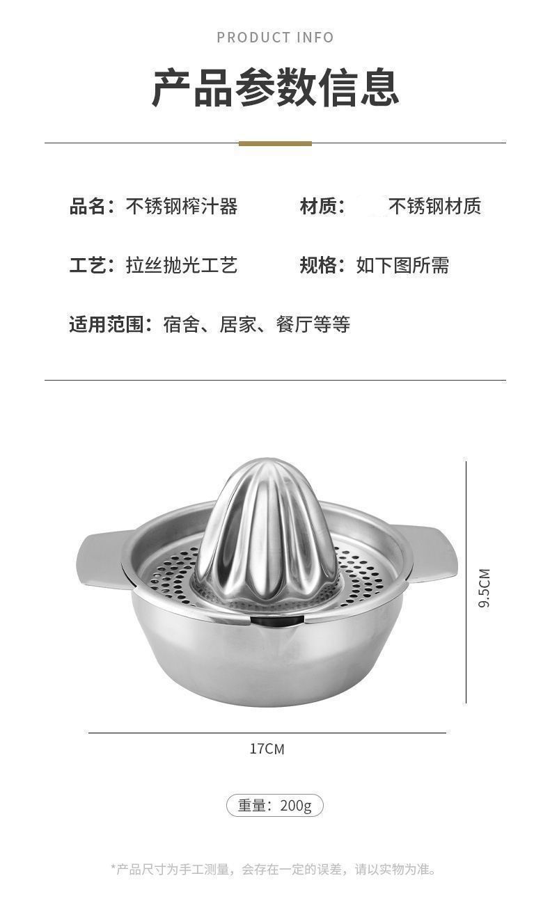 Exprimidor de Limón Exclusivo Transfronterizo de Acero Inoxidable Vaso para Jugo Exprimidor Manual Exprimidor de Frutas Hogar Portátil