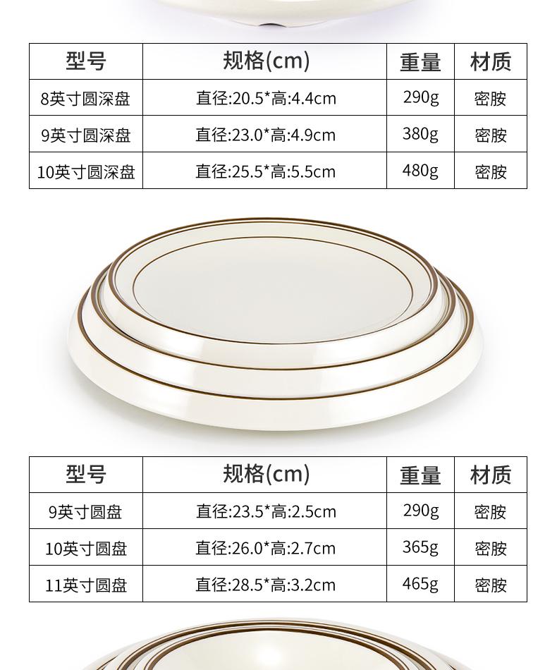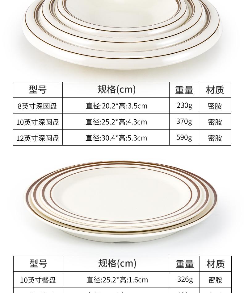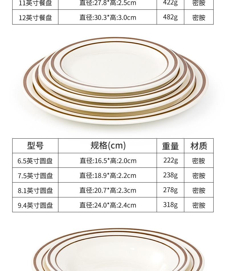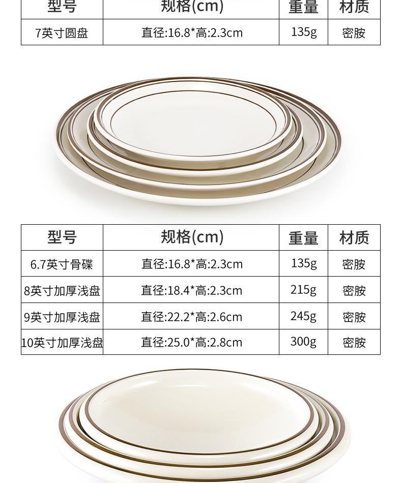 Plato Redondo de Melamina Hotel Comida Rápida Plato para Cocinar Comercial Creativo Restaurante de Té Tazón para Arroz Plato Hondo Plástico