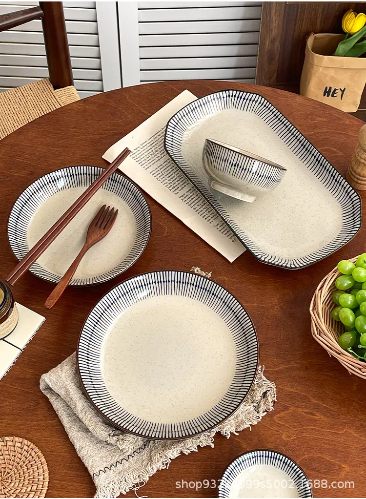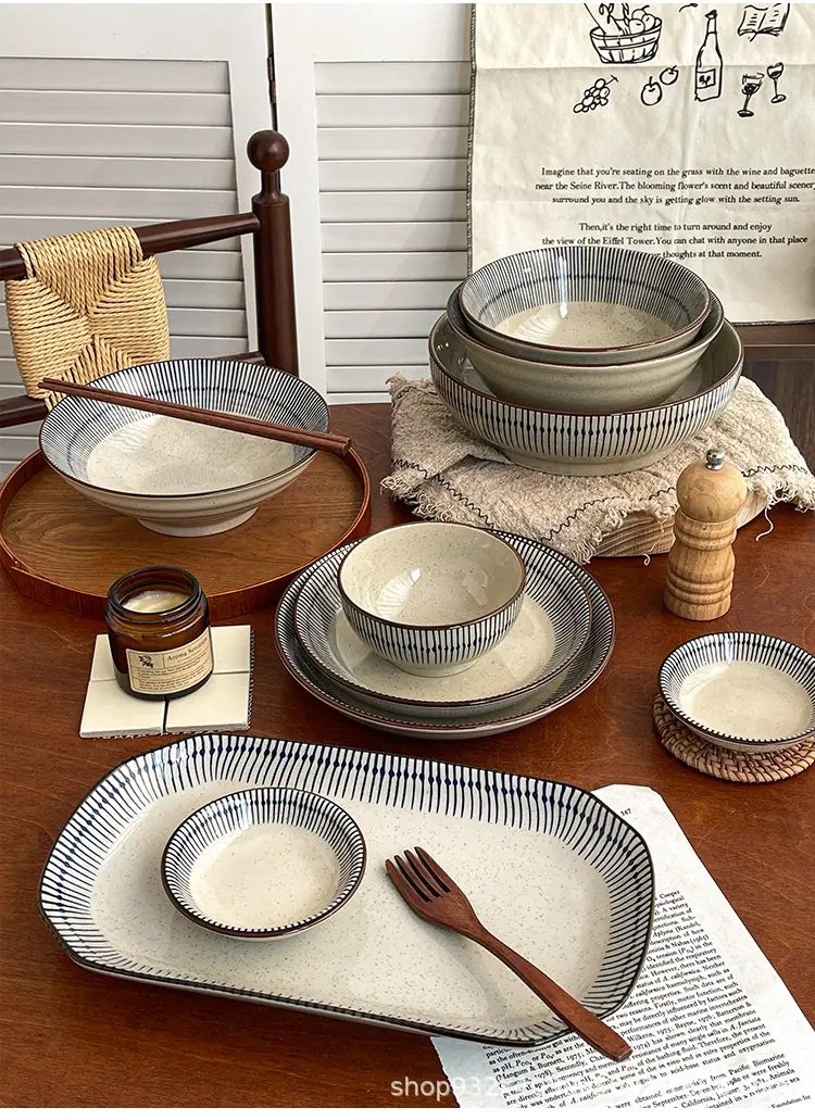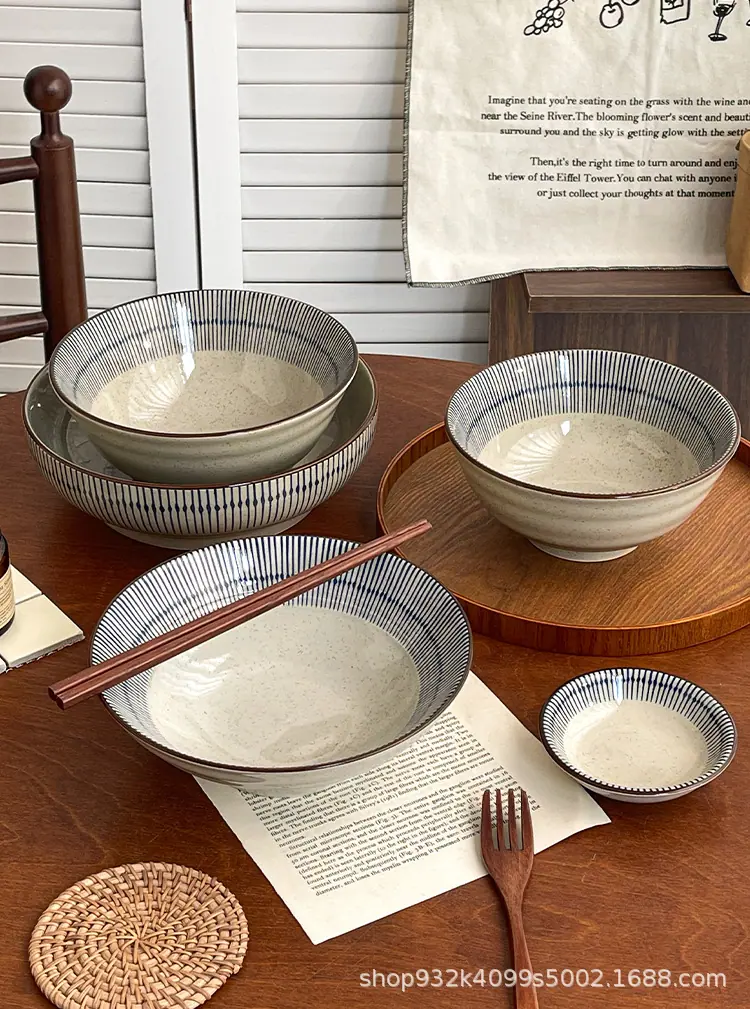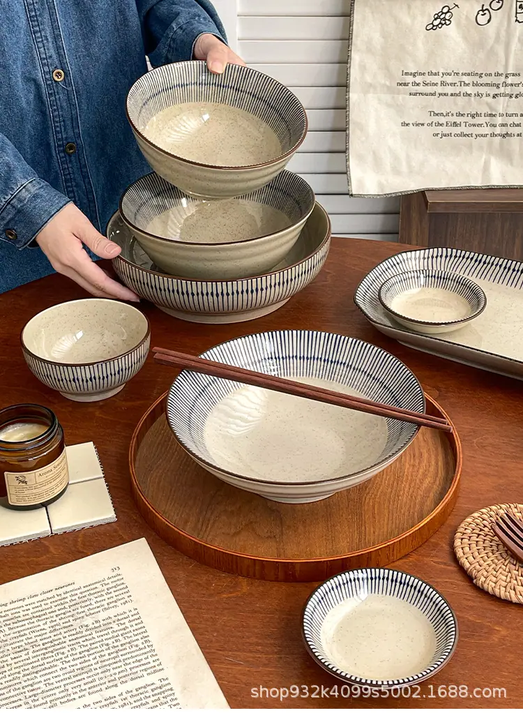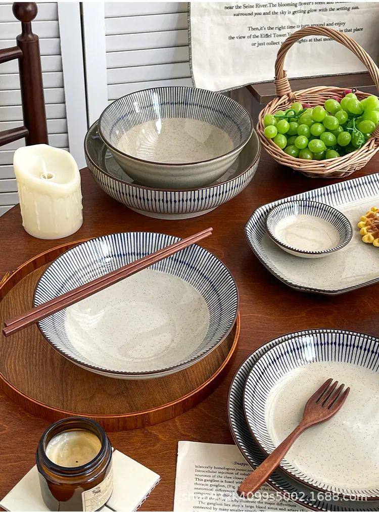 Juego de Vajilla de Cerámica Japonesa Cuencos y Platos Bajo Esmalte para el Hogar Cuencos para Arroz Platos de Cena de Alta Gama Cuencos para Fideos Cuencos para Ensalada Cuencos para Sopa
