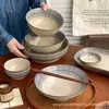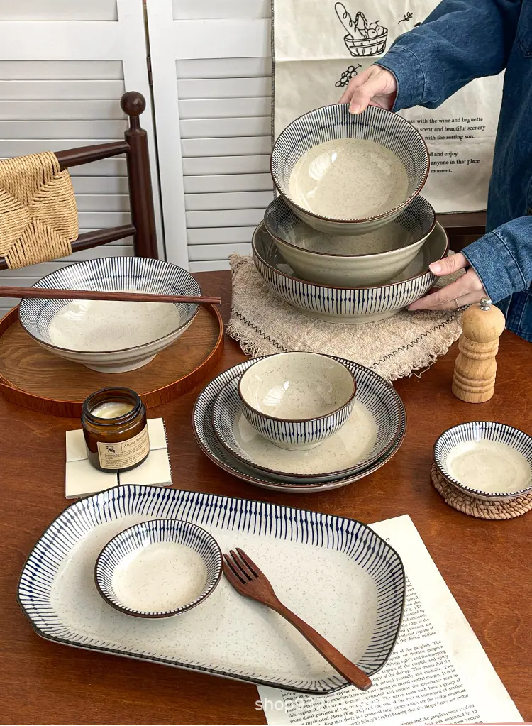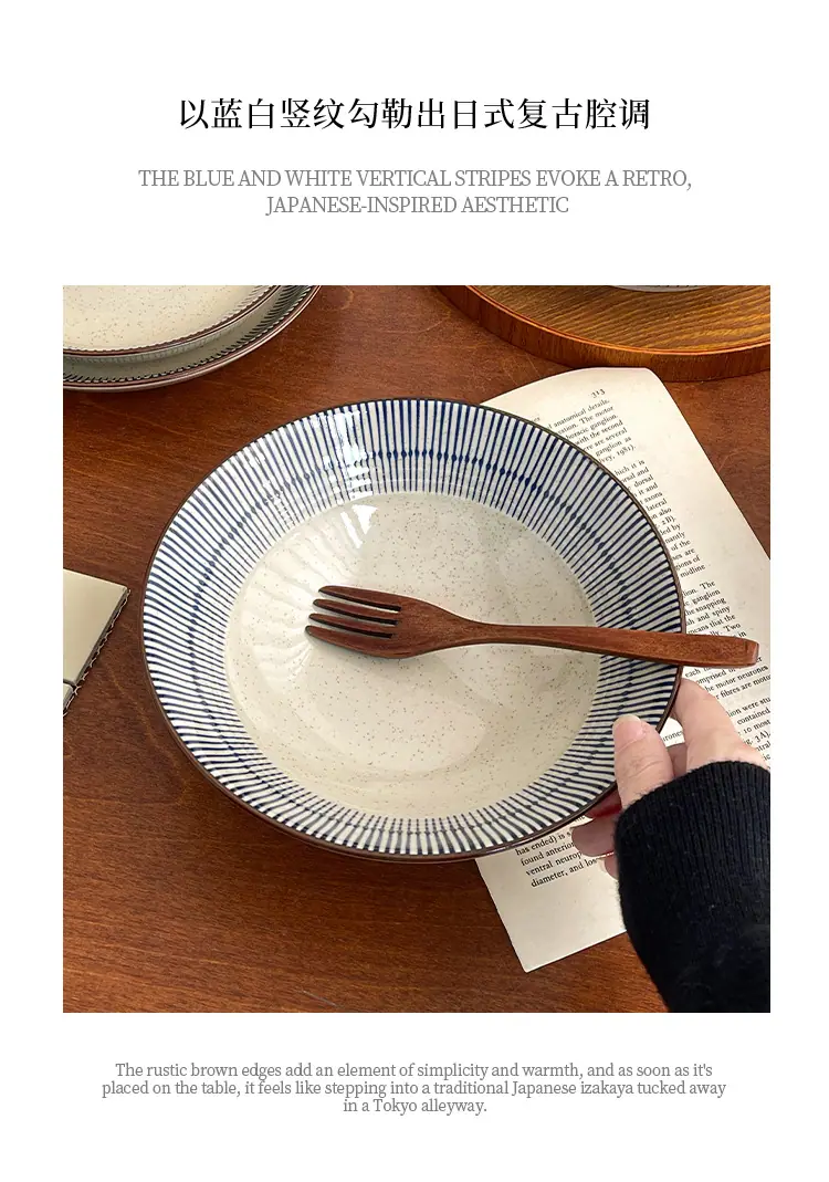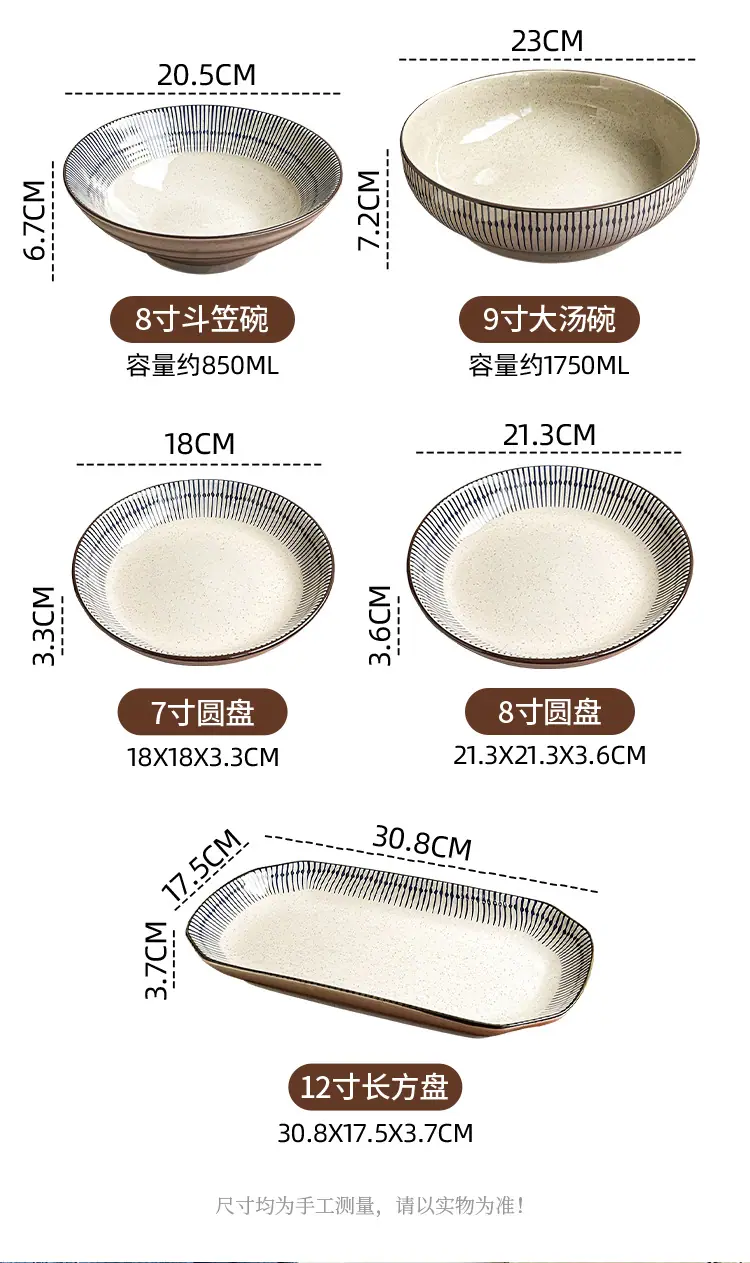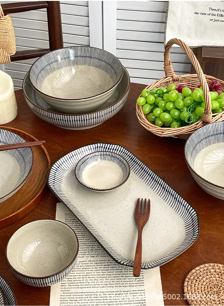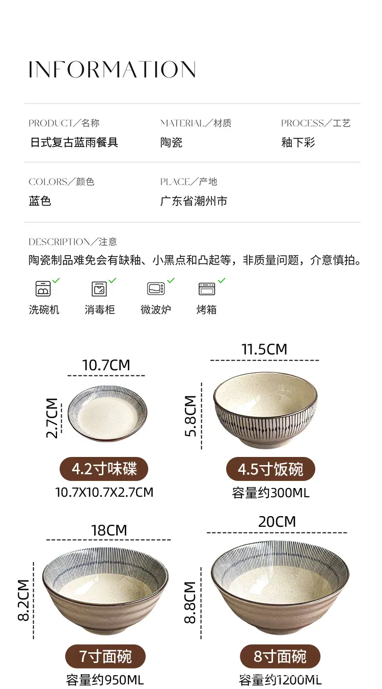 Juego de Vajilla de Cerámica Japonesa Cuencos y Platos Bajo Esmalte para el Hogar Cuencos para Arroz Platos de Cena de Alta Gama Cuencos para Fideos Cuencos para Ensalada Cuencos para Sopa