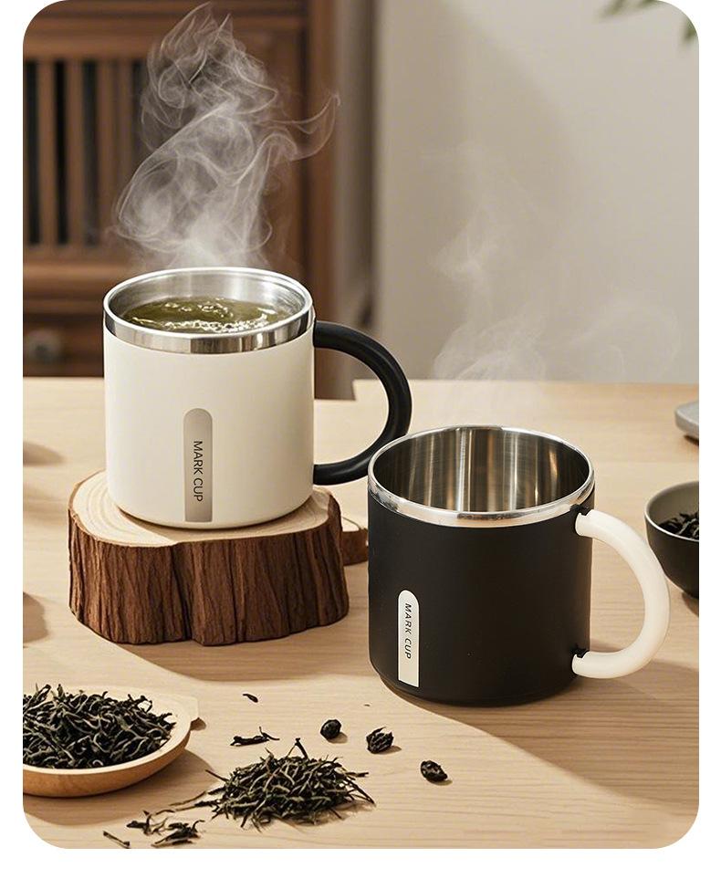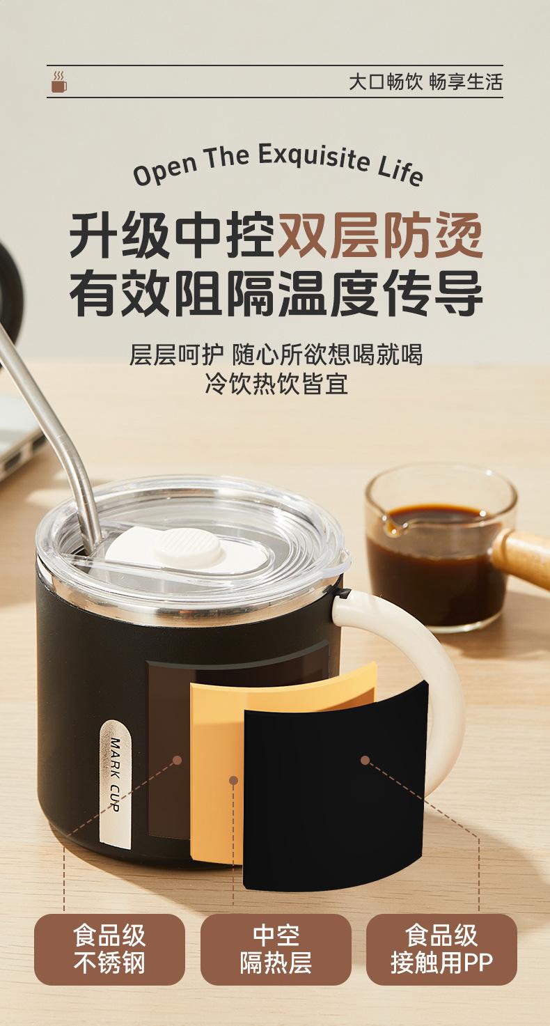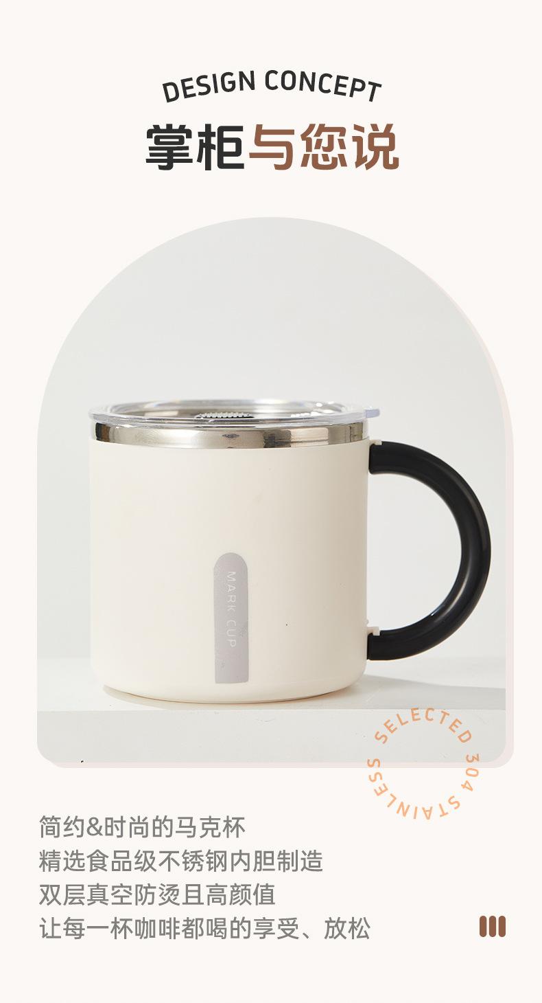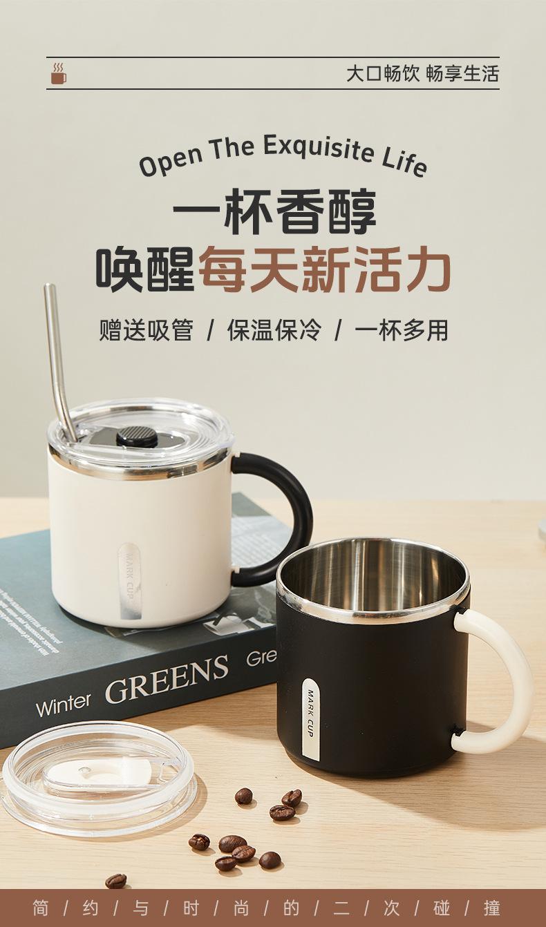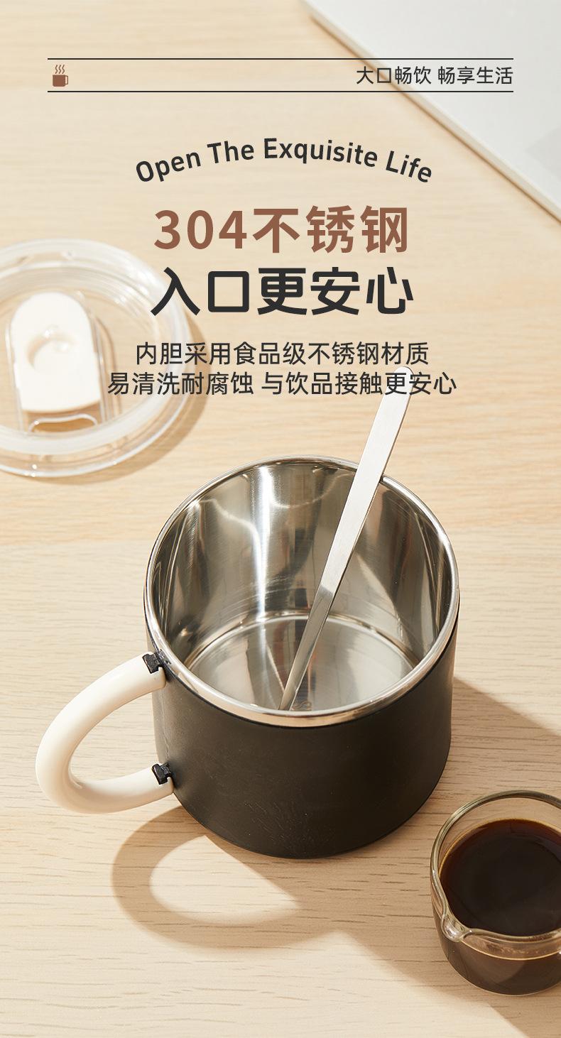 Taza de alta gama con tapa, aislada de doble capa, con sentido del diseño, nicho, creativa, acero inoxidable 304, taza de alto valor