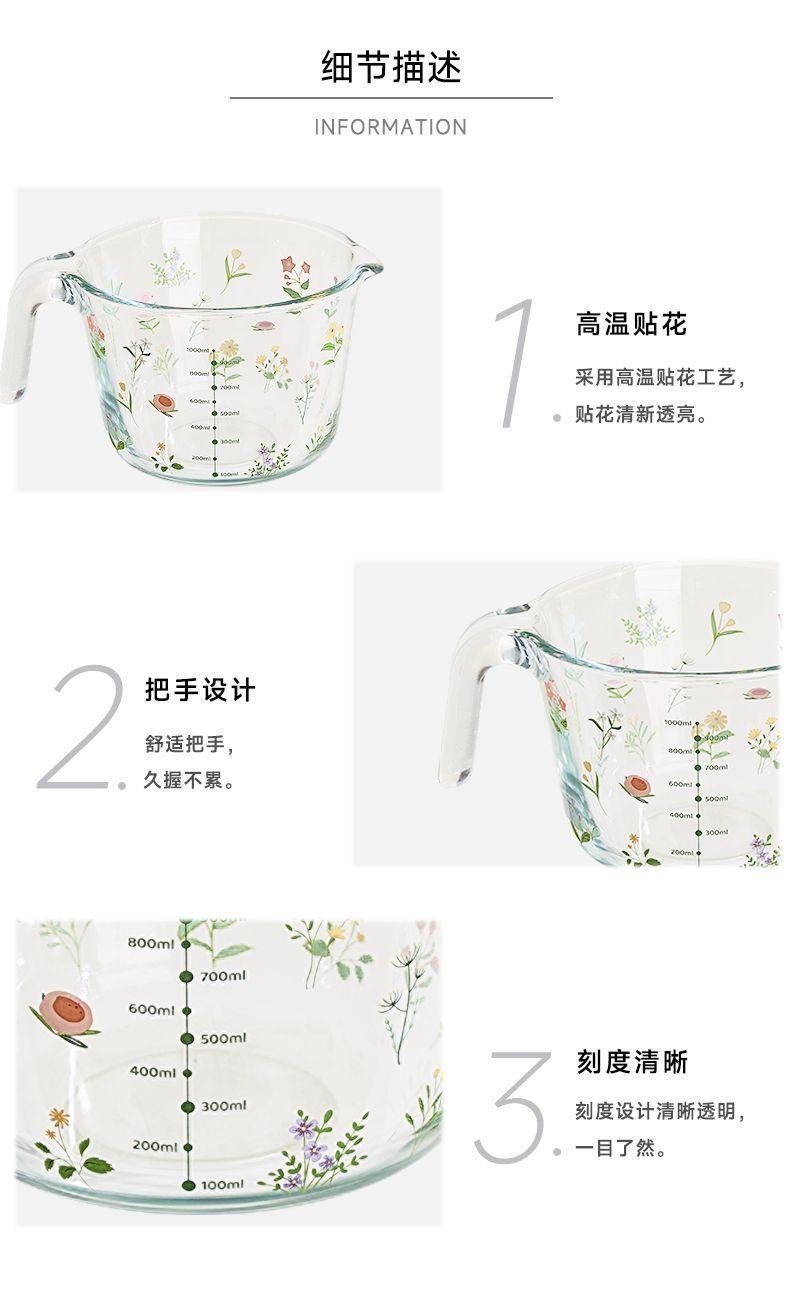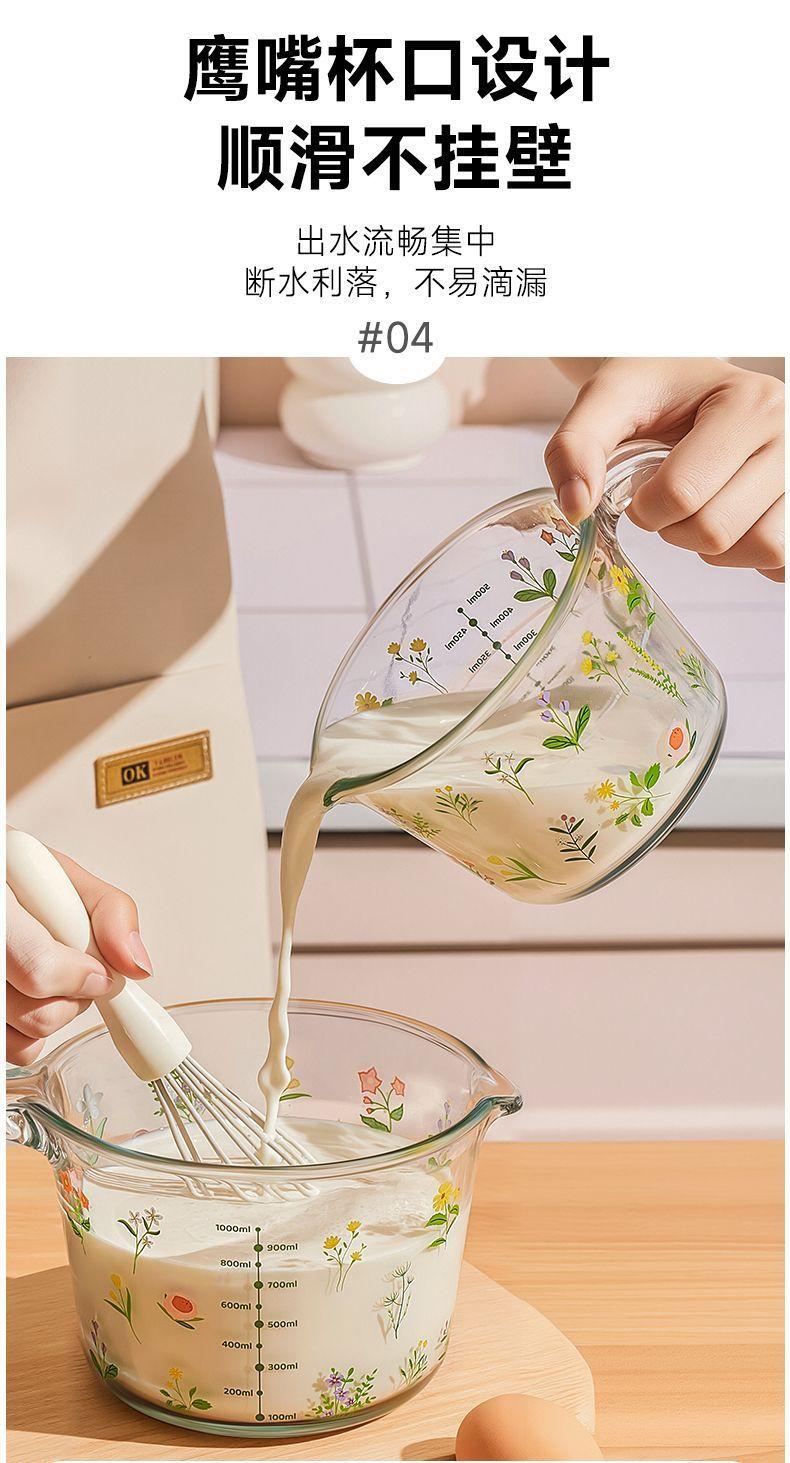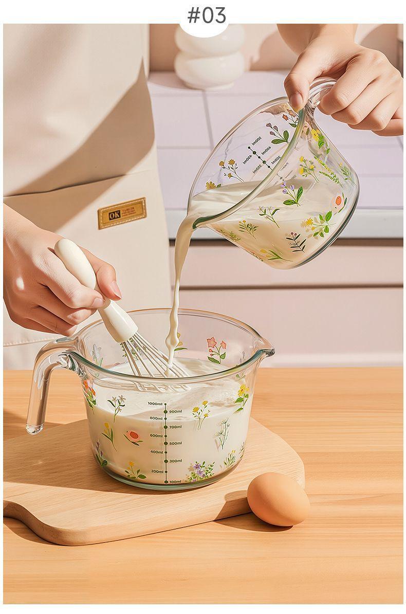 Taza Medidora de Vidrio para Batir Huevos Báscula para Hornear Taza de Vidrio Hogar Gran Capacidad Cocina Taza con Asa Vaso Medidor Resistente al Calor