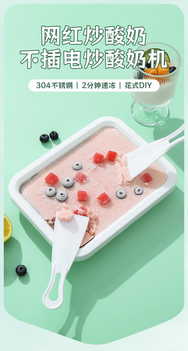 Máquina de yogur frito para el hogar, pequeña para niños, mini casera, DIY, verano, máquina de helado, placa de hielo, sin enchufe, máquina de hielo frito