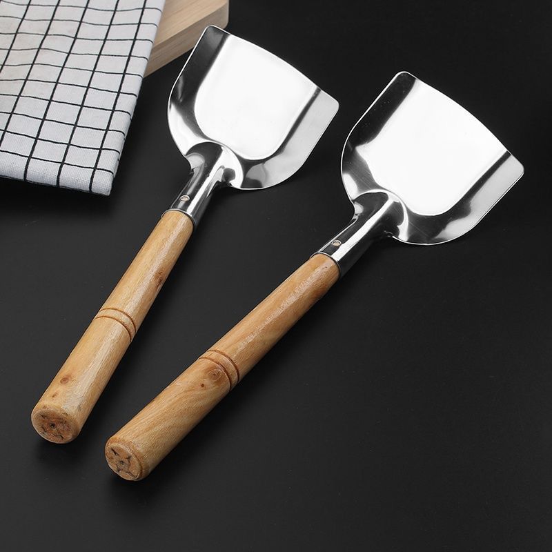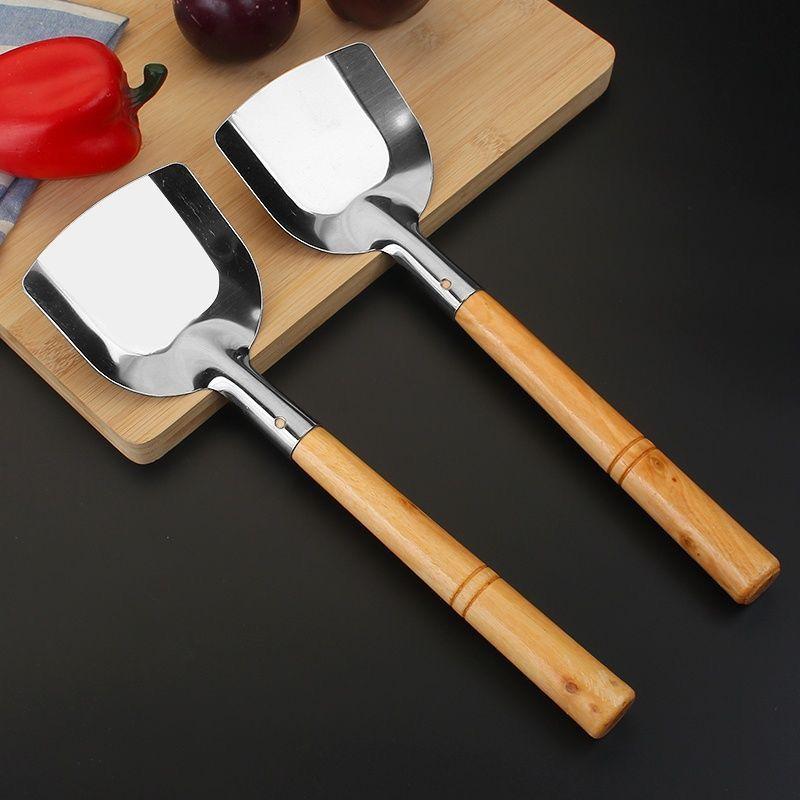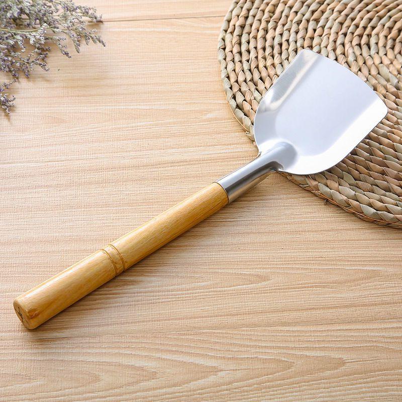 Espátula de Acero Inoxidable con Mango de Madera Espátula Antiescaldaduras sin Recubrimiento a la Antigua Pala de Chef Mango Largo Madera Espátula de Arroz Engrosada