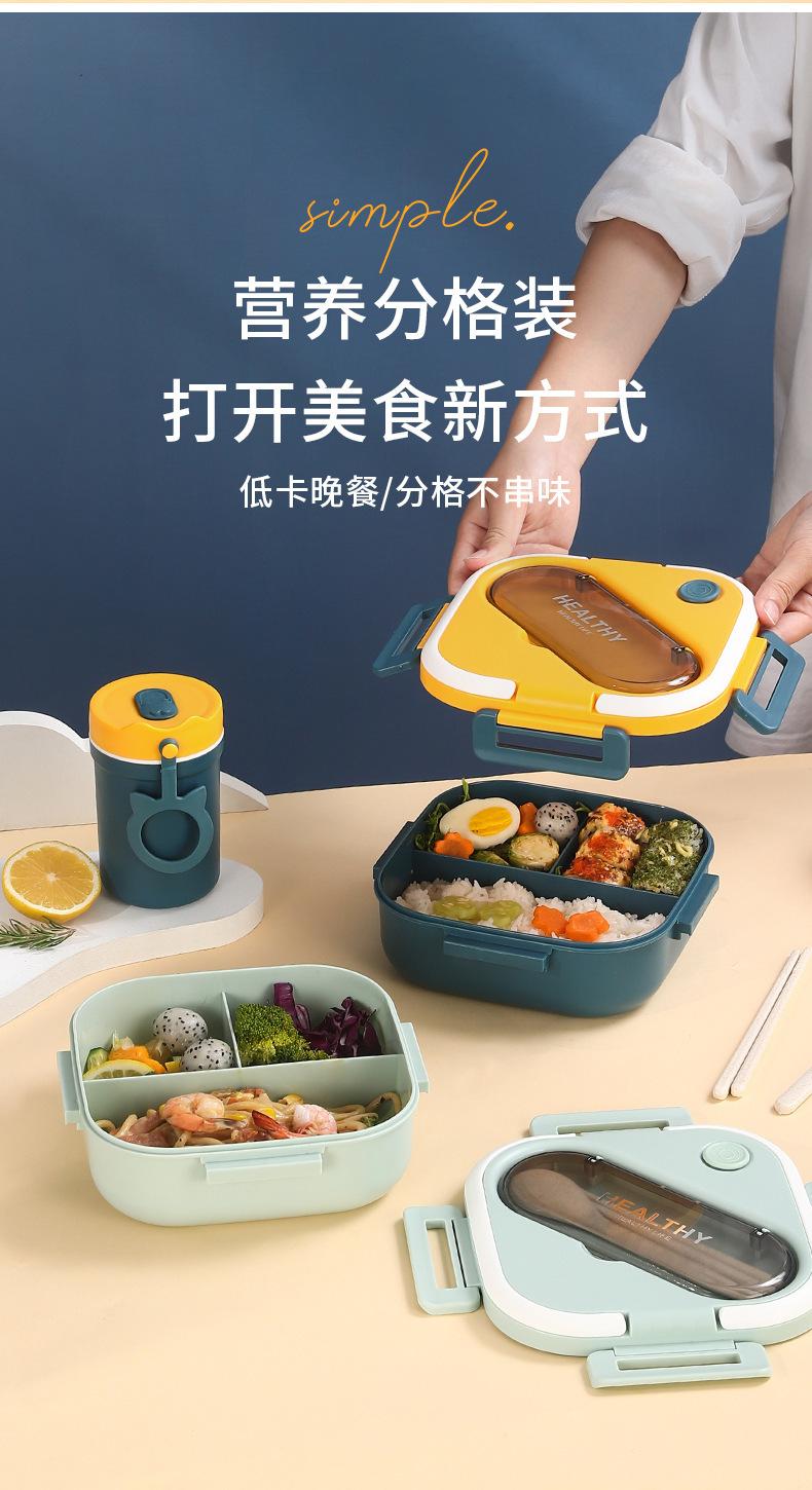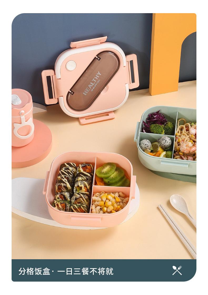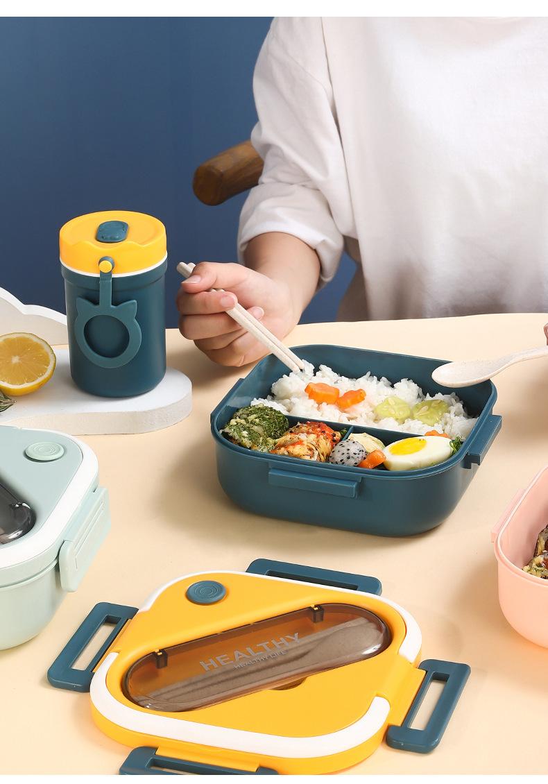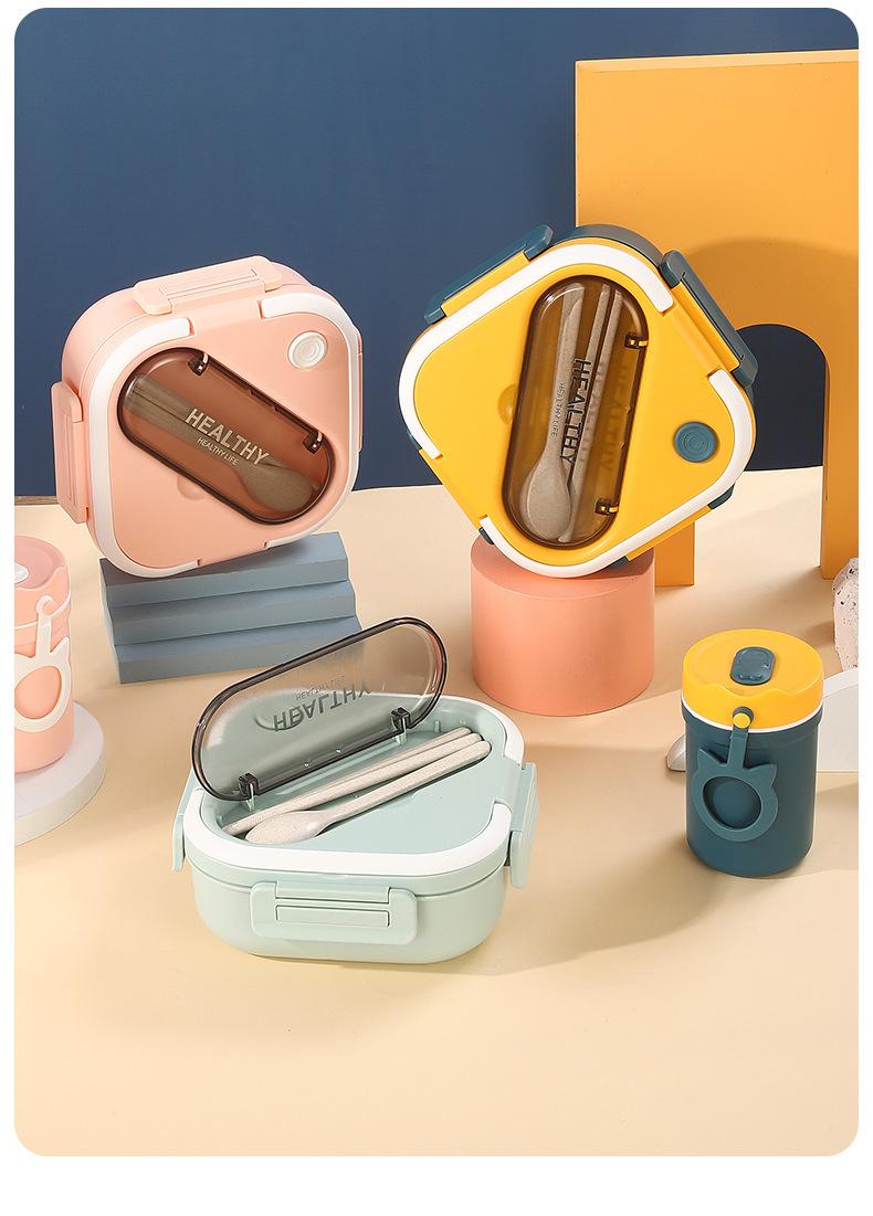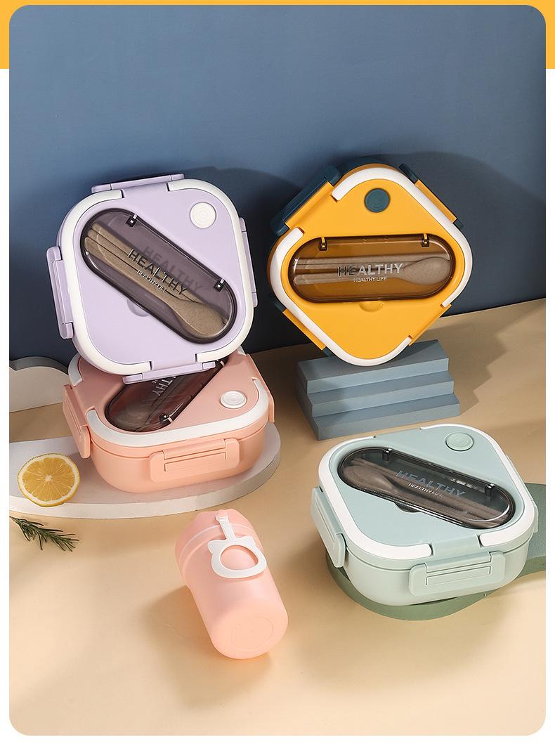 Lonchera apta para microondas para estudiantes y trabajadores de oficina, lonchera cuadrada con cubiertos de tenedor y cuchara, lonchera con compartimento sellado