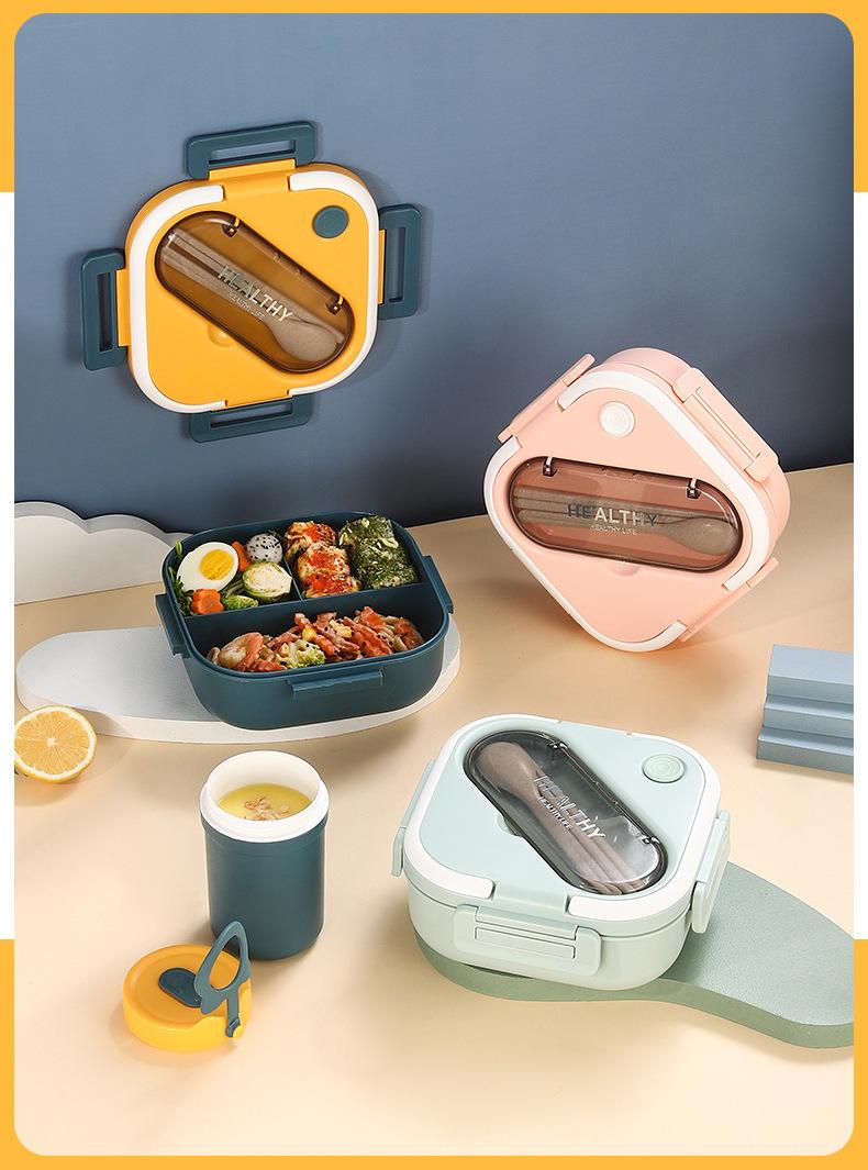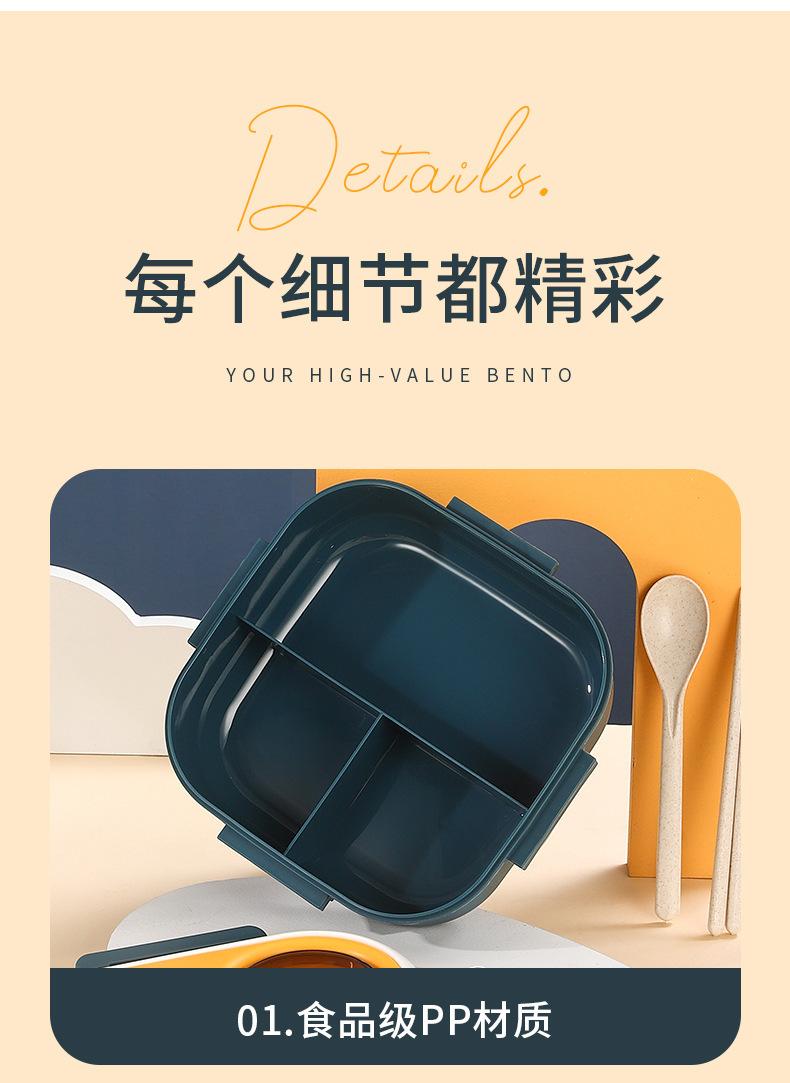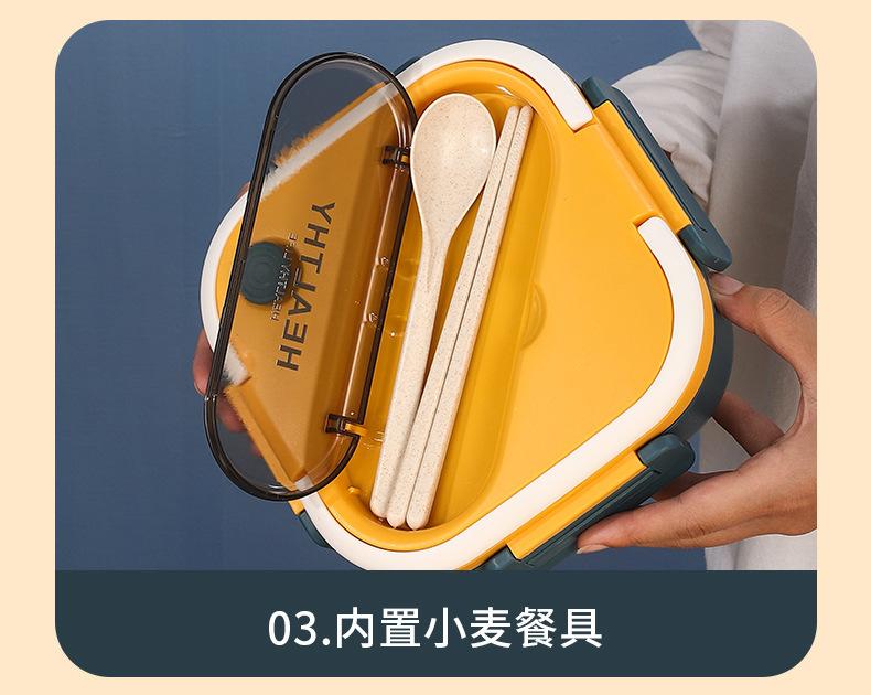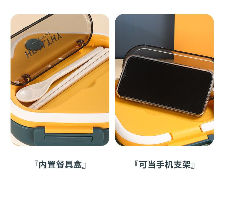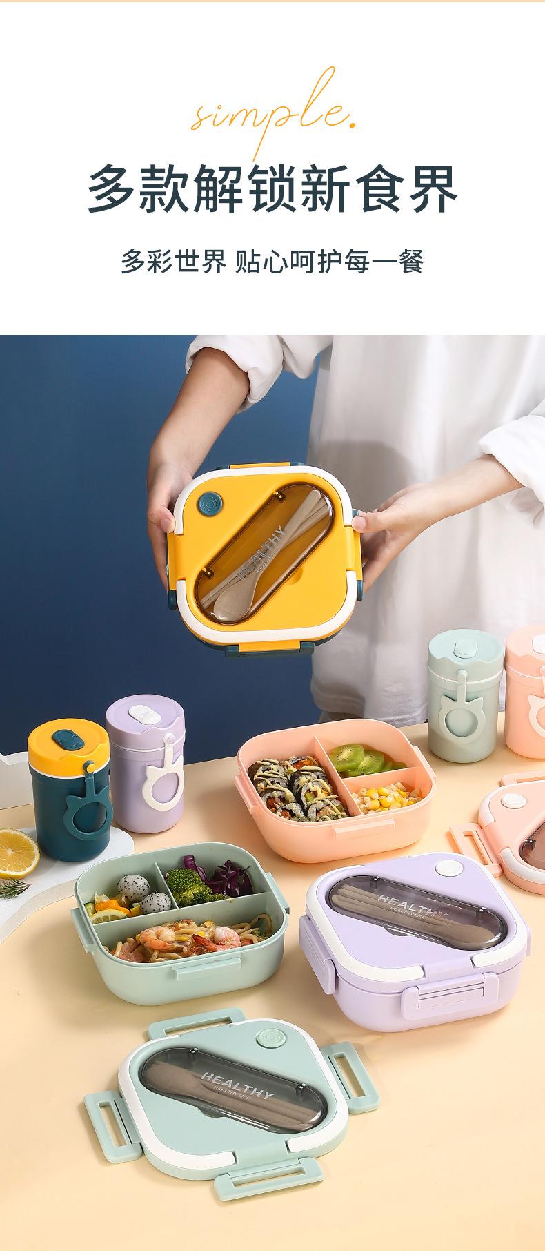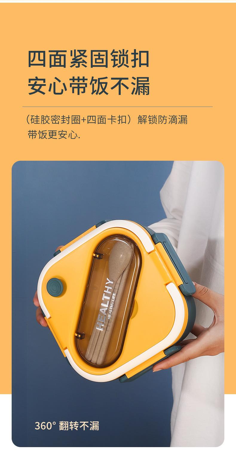 Lonchera apta para microondas para estudiantes y trabajadores de oficina, lonchera cuadrada con cubiertos de tenedor y cuchara, lonchera con compartimento sellado