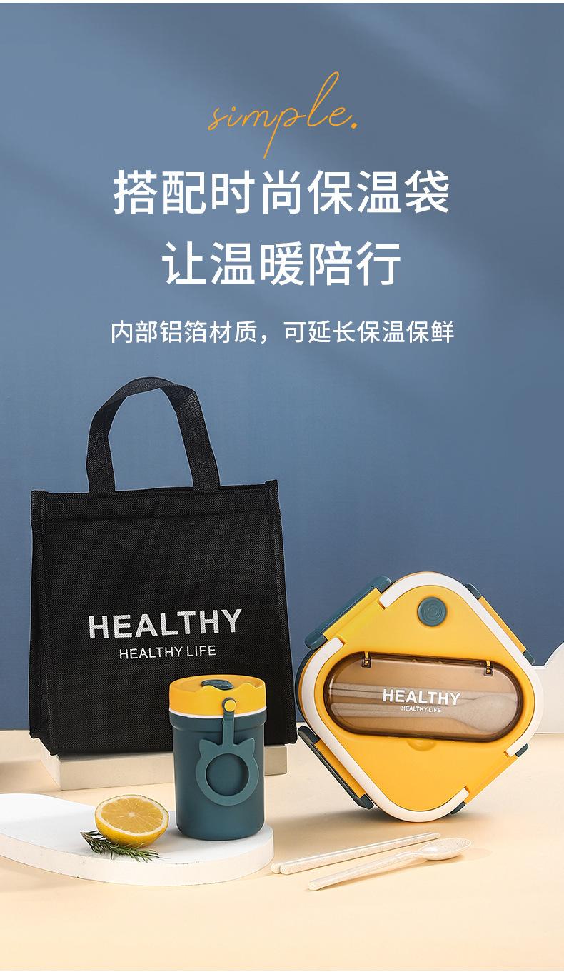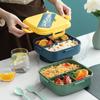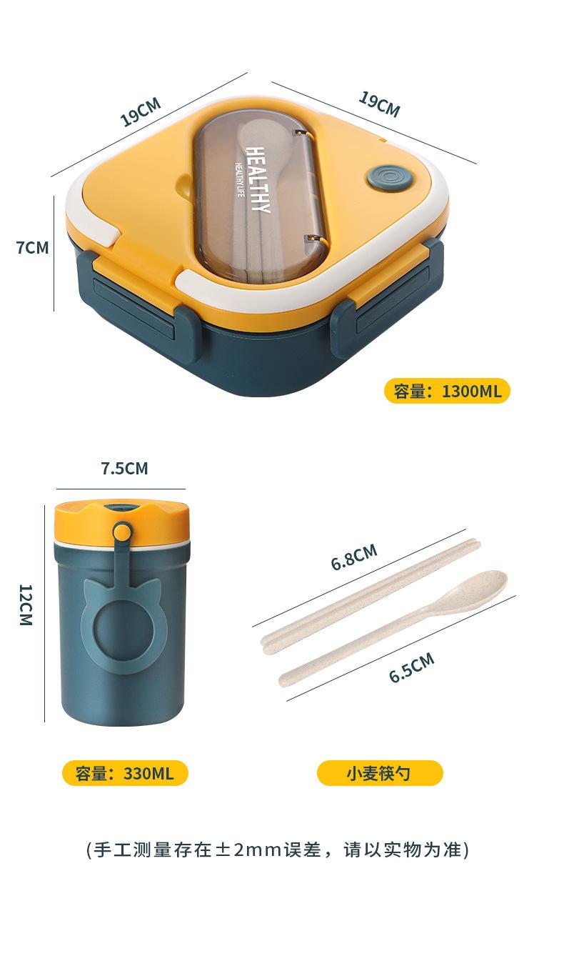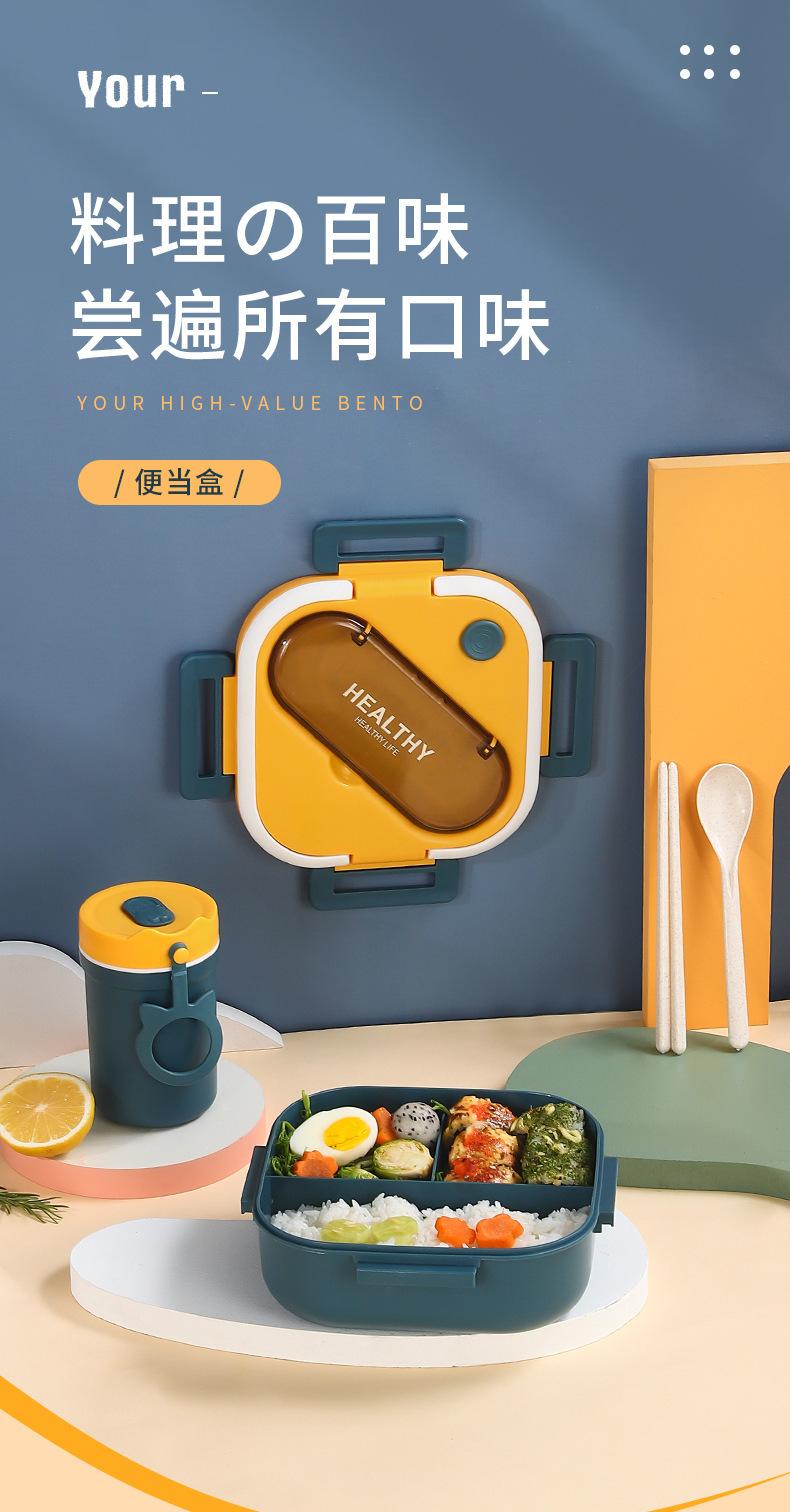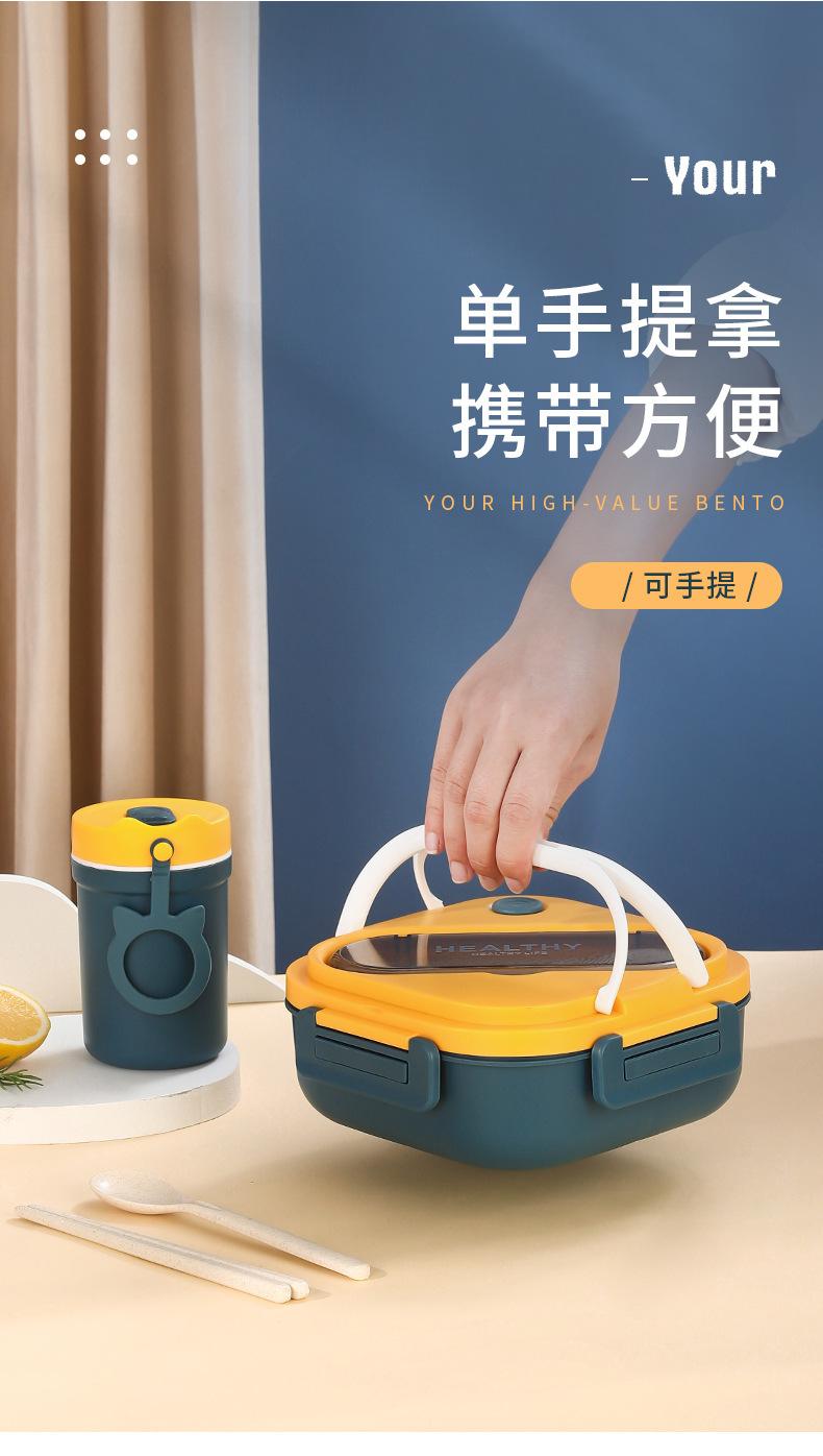 Lonchera apta para microondas para estudiantes y trabajadores de oficina, lonchera cuadrada con cubiertos de tenedor y cuchara, lonchera con compartimento sellado