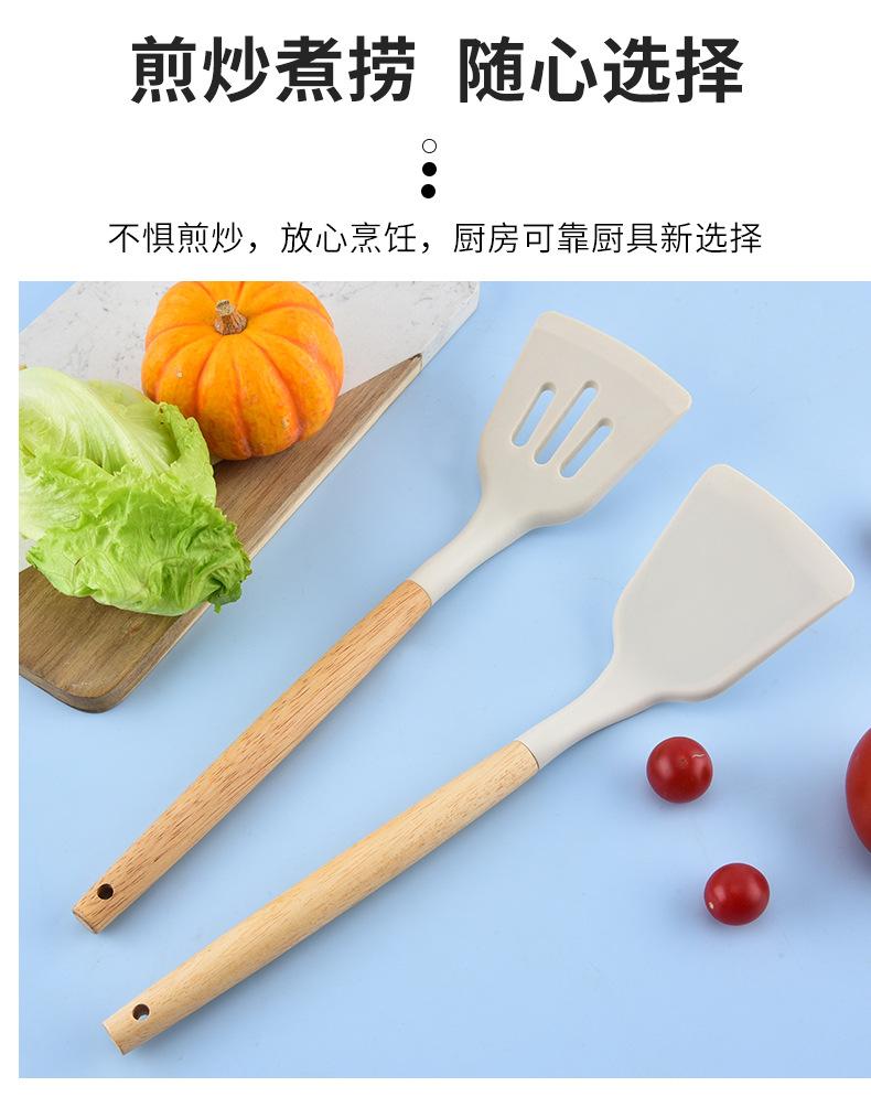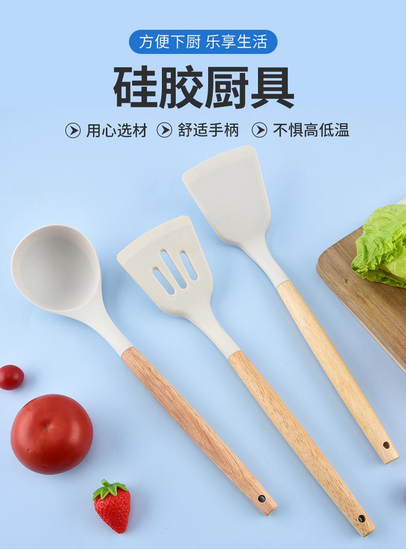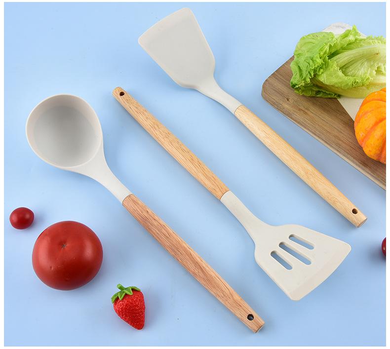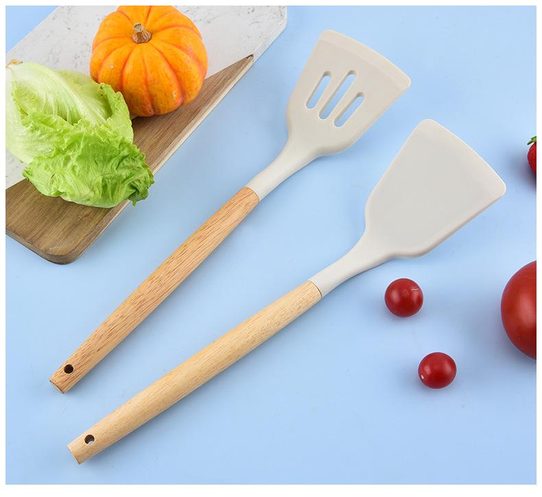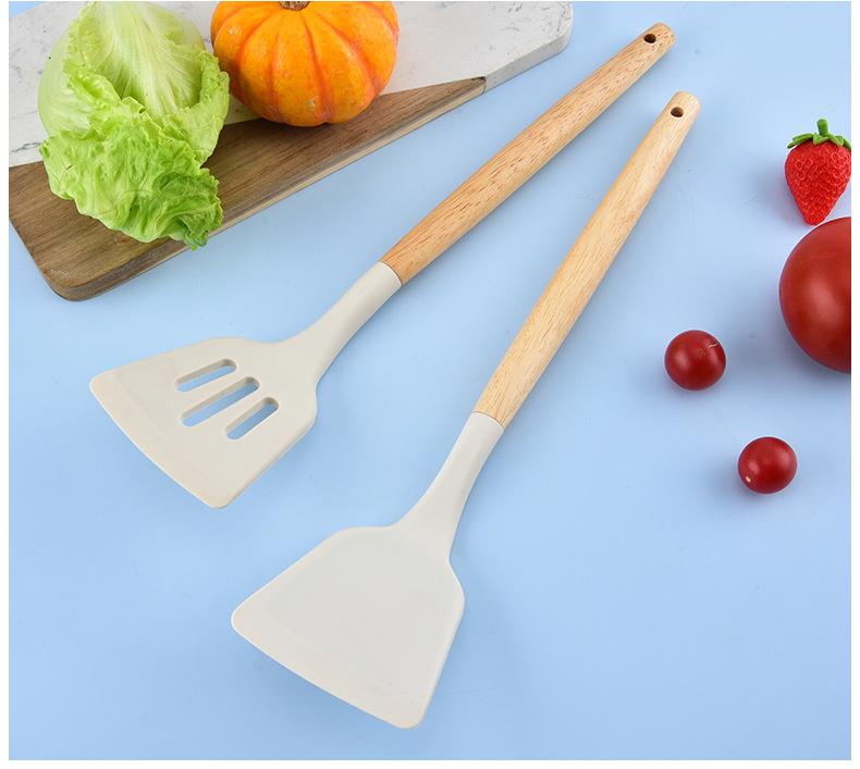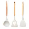 Utensilios de Cocina de Silicona con Mango de Madera Espátula de Silicona Cuchara Juego Especial para Wok Doméstico Juego de Tres Piezas Cuchara Espátula para Freír Cocinar