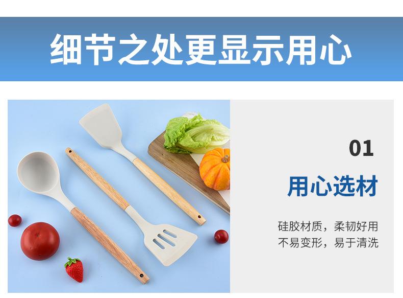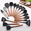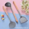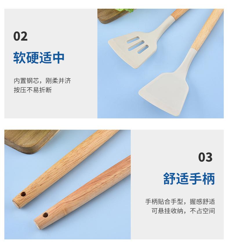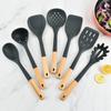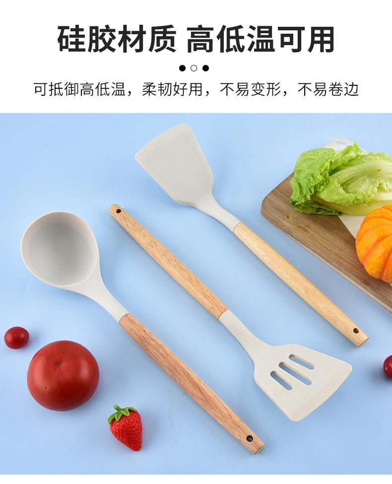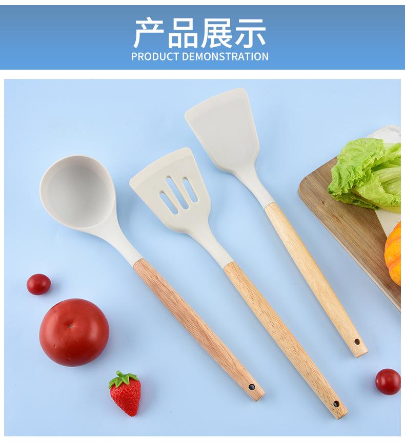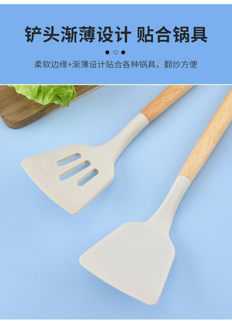 Utensilios de Cocina de Silicona con Mango de Madera Espátula de Silicona Cuchara Juego Especial para Wok Doméstico Juego de Tres Piezas Cuchara Espátula para Freír Cocinar