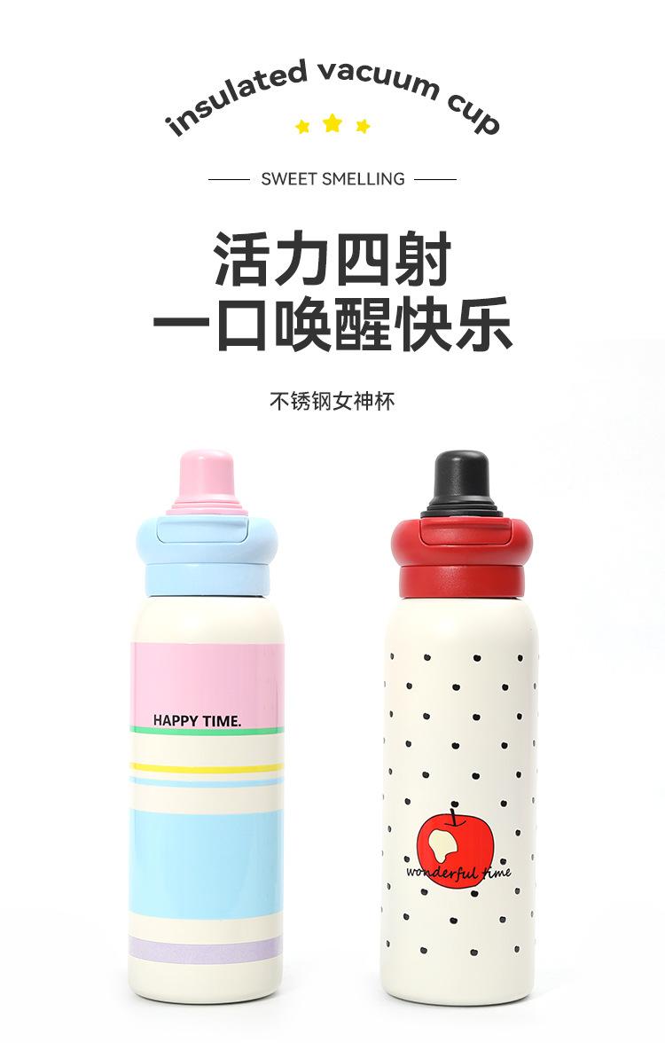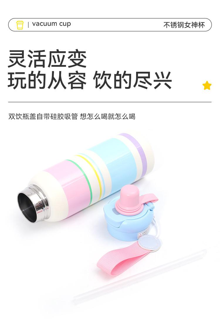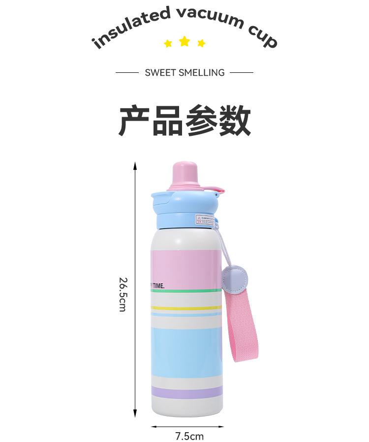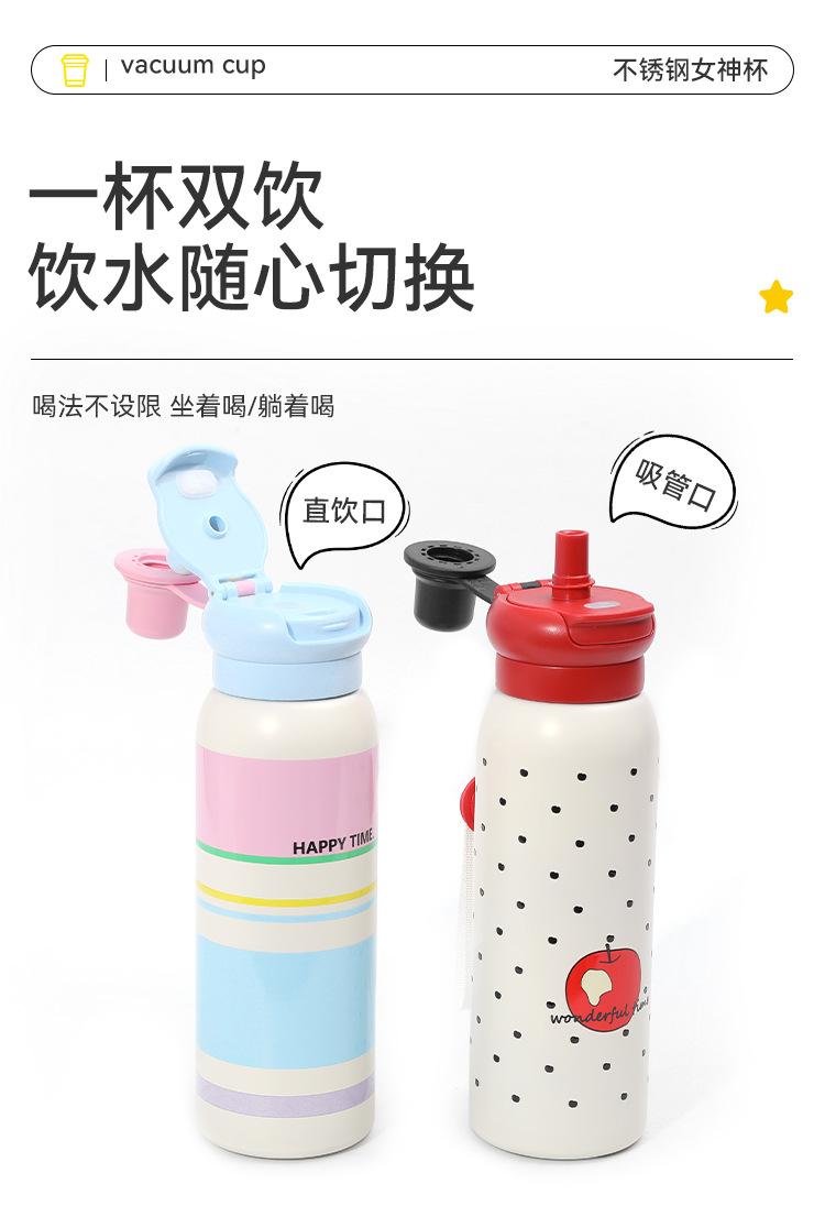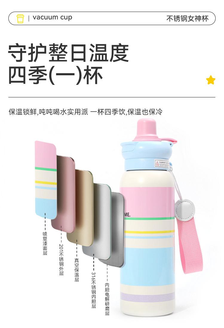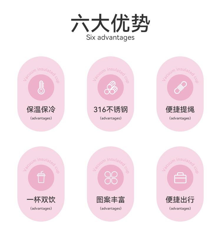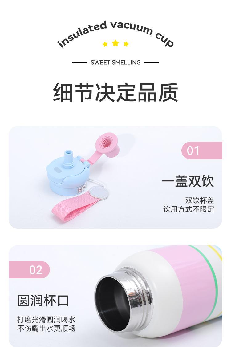 Termo de Acero Inoxidable 316 de Dibujos Animados de Aspecto Alto Taza con Cuerda Portátil Taza Rebotante para Exteriores Doble Taza con Pajita para Beber Venta al por Mayor