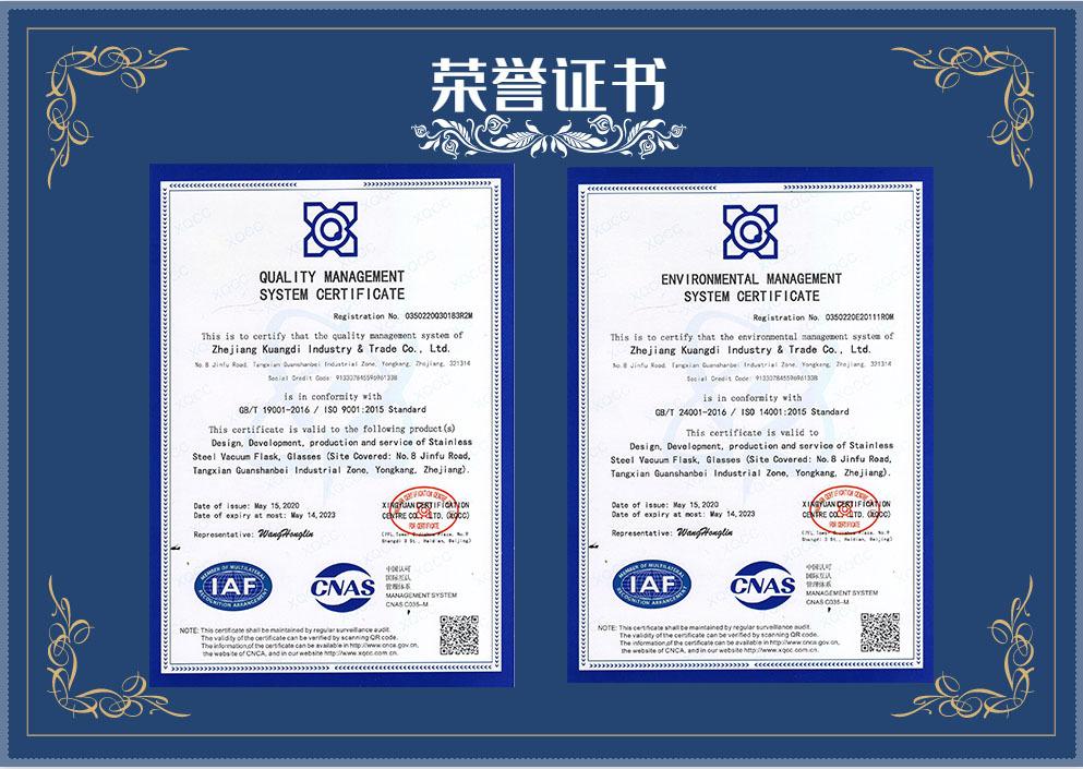 Perfil de la empresa:Huaxiang Cup Industry Co., Ltd. es una empresa dedicada a la fabricación de termos y tazas de acero inoxidable rentables. Cuenta con casi 20 años de experiencia en fabricación y desarrollo, y actualmente es líder en el sector de los termos. La empresa cuenta con cuatro fábricas subordinadas, con una superficie de 39.524 metros cuadrados y una capacidad de producción diaria de 150.000 unidades. Está equipada con equipos de alta tecnología, como aspiradoras sin cola, pulido sin polvo, pulverización automática, marcado láser y máquinas de sellado totalmente automáticas. La empresa ha obtenido las certificaciones ISO 9000 del sistema de gestión de calidad, OHSAS 18000 del sistema de gestión de salud ocupacional, ISO 14001 del sistema de gestión ambiental y las normas europeas BSCI. Gracias a su avanzada tecnología de producción y a un riguroso sistema de gestión de calidad, continúa alcanzando nuevos logros en el sector. «La calidad es la base y la innovación, el motor» es la filosofía empresarial de la empresa. La empresa cuenta actualmente con una gama completa de productos, de calidad estable y confiable, y con una atractiva apariencia, que le ha ganado la confianza y reputación de los consumidores. Categorías de productos: tazas de negocios, tazas de oficina, termos de viaje, termos de boca ancha, termos deportivos, termos de arcilla morada, cafeteras, etc., con más de 400 productos. Huaxiang cuenta con un equipo de I+D con tecnología de vanguardia y desarrolla de forma independiente docenas de nuevos productos cada año para satisfacer las tendencias del sector. ¡Nos hemos esforzado por fabricar excelentes tazas! Ofrecer productos a todos los consumidores es nuestra constante búsqueda, la de los "Huaxiang". Nos concentramos en construir la marca "Huaxiang" y usamos nuestra sabiduría para escribir un nuevo capítulo en el mundo de los termos.