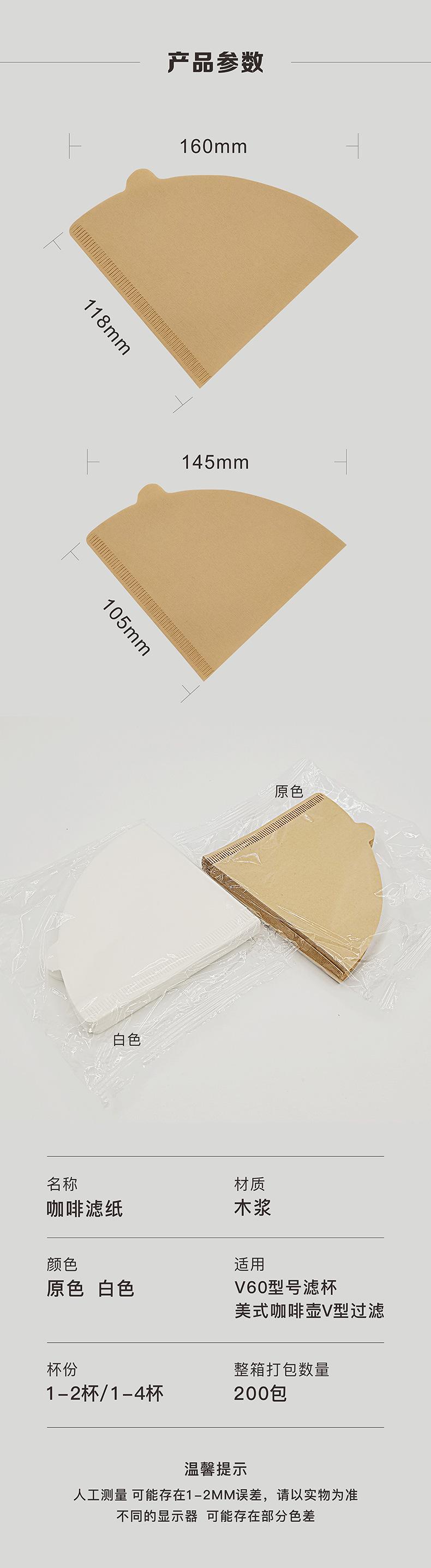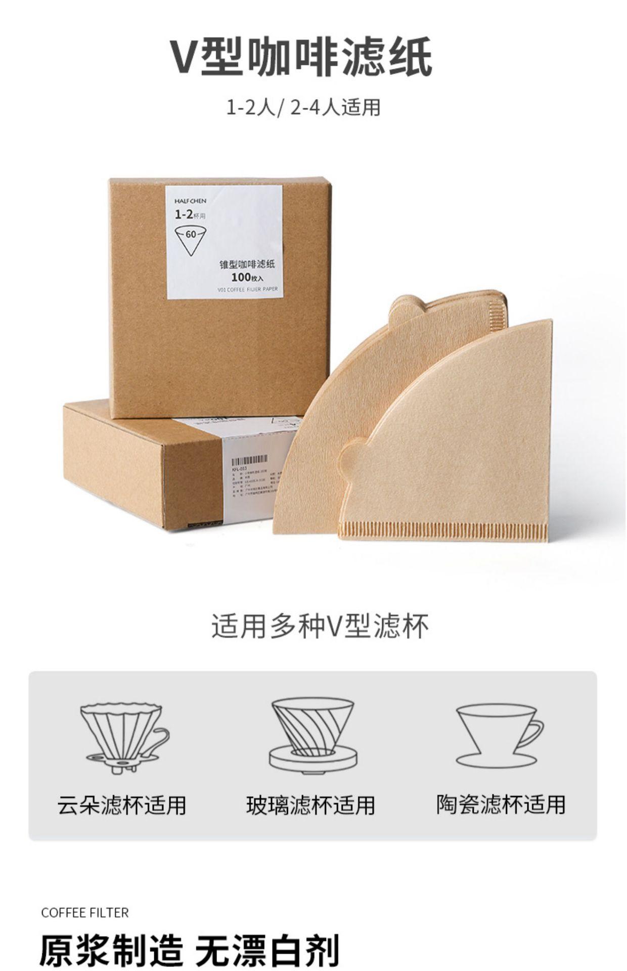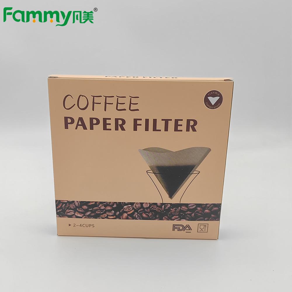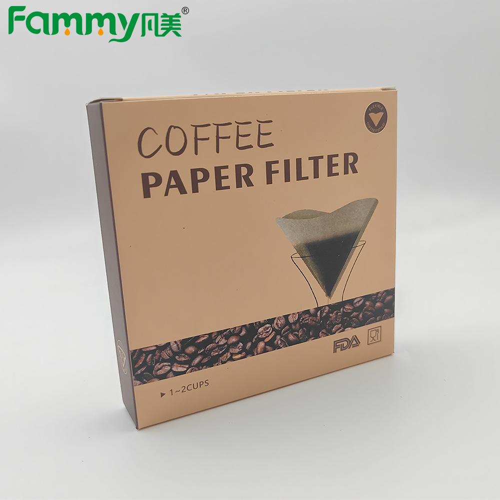 Pulpa de madera cruda Papel de filtro de café en forma de V V60 Papel de filtro para goteo de café en stock Papel de filtro de café en caja
