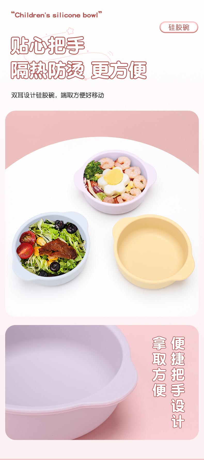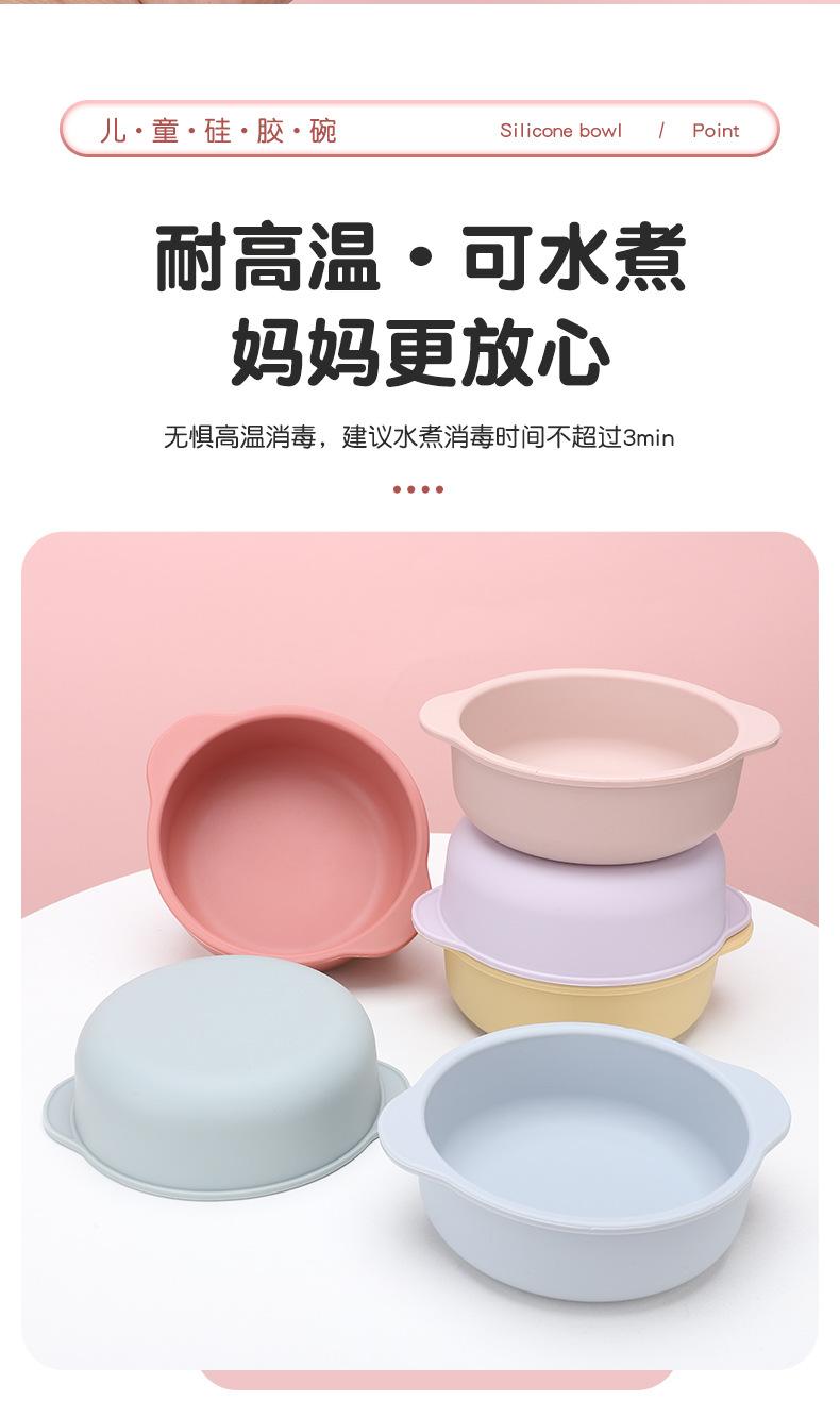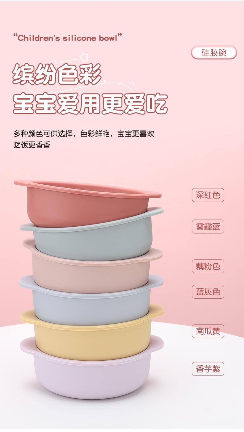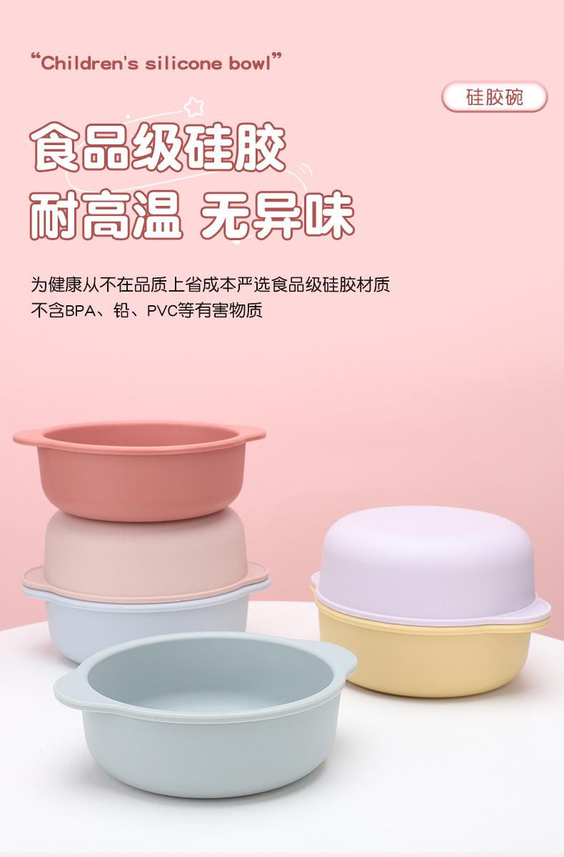Vajilla para alimentación infantil al por mayor Grado alimenticio Tazón con ventosa para bebé Anticaída Plato de silicona para la cena Set de tazón para alimentos Tazón para bebé